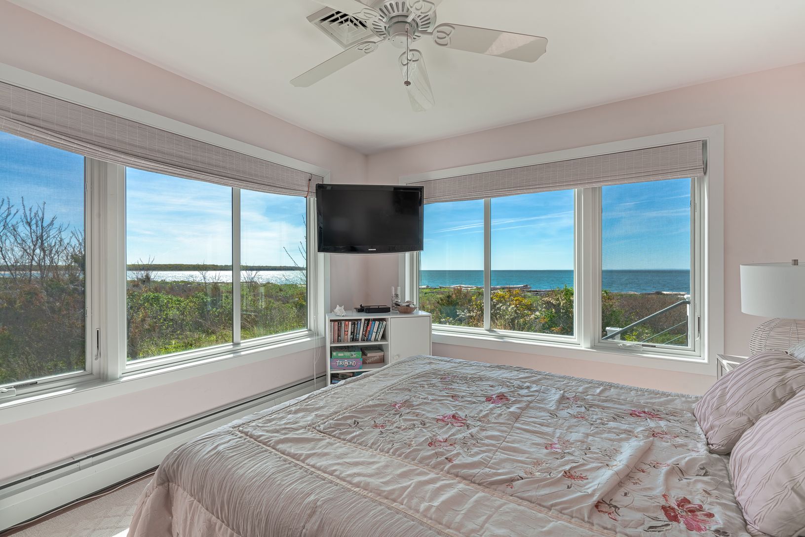 Uniquely situated on 3.86 acres, sweeping views of the Long Island Sound and the Great Peconic Bay can be seen from every room of this naturally light filled residence. This home offers 618 feet of privately-owned sound front beach, an 18’ x 36’ heated salt water pool, wrap around deck, outdoor shower, fully renovated bathrooms, new windows, roof and all new appliances. Take in the sunrise on the back porch overlooking the bay and then sunse