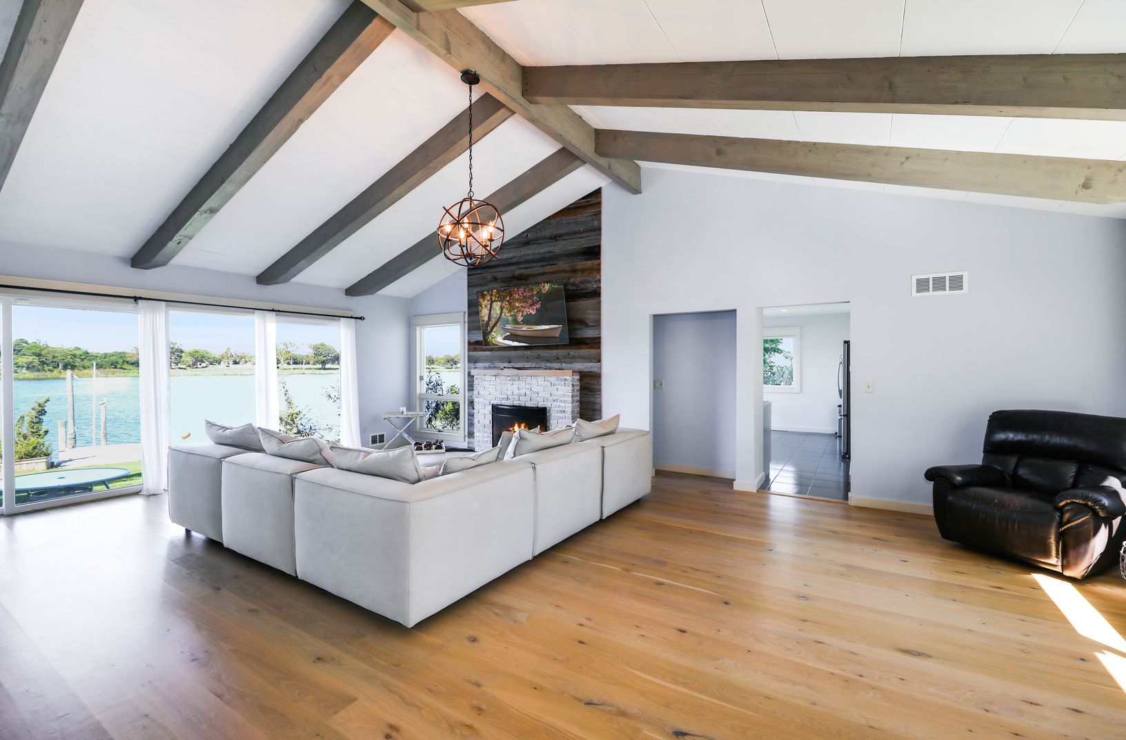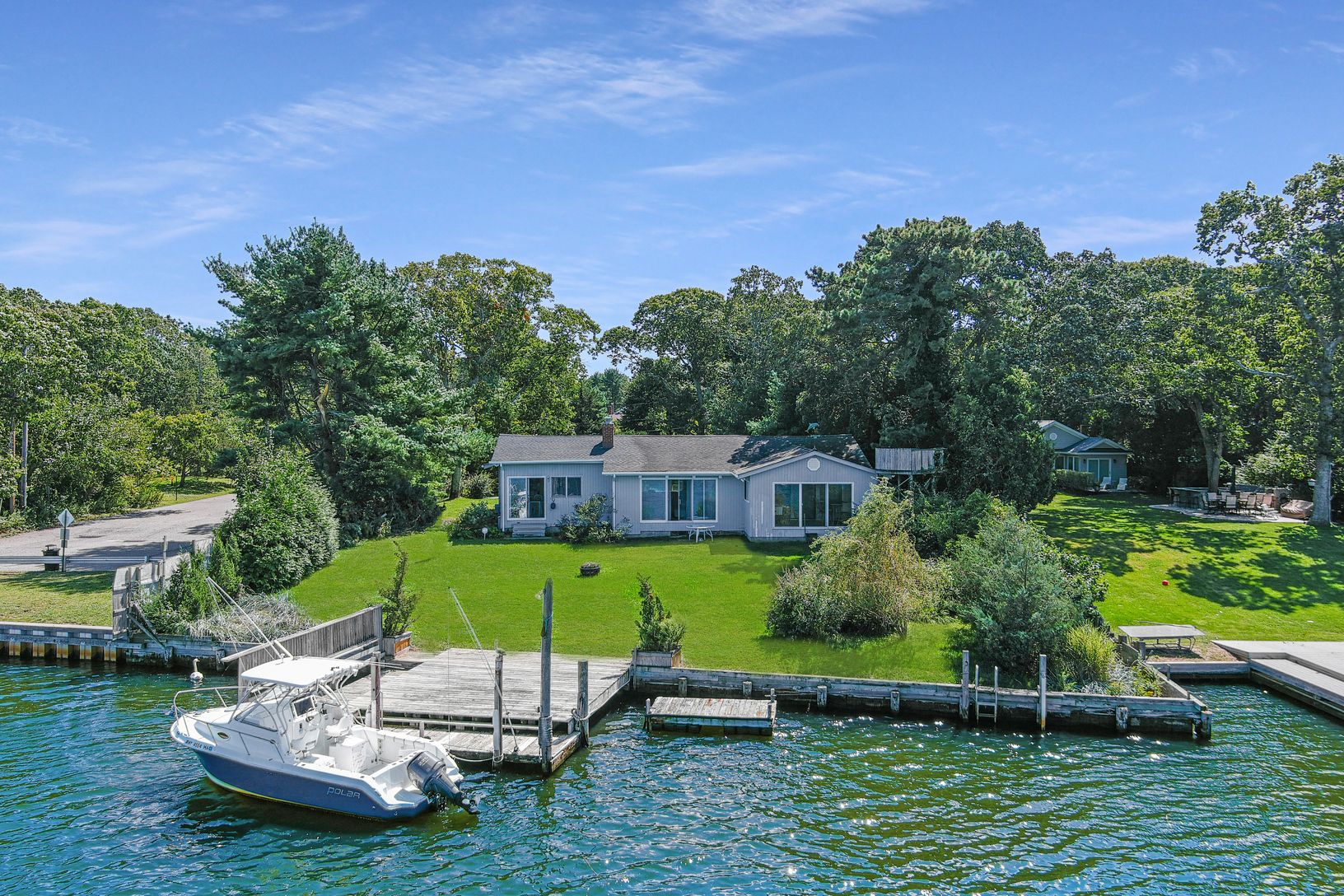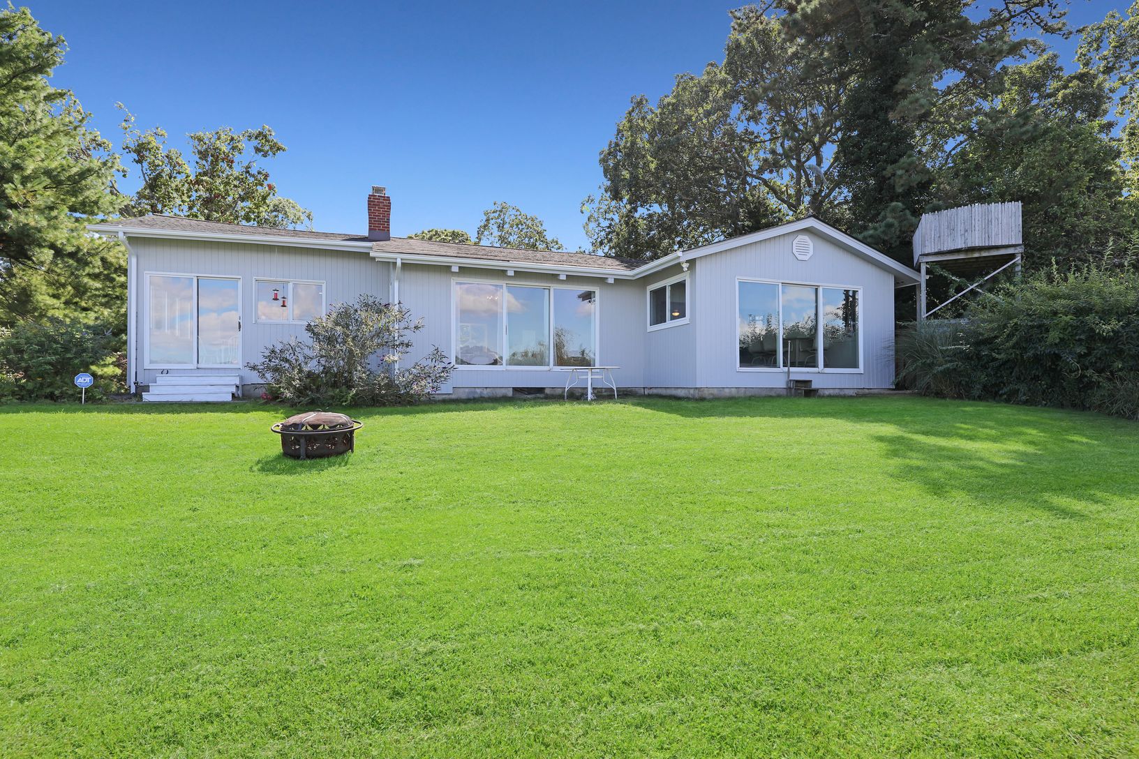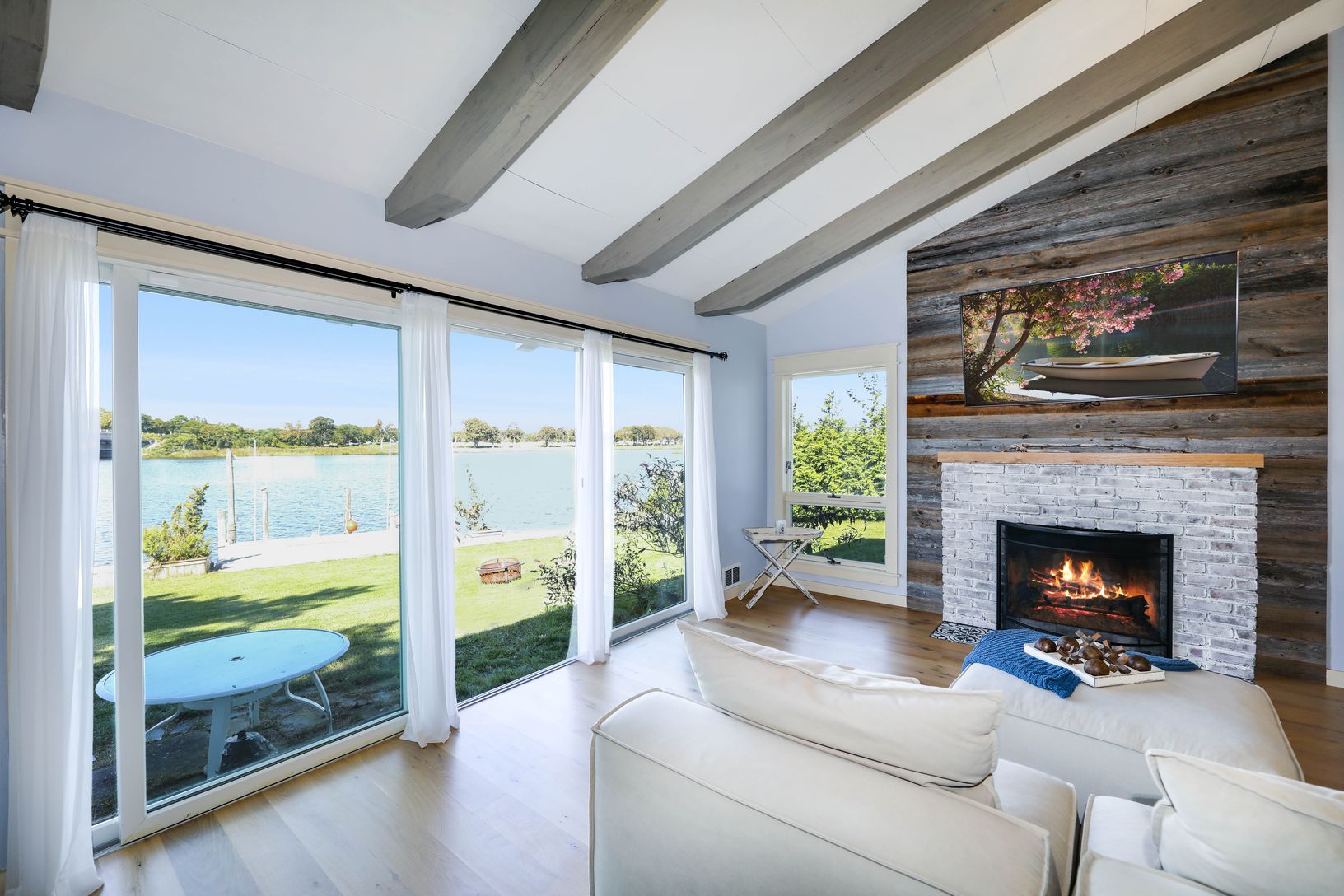 For all showings call listing broker Thomas Stoebe. Stunning ranch located along the Peconic River with breathtaking water views for under $1 Million! Fully renovated and boasting an open floor plan this home has it all. The interior is inclusive of a large living room with cathedral ceilings and fireplace, eat-in-kitchen with cathedral ceilings with exposed brick and floating shelfs, guest bedroom, master with water views, three seasons room/