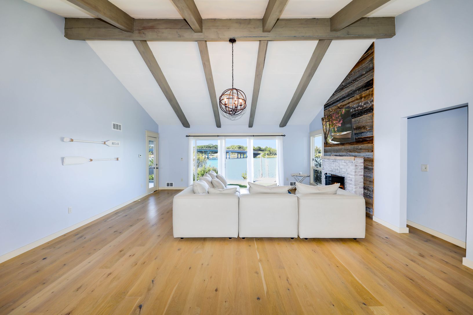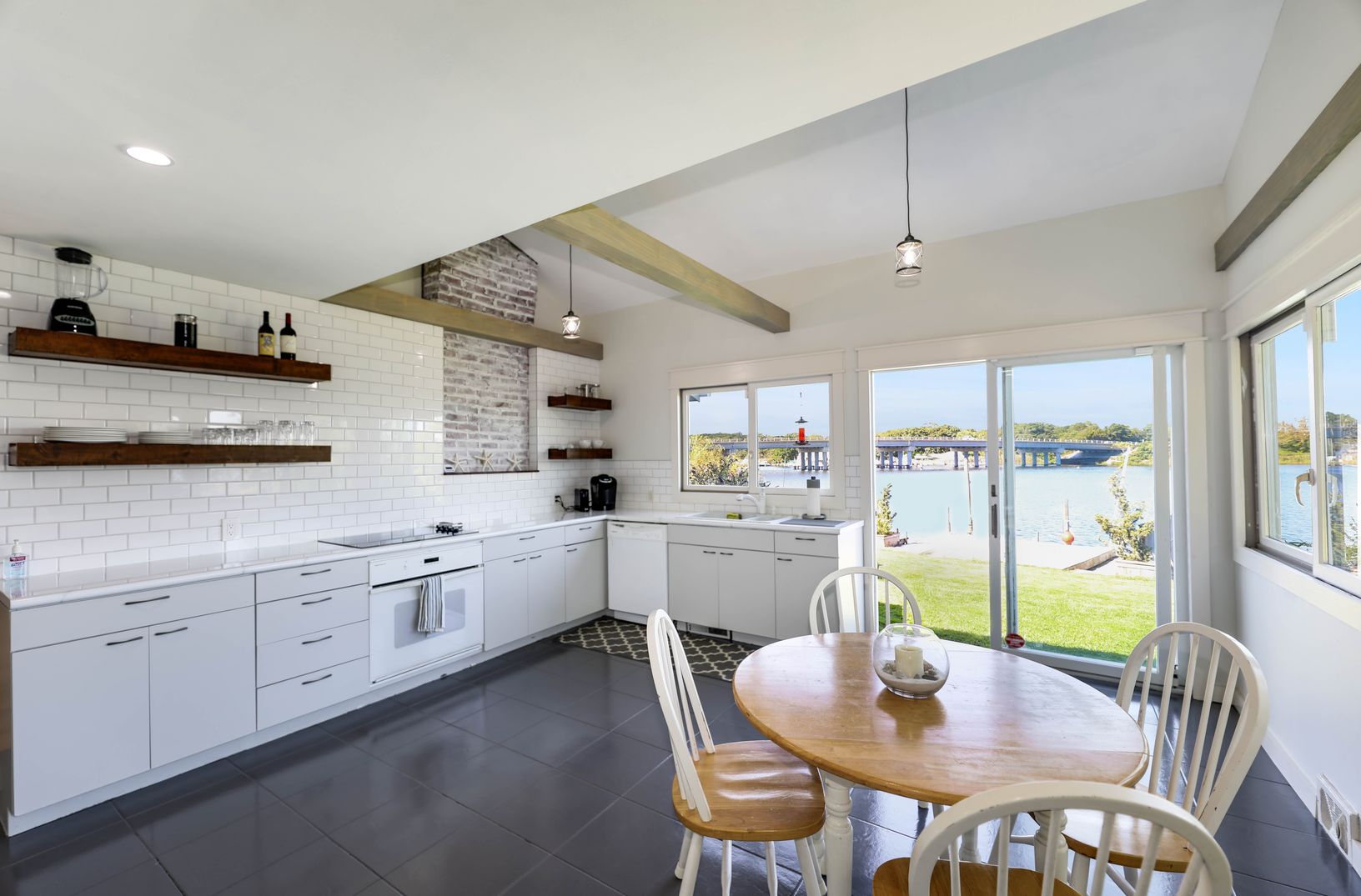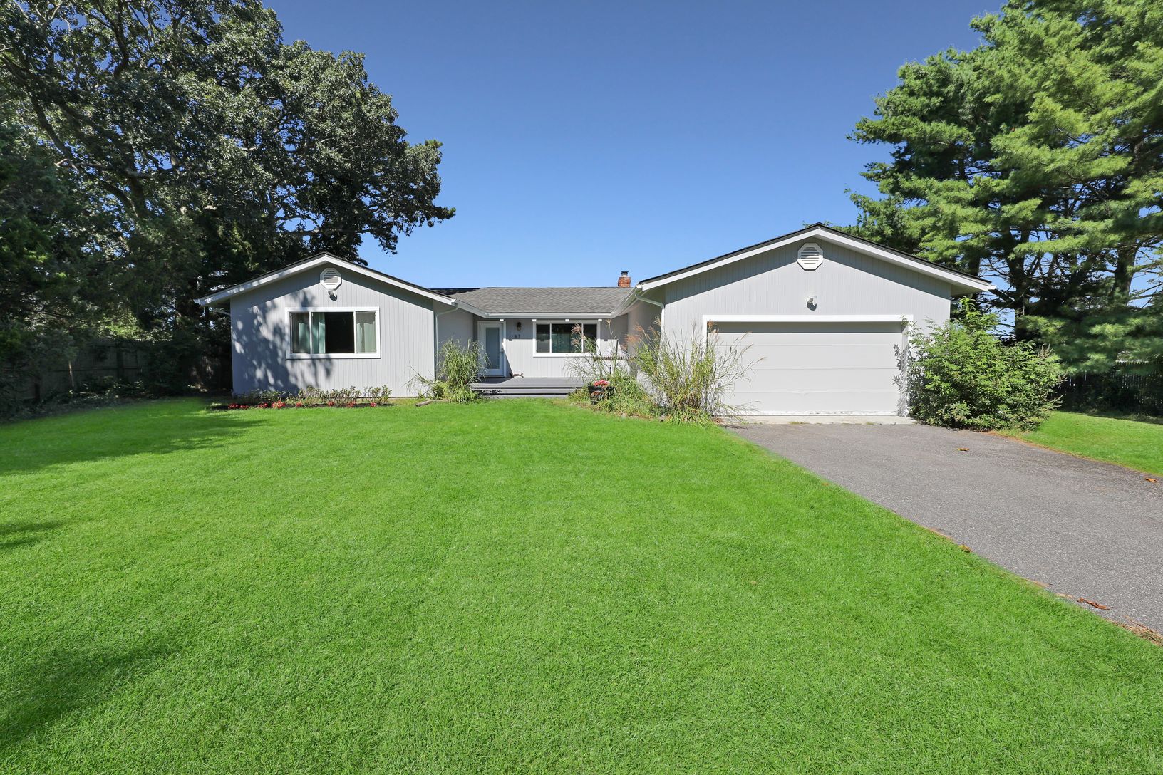 For all showings call listing broker Thomas Stoebe. Stunning ranch located along the Peconic River with breathtaking water views for under $1 Million! Fully renovated and boasting an open floor plan this home has it all. The interior is inclusive of a large living room with cathedral ceilings and fireplace, eat-in-kitchen with cathedral ceilings with exposed brick and floating shelfs, guest bedroom, master with water views, three seasons room/