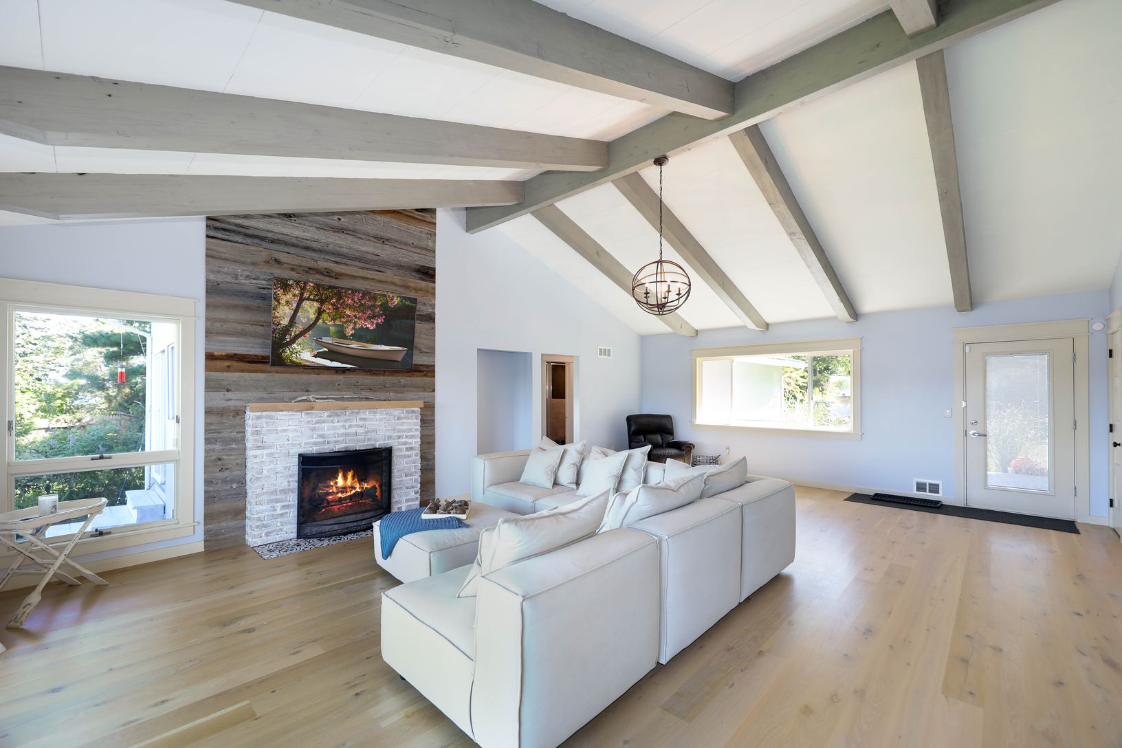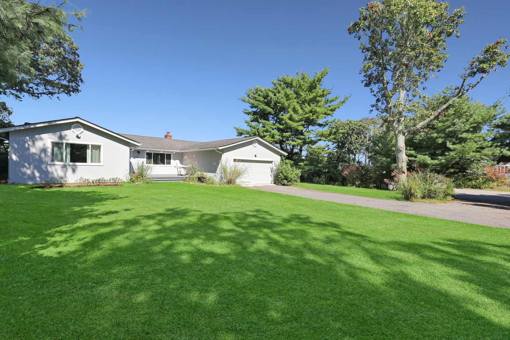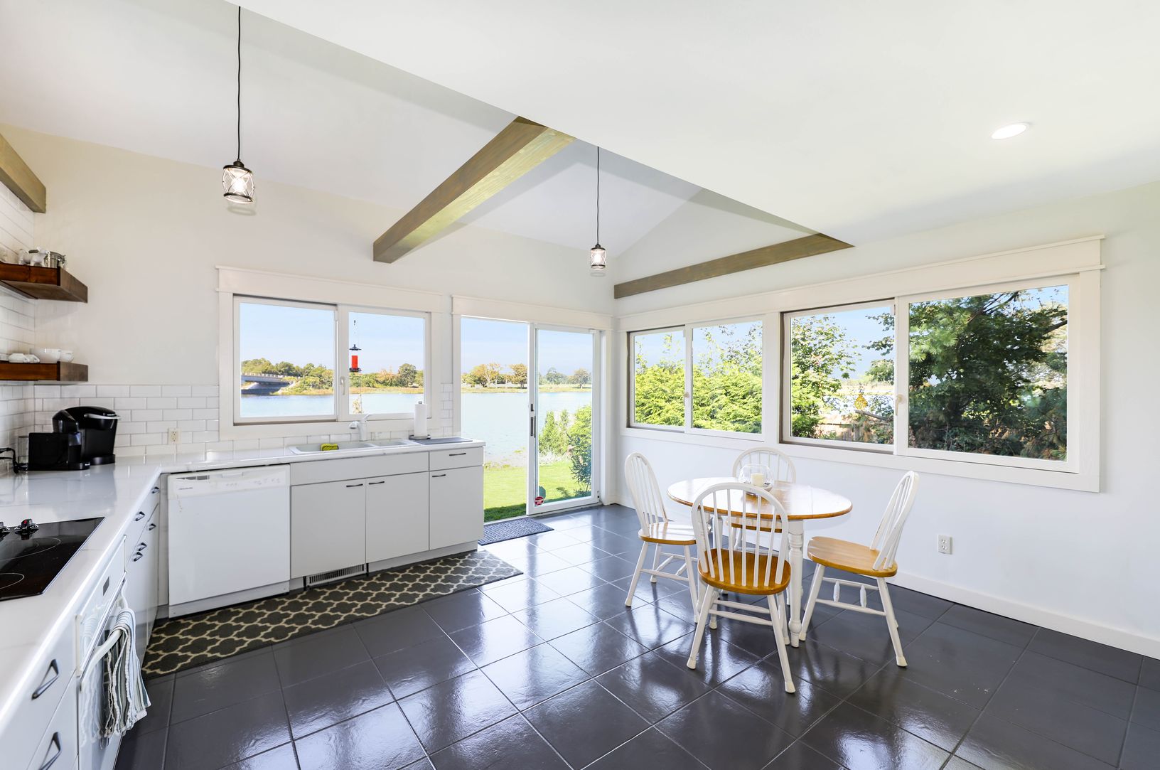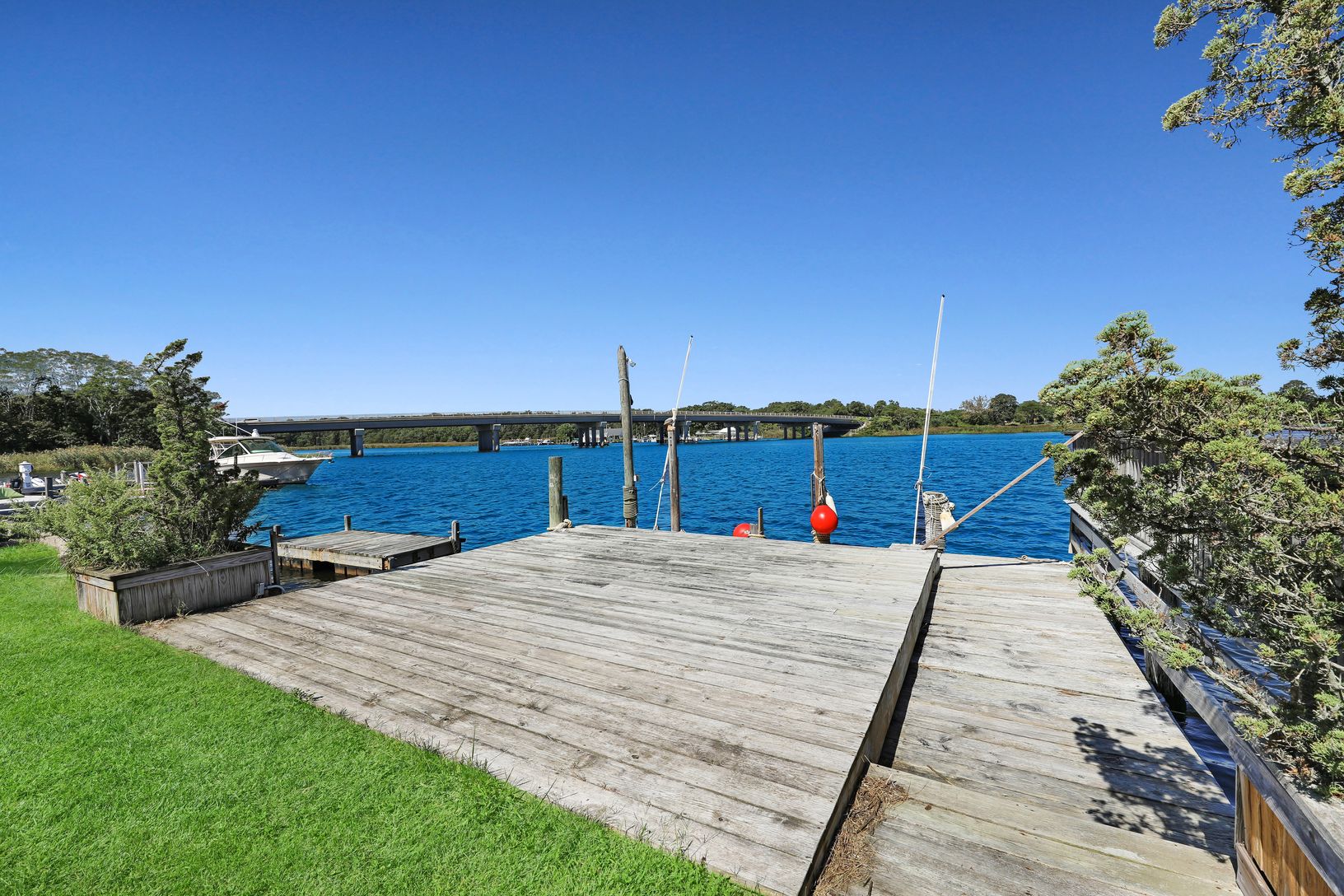 For all showings call listing broker Thomas Stoebe. Stunning ranch located along the Peconic River with breathtaking water views for under $1 Million! Fully renovated and boasting an open floor plan this home has it all. The interior is inclusive of a large living room with cathedral ceilings and fireplace, eat-in-kitchen with cathedral ceilings with exposed brick and floating shelfs, guest bedroom, master with water views, three seasons room/