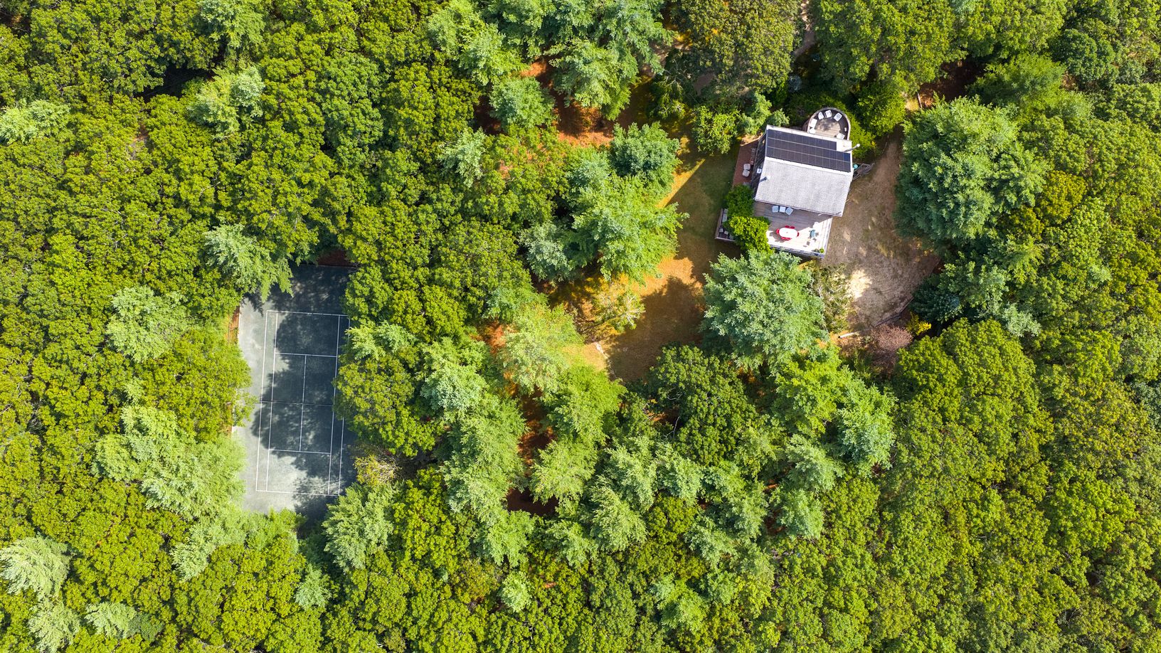 Tranquility and privacy abound in this bright, expanded Salt Box-style home, clad in vertical cedar siding, and set on a secluded 3.14+/- acres with a pristine HydroCourt clay tennis court, room for a pool, and the potential to build a dream estate, renovate, or enjoy as is. Minutes to Round Swamp Farm, Long House, the charms of East Hampton Village, and world class ocean and bay beaches, the lush property, fondly dubbed "Blueberry Hill," is r