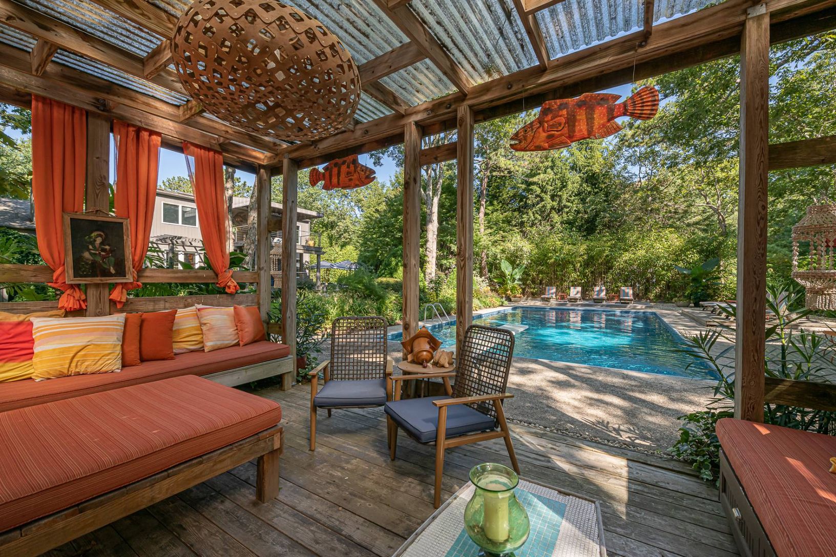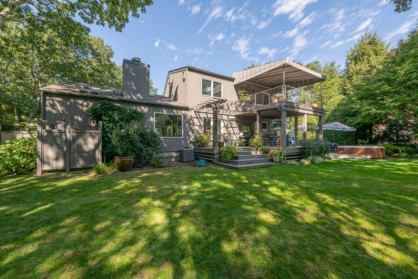 Enjoy an unforgettable summer in the heart of the Hamptons with this gorgeous rental retreat. Located on a lush .67 acre parcel close to East Hampton Village and Bridgehampton and surrounded by bucolic scenery. Arrive at a meticulously manicured front walkway and covered porch, the home is filled with character and ready to accommodate friends and family. At the center of the 4 bedroom, 4 bath home is a welcoming great room that has double-hei