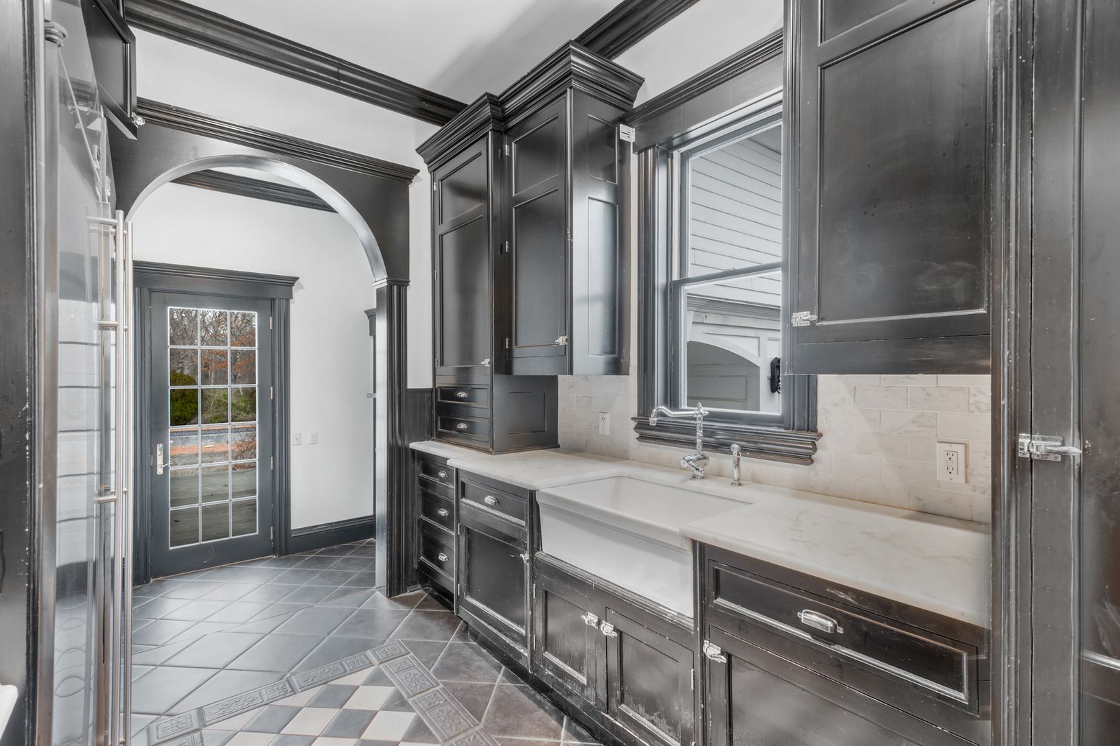 Originally the home of a Hamptons builder, this home requires renovation but is listed substantially below market for quick sale. Appraised at $4MM in 2008, the 10,000 square foot home (6100 finished above grade) is perched on nearly 3 acres. It has a stately presence atop a hill at the end of a private 500' drive.