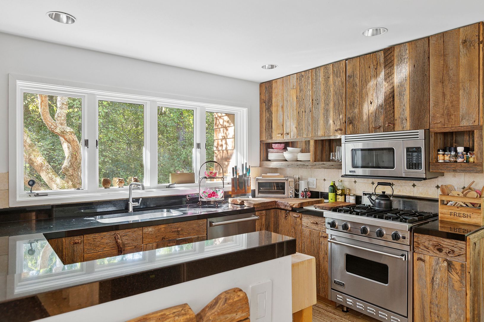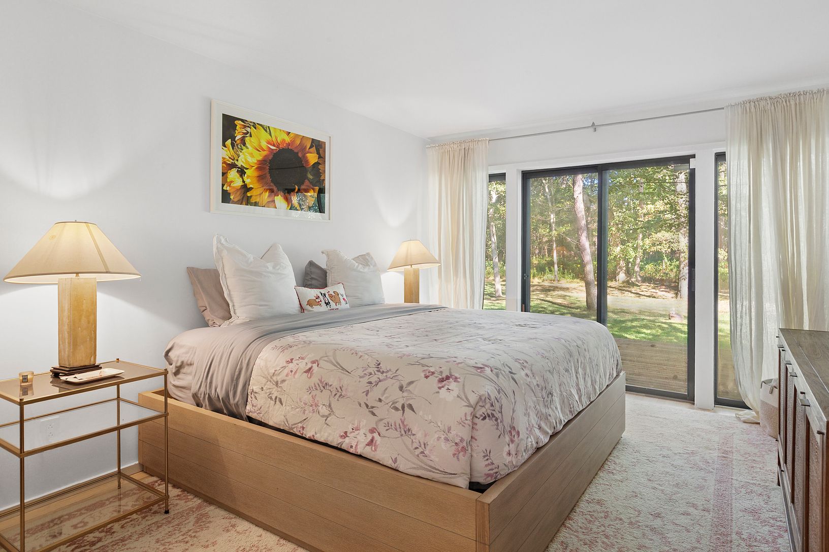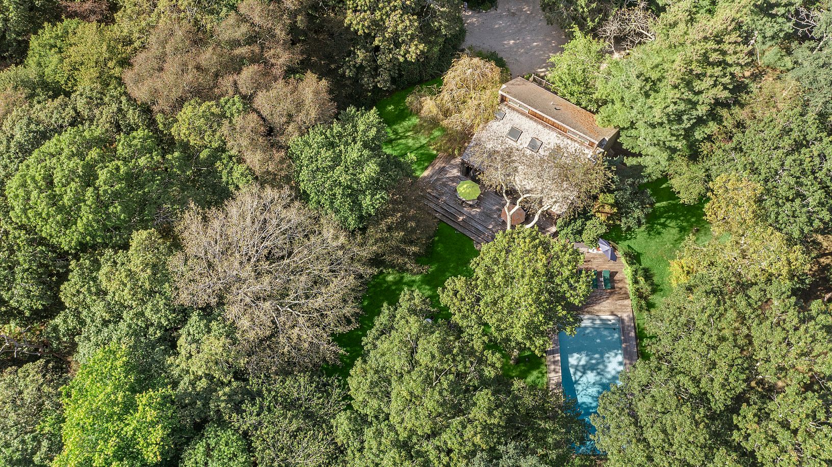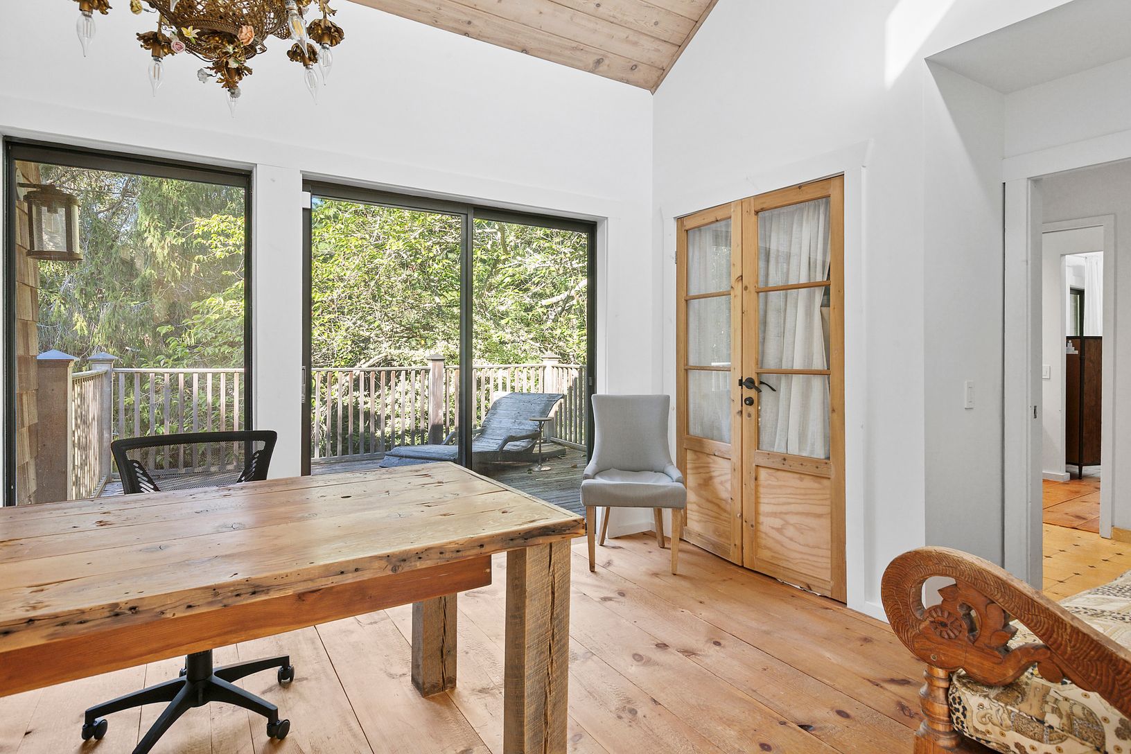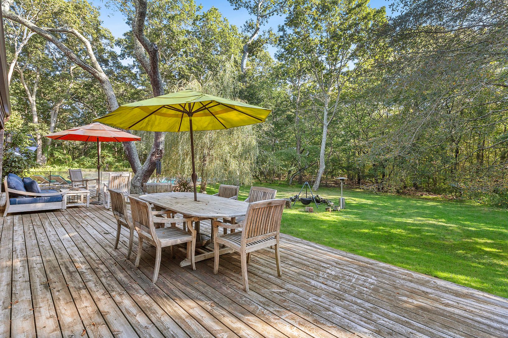Conveniently located in the heart of Water Mill and set on 3.3 +/- acres of complete privacy, this 3-bedroom, 2-full bath, 2,290 +/- sqft. residence is filled with an abundance of natural light and located just a short distance to Southampton Village, Bridgehampton Village, and Ocean Beaches. As you enter the main level, the expansive open concept boasts a living and dining area with a fireplace, walls of sliding glass doors enhancing the home