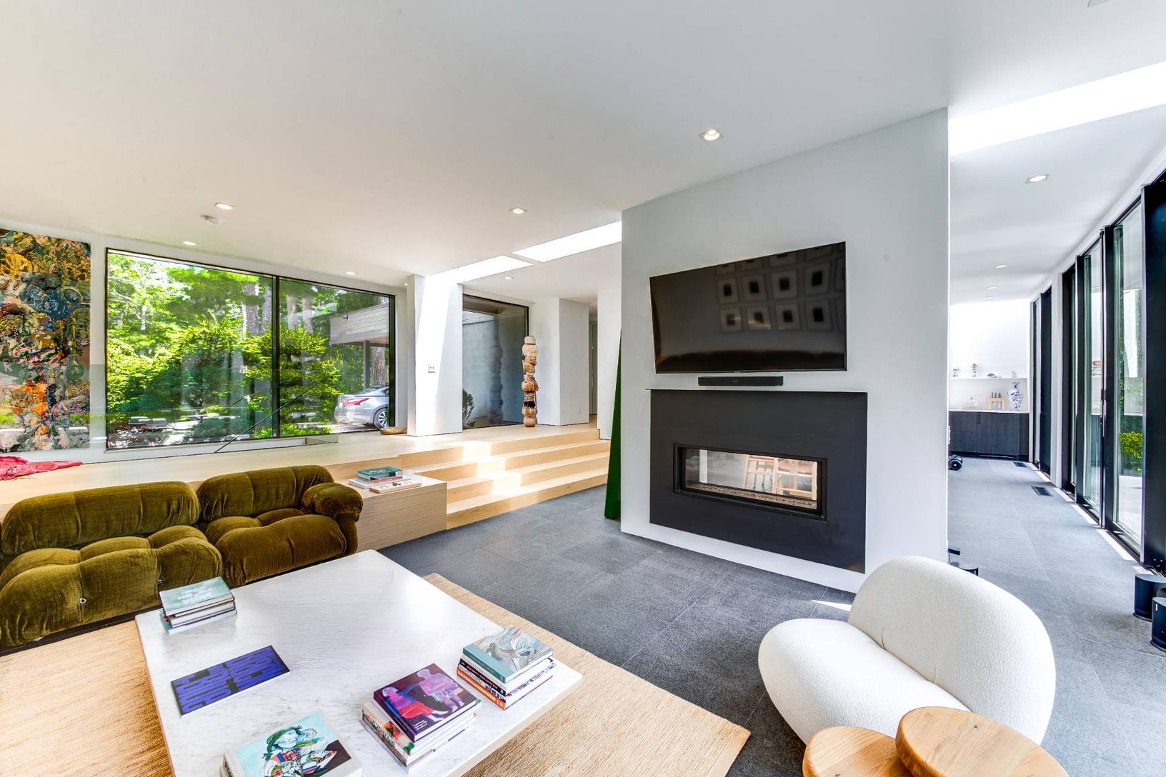 This 3,664 +/- sqft modern, chic and fun, art-filled home on a quiet +/- 2.4 park-like setting with four bedrooms and four bathrooms is the perfect summer/fall retreat. This thoughtfully designed living space with a strong connection to the outdoors is ideal for entertaining. Inside, the open main living spaces feature floor-to-ceiling glass sliding doors that open directly onto the rear patio, creating a seamless indoor-outdoor flow perfect f