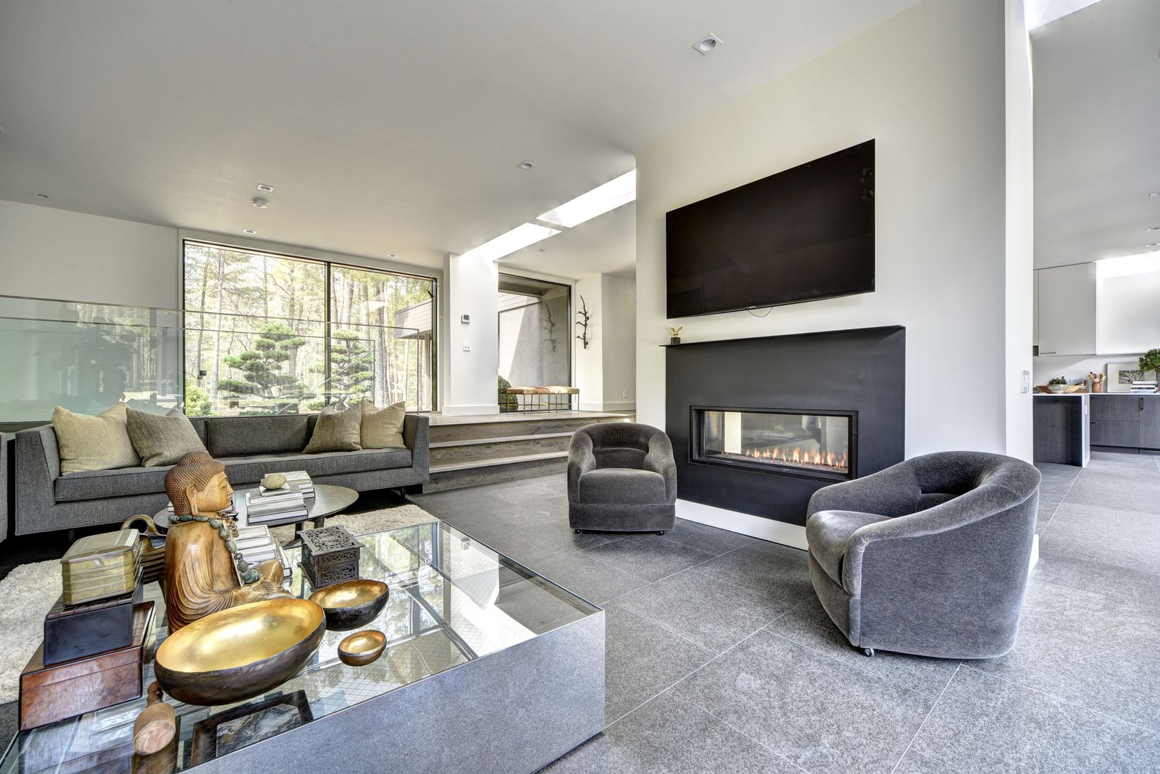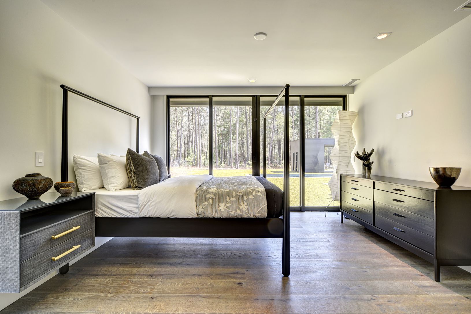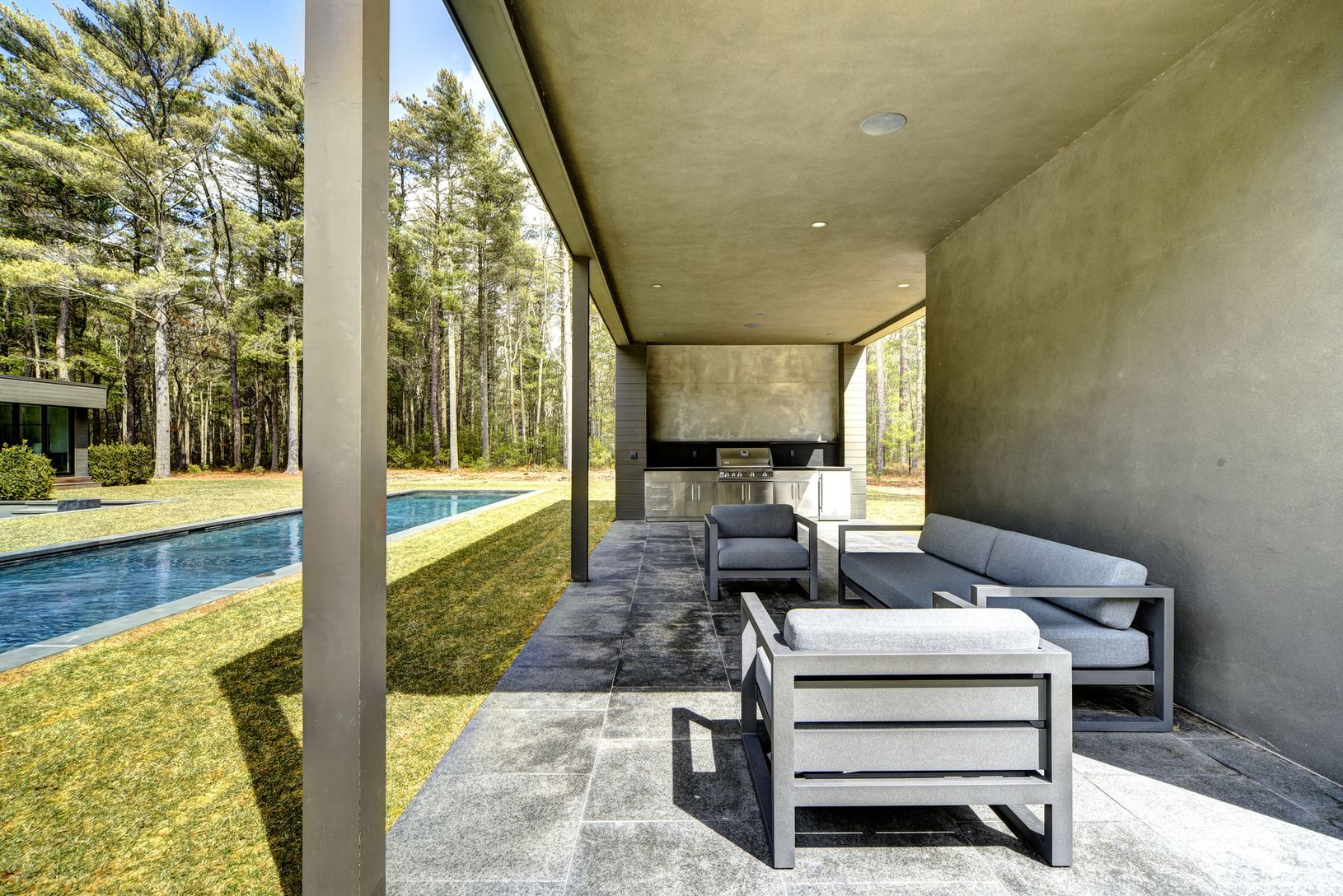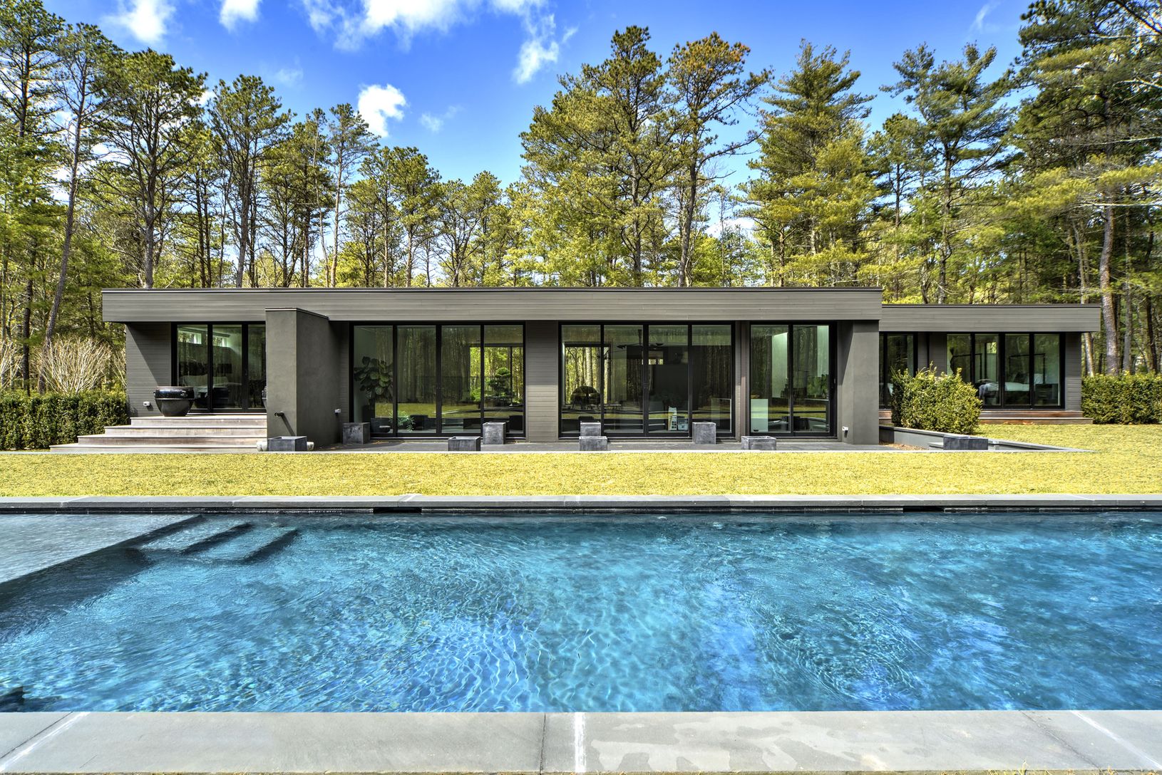 Rental Registration #: 18-5 A stylish modern oasis by Hamptons landscape designer Joseph Cornetta. The home features 4 bedrooms and 4 bathrooms serenely positioned on a private 2.5 acres. The open-concept living and dining areas are anchored by a sleek dual-sided fireplace and a wall of glass overlooking the backyard. An extra long gunite saltwater pool parallels the home alongside an open-air poolside pavilion complete with dining area, grill
