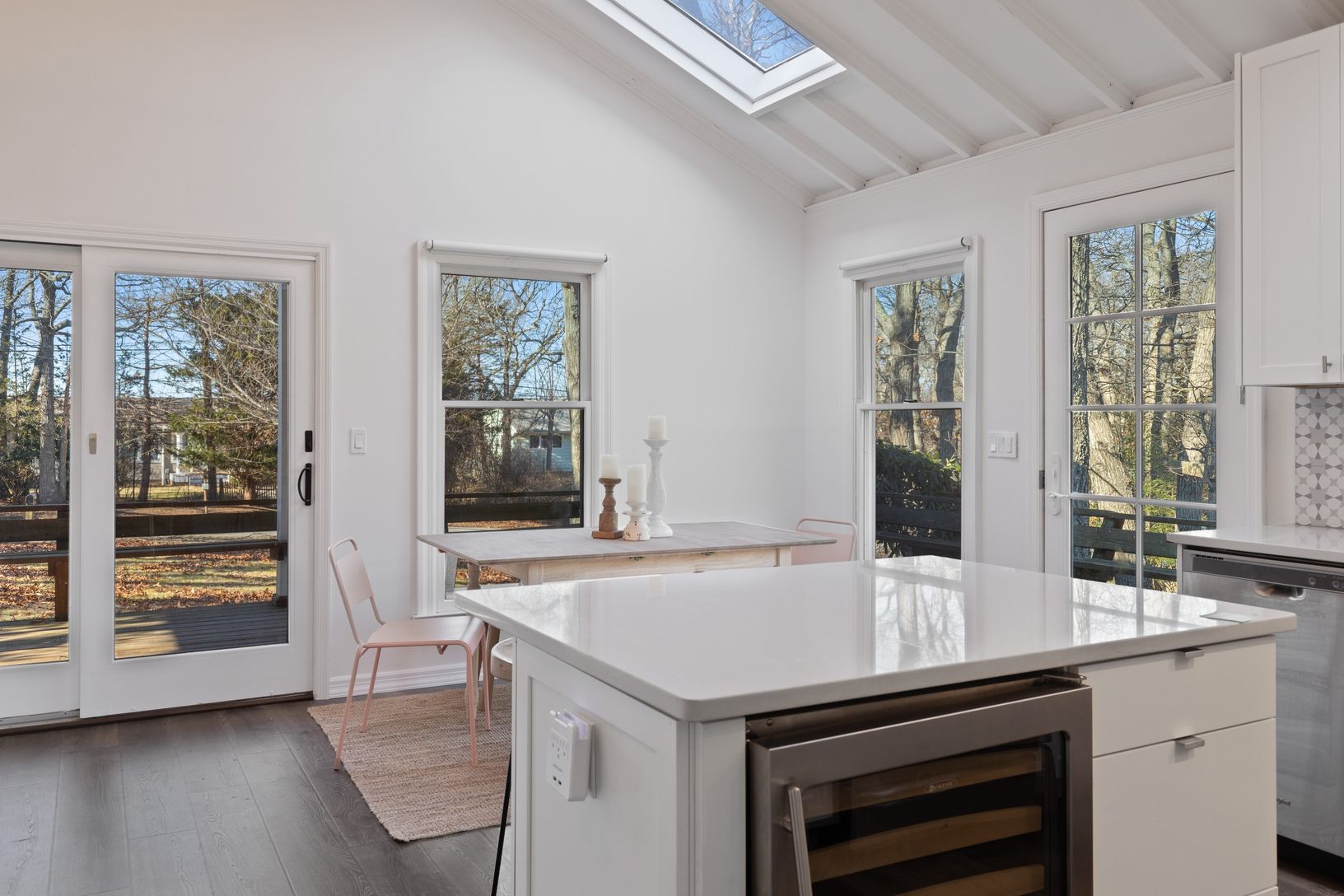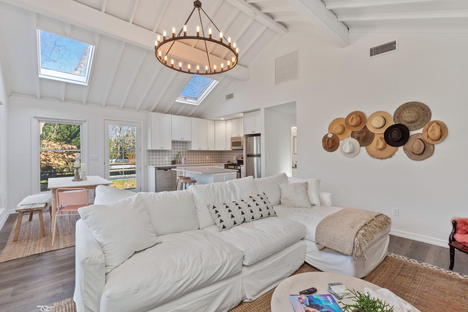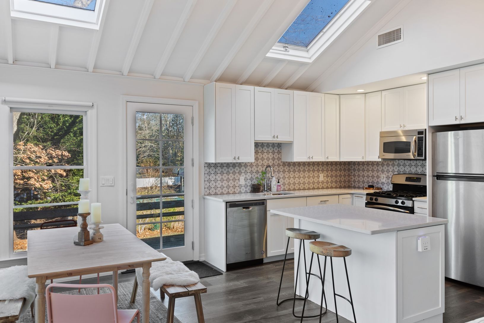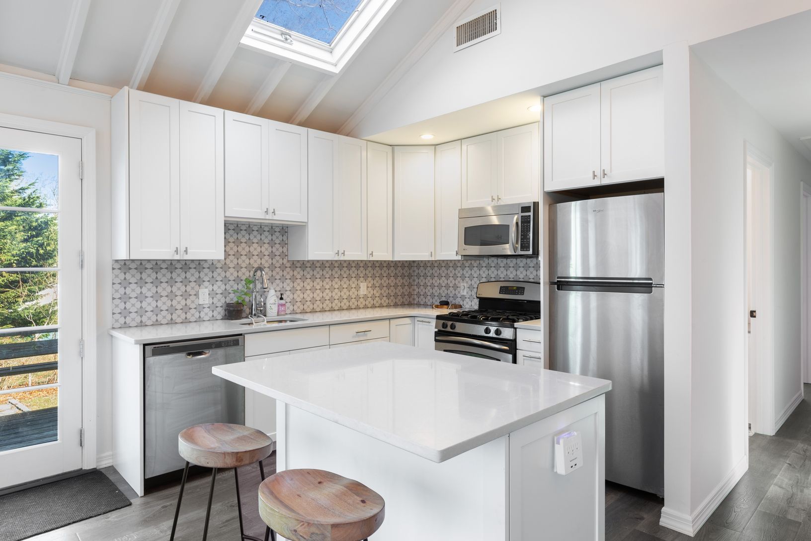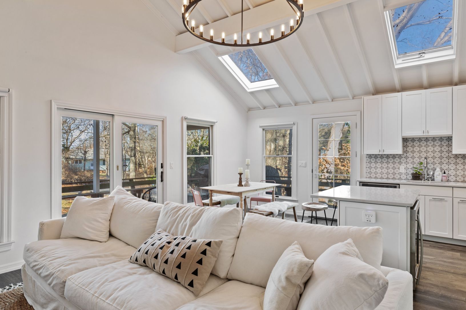 Freshly renovated and outfitted modern beach bungalow features vaulted ceilings, skylights, fireplace, outdoor shower, and walkout basement around the corner from "Members Only" Clearwater Beach and Marina access. One story living with hree bedrooms two baths, a cozy wrap around porch to lounge or dine in the shade and absolutely turn-key.