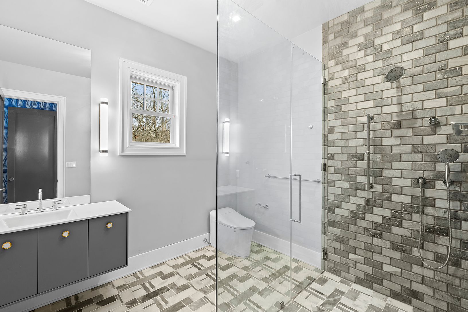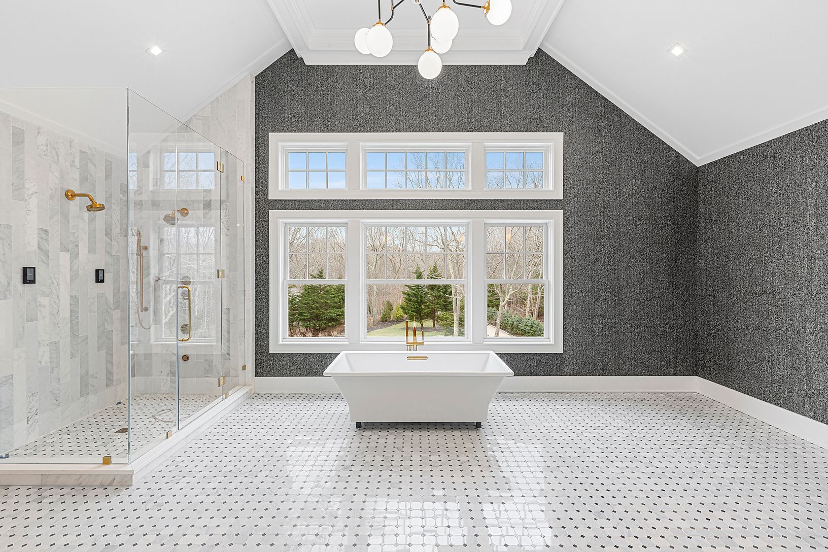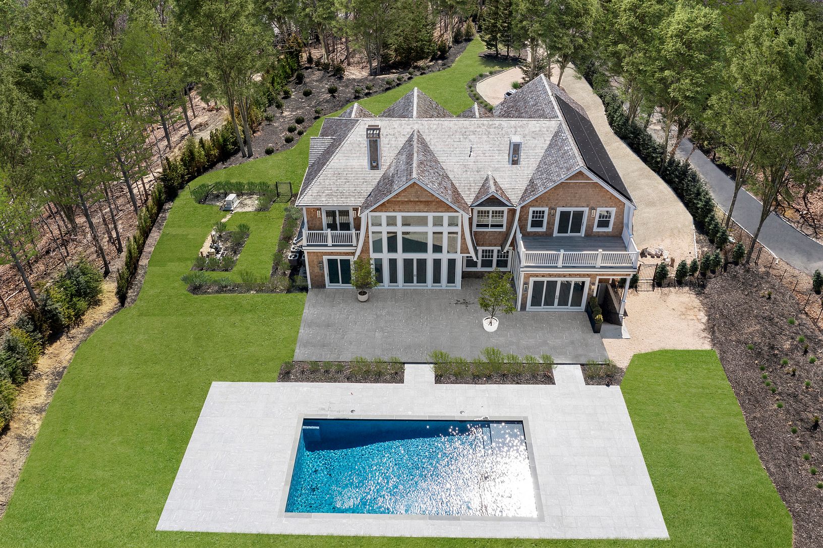 This Substantial 9500 sqft Designer detailed and gated Estate is sited beautifully on 2+/- acres in Sag Harbor with 7 bedrooms and 7.5 baths. An impressive entry leads to a double height ceiling great room with a wall of glass windows overlooking the yard. The expansive yard boasts travertine outdoor patio, heated gunite pool with shallow tanning shelf and infinity spa, with room for pool house. This design includes a first floor en-suite bed