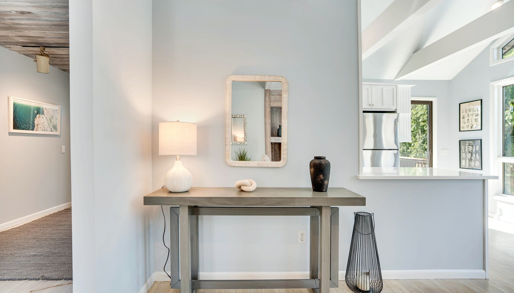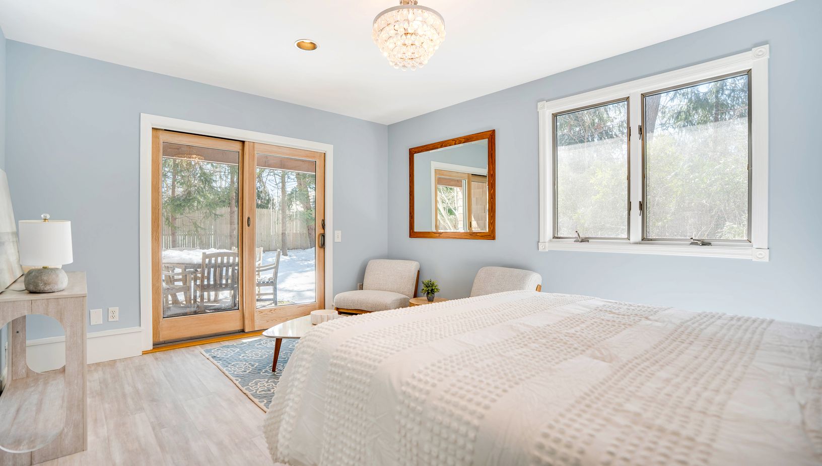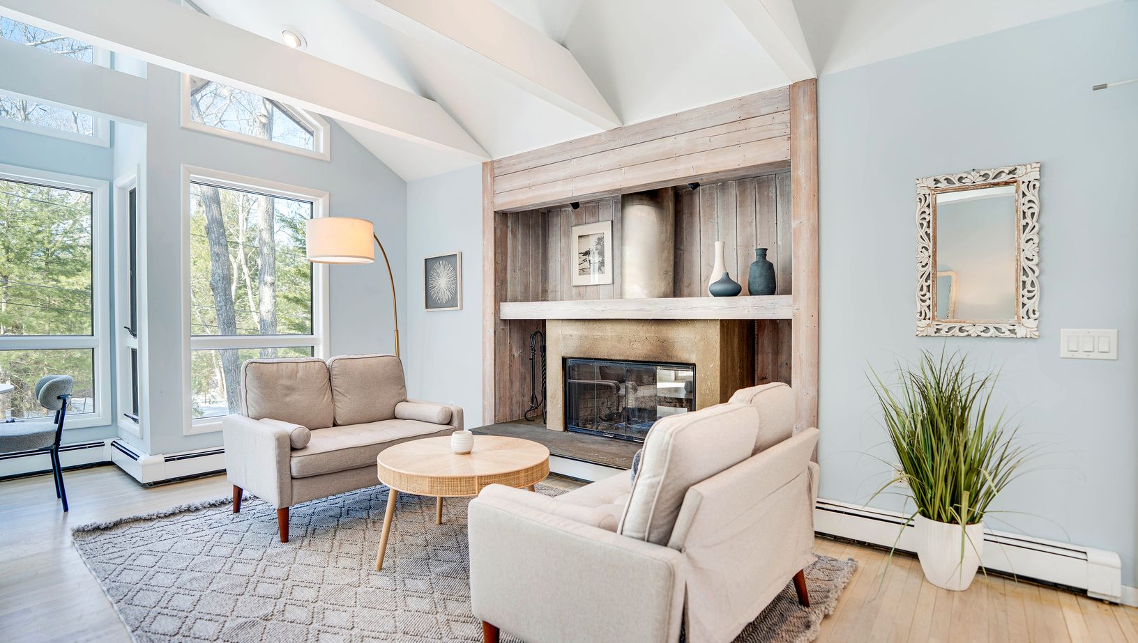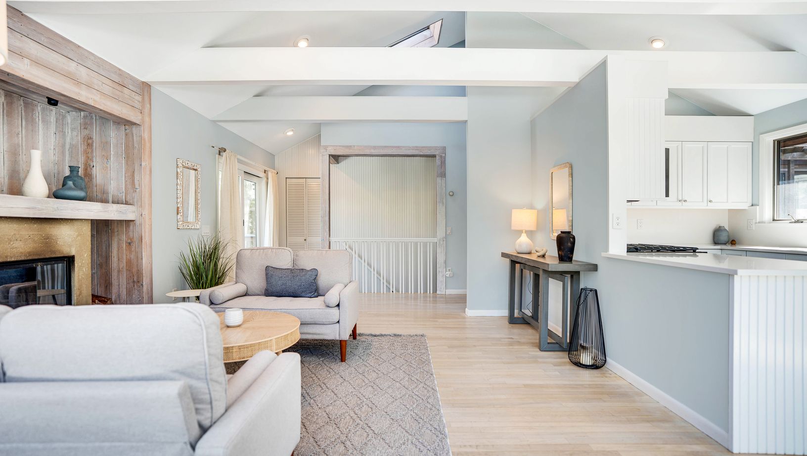 Stylish, 4-bedroom, 3-bath home in Springs is designed for easy living. Thoughtfully and tastefully renovated, the open living space is flooded with natural light. A wood-burning fireplace anchors the living space, making it just as inviting in the off-season as it is in summer. The brand-new kitchen-complete with all new appliances-flows beautifully into the dining/living space for everyday living and entertaining. Outside, enjoy two decks,