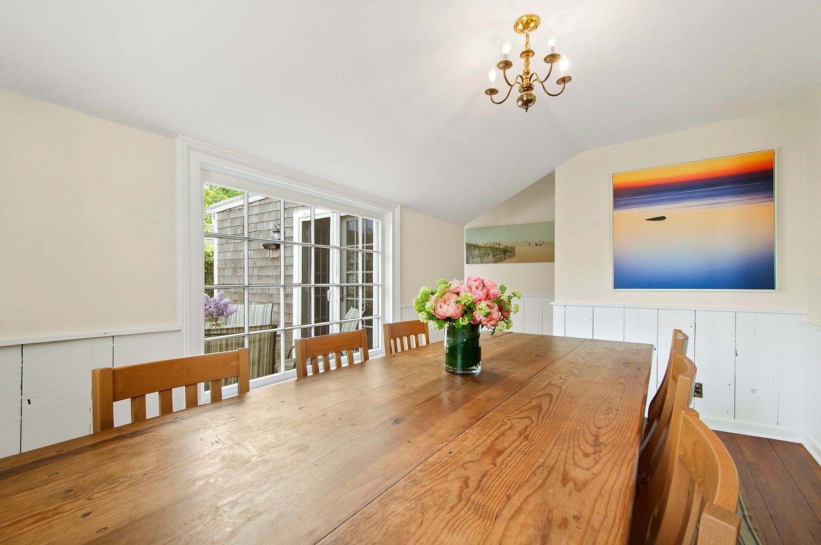 Charming 1850's cottage offers a light filled interior, front and center parlors, dining room, country kitchen opening to outdoor entertaining deck, bedroom and bath complete the entry level. Two guest bedrooms and one bath are on the second level. Vintage details include fireplace and wide pine floorboards. An inviting front porch and garage/accessory building add to this picture perfect home within historic Sag Harbor Village, just a stro