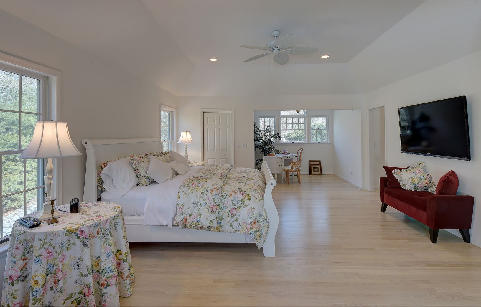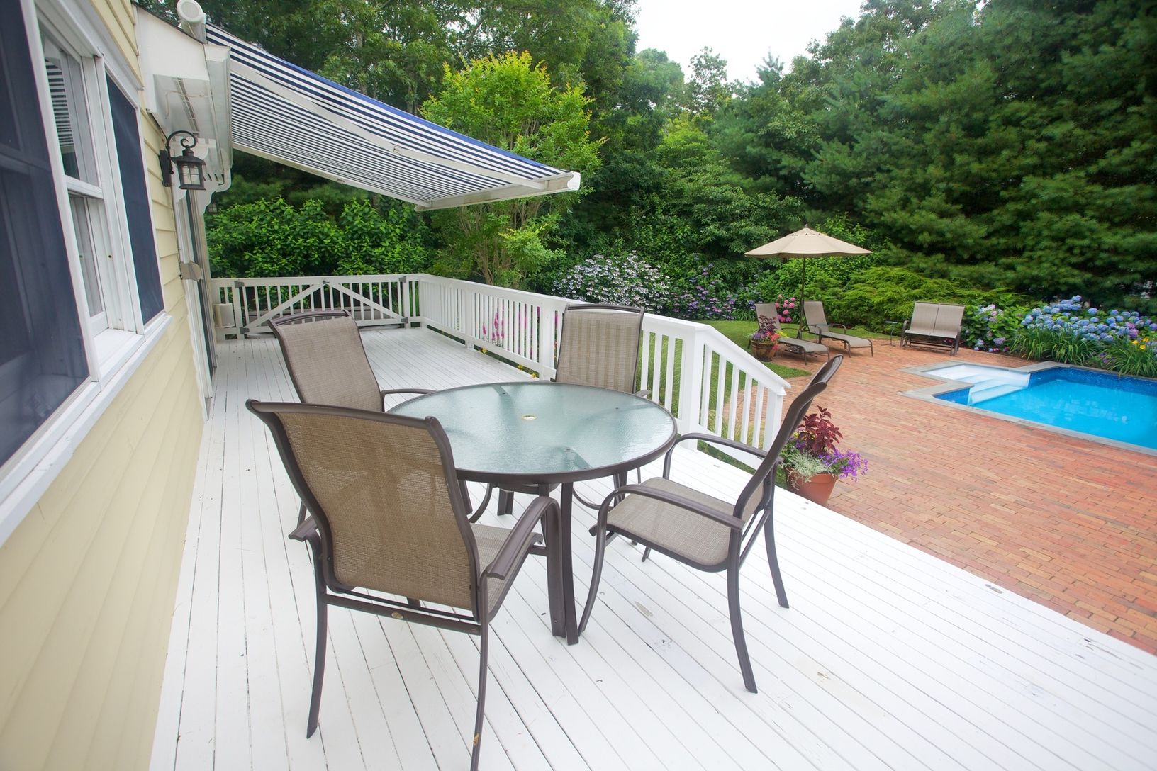 Welcome to your private summer getaway with this beautifully-renovated four bedroom home in Water Mill. Vaulted ceilings and large windows make way for abundant light throughout this turn-key gem. The first floor features a Junior master suite and a gourmet chef's kitchen with all the upgrades. Step onto the balcony overlooking the pool from the second-floor master, that also features a dressing room, spacious walk-in closet, and luxurious mar
