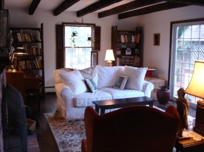 This four bedroom farmhouse features beamed ceilings and wide plank floors. New