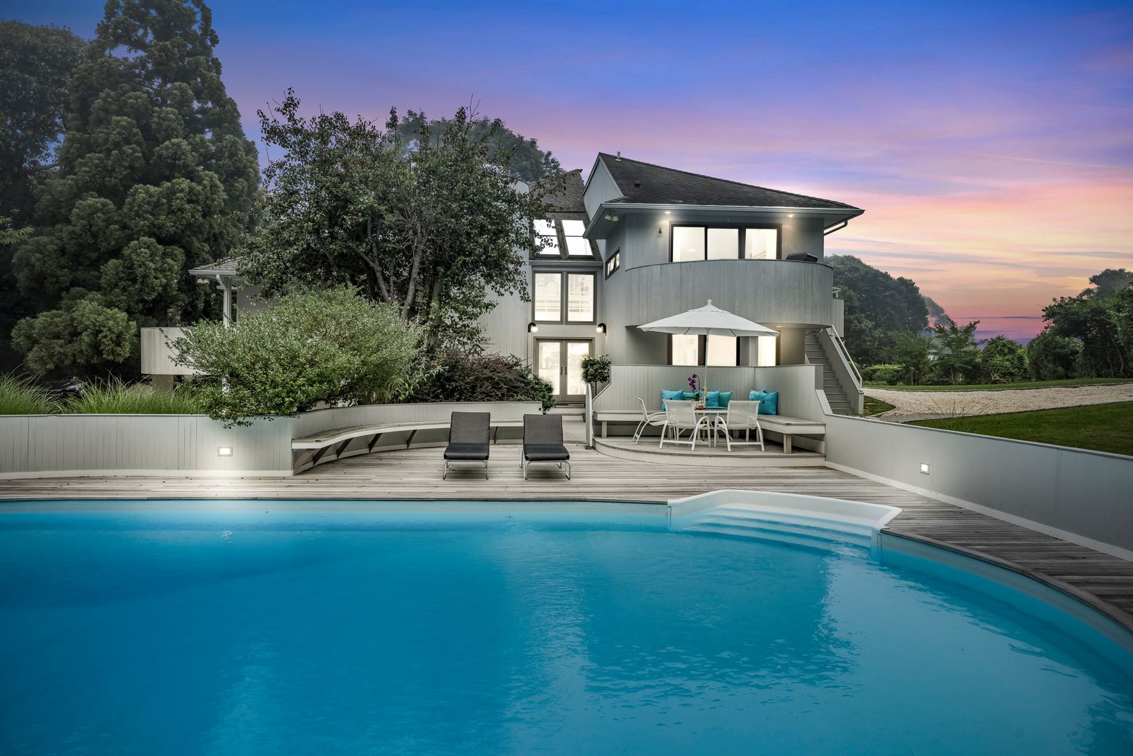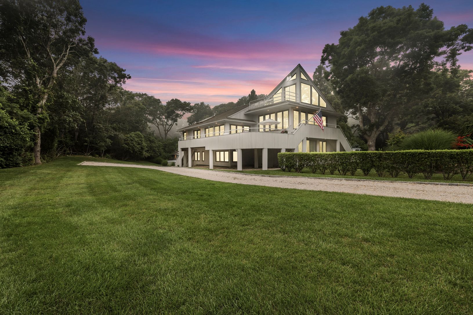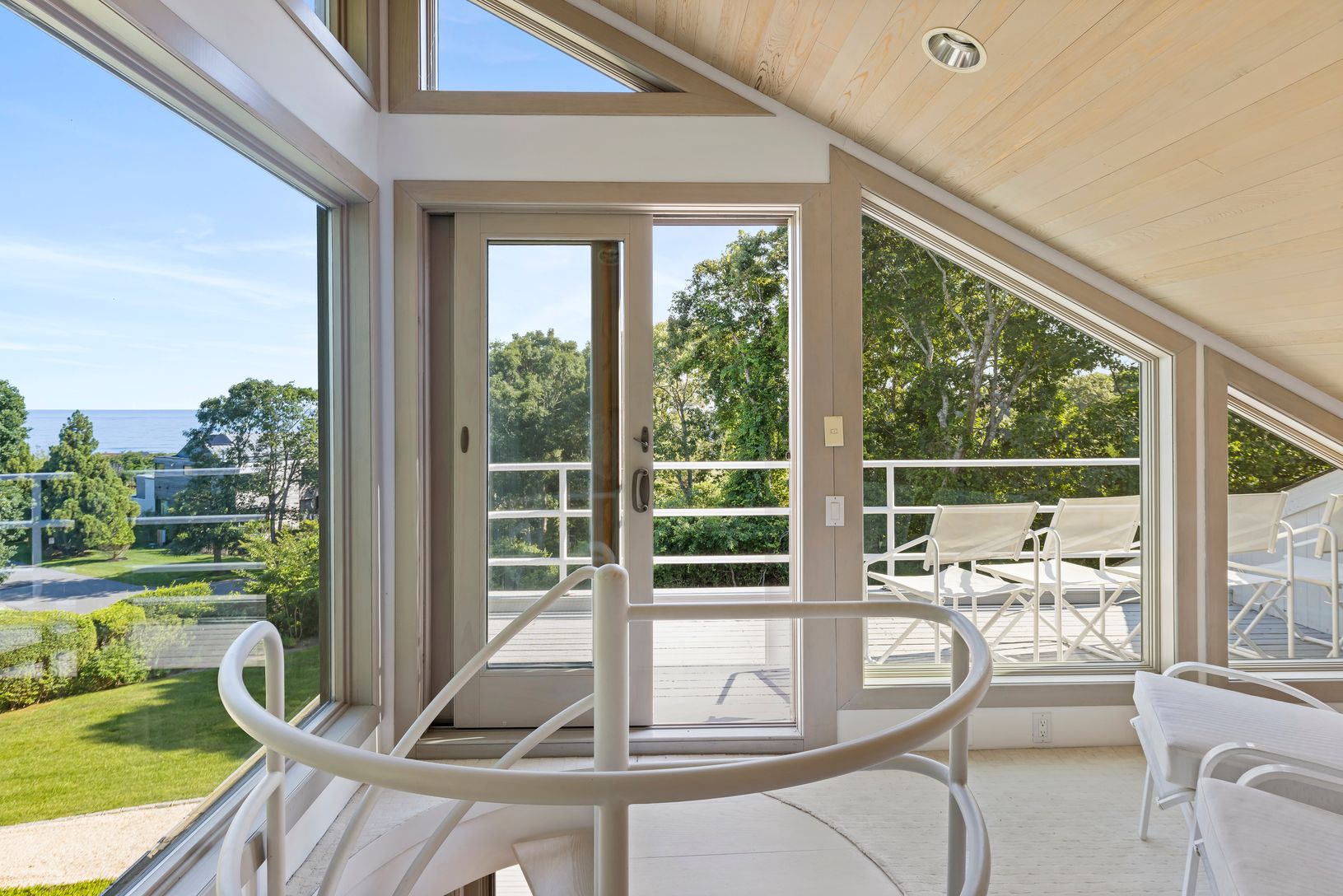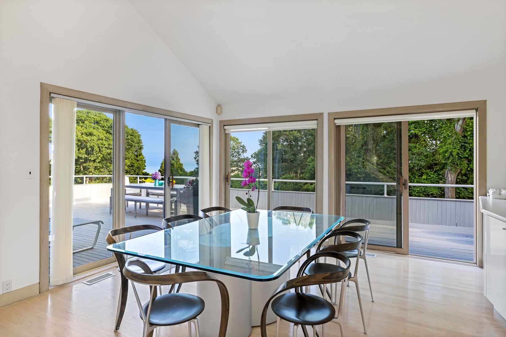 For the first time on the market, this classic contemporary Hither Hills home is available. This stunning home boasts 4 bedrooms and 4.5 bathrooms, offering a perfect blend of elegance and comfort. As you step inside, you'll be greeted by high ceilings complemented by the warmth of hardwood floors throughout. Architectural elements include natural finishes, cedar siding, and windows throughout with ocean views from all around. The chef's kitch