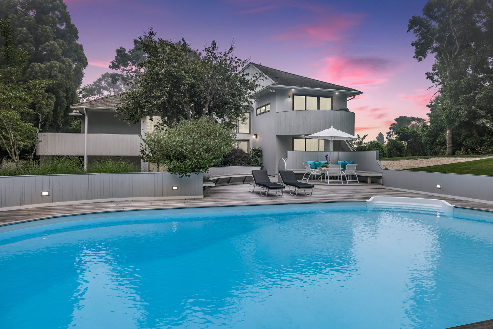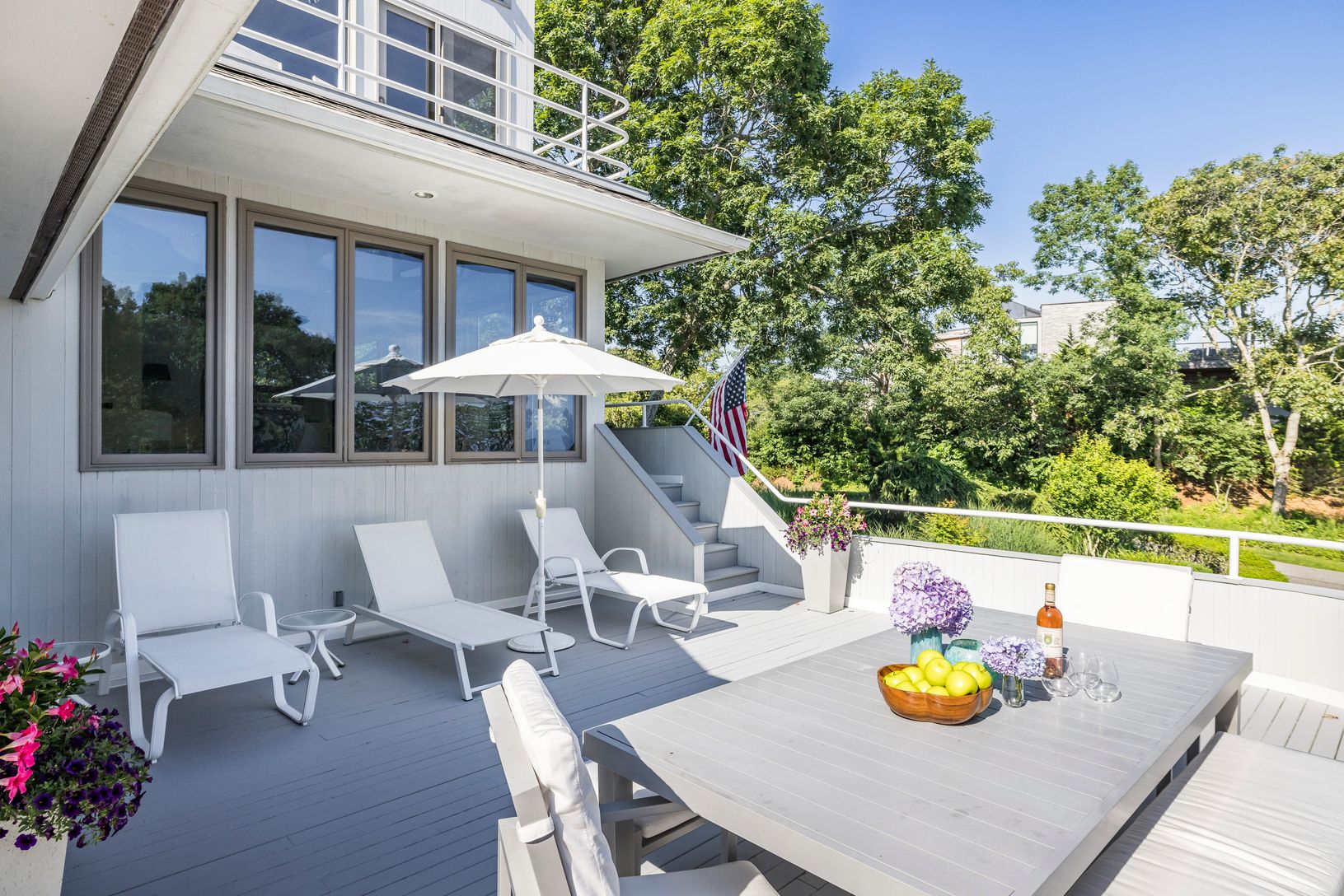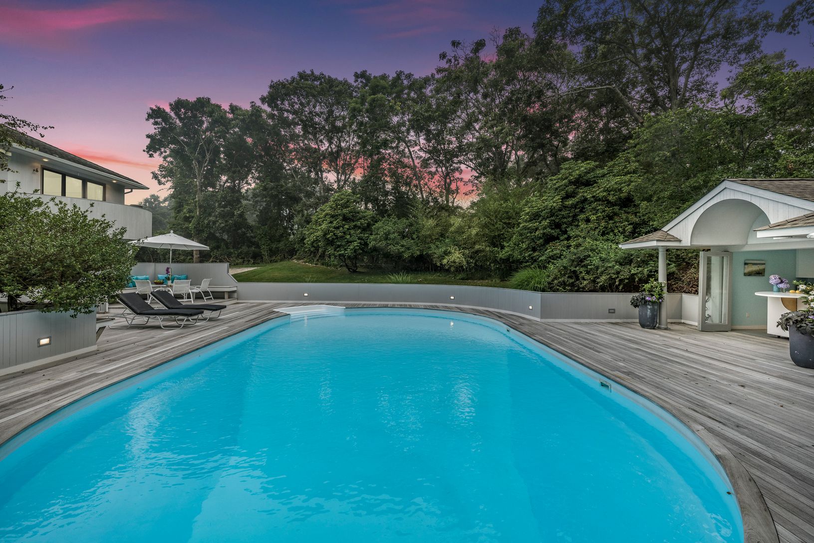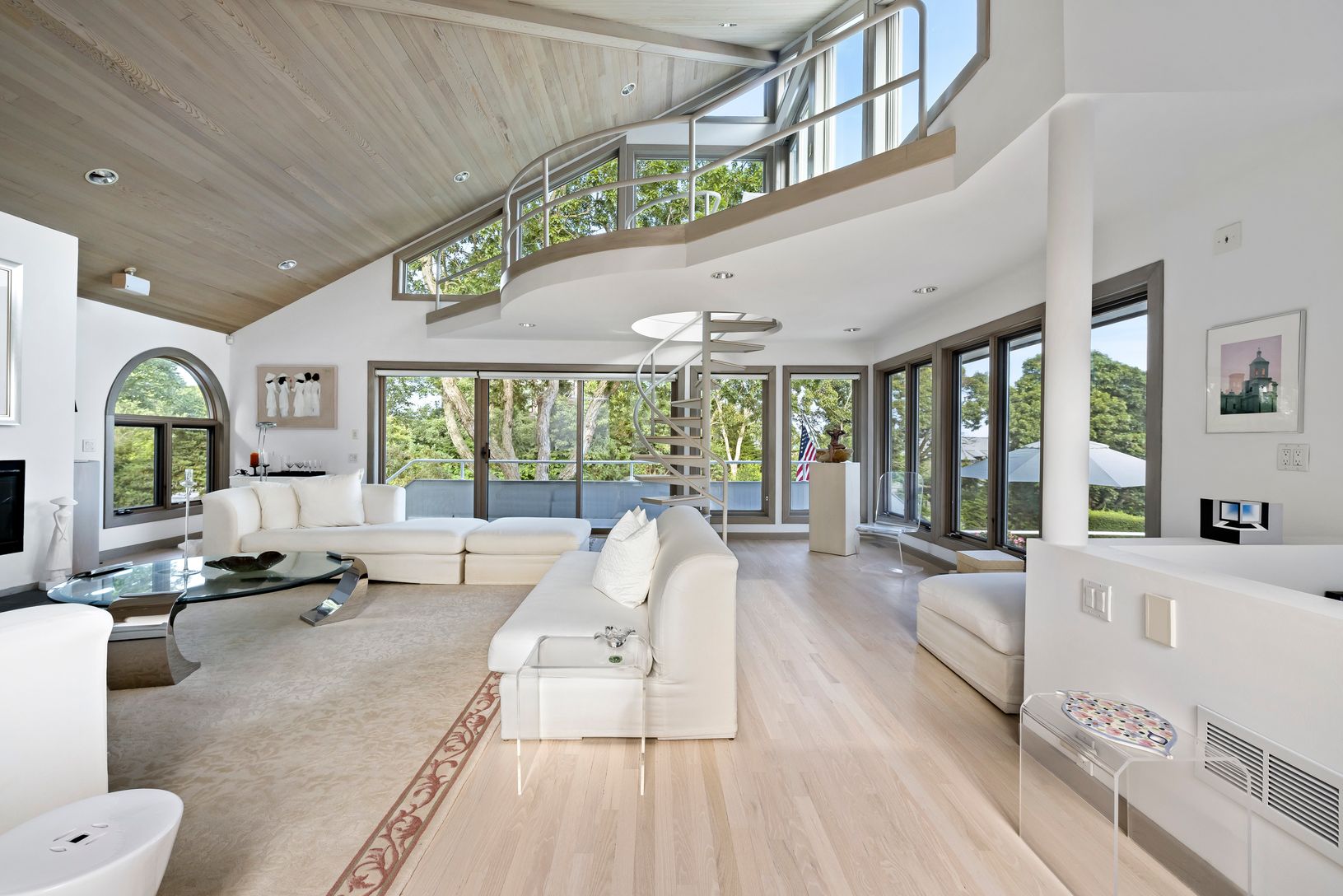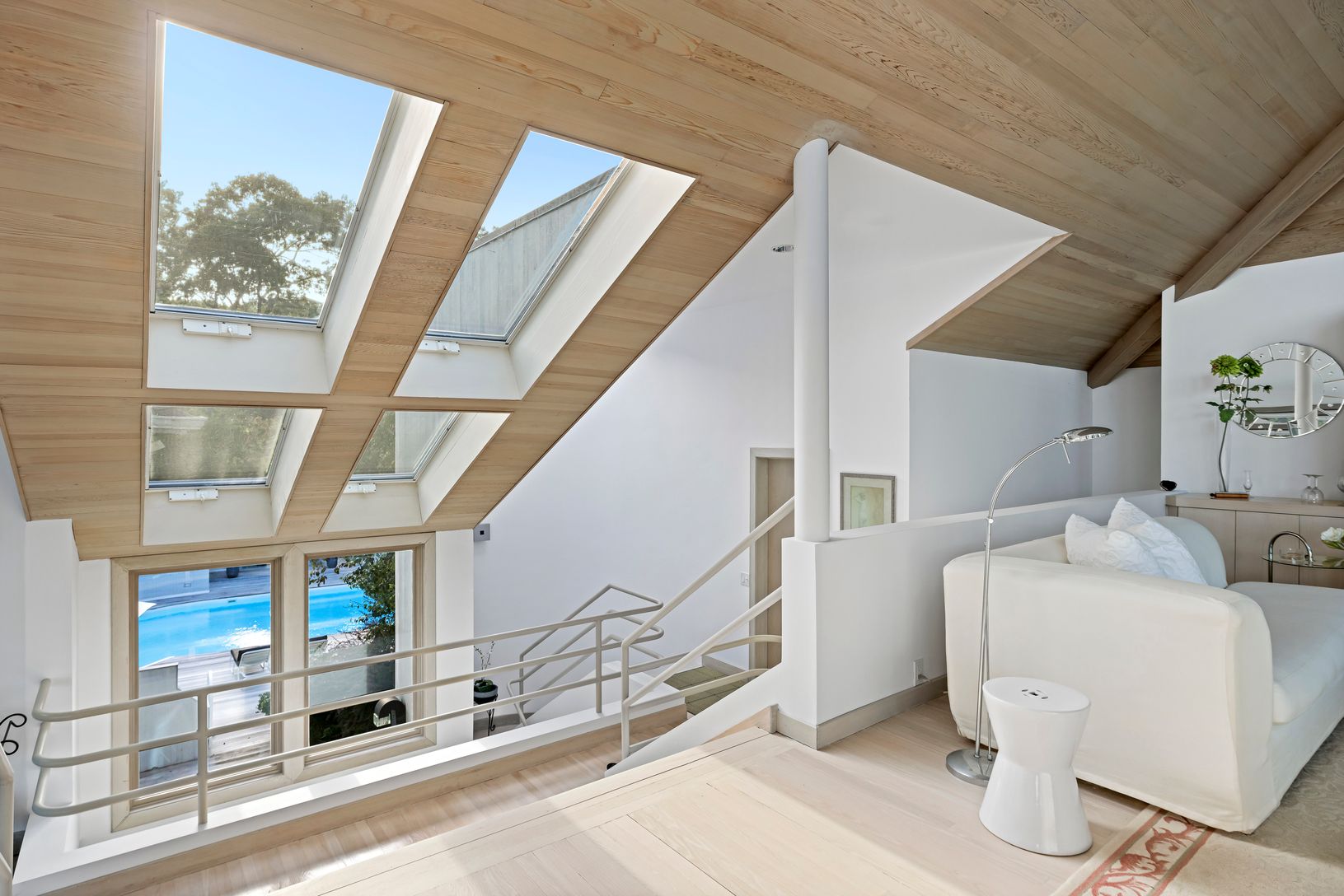 For the first time on the market, this classic contemporary Hither Hills home is available. This stunning home boasts 4 bedrooms and 4.5 bathrooms, offering a perfect blend of elegance and comfort. As you step inside, you'll be greeted by high ceilings complemented by the warmth of hardwood floors throughout. Architectural elements include natural finishes, cedar siding, and windows throughout with ocean views from all around. The chef's kitch
