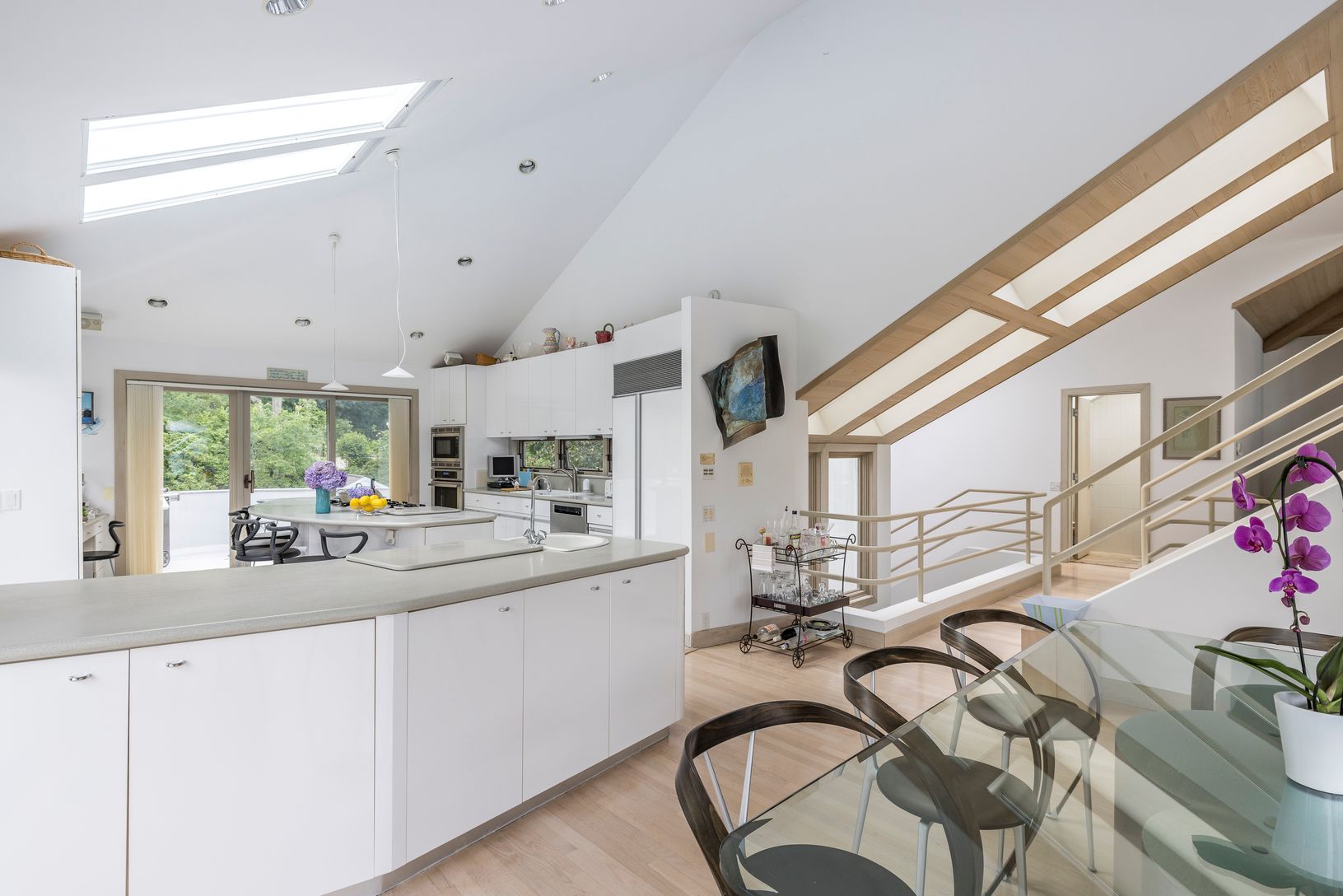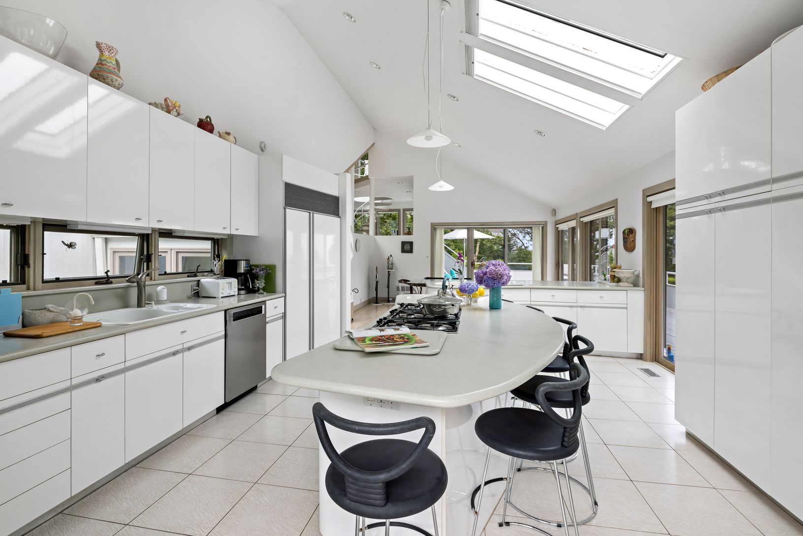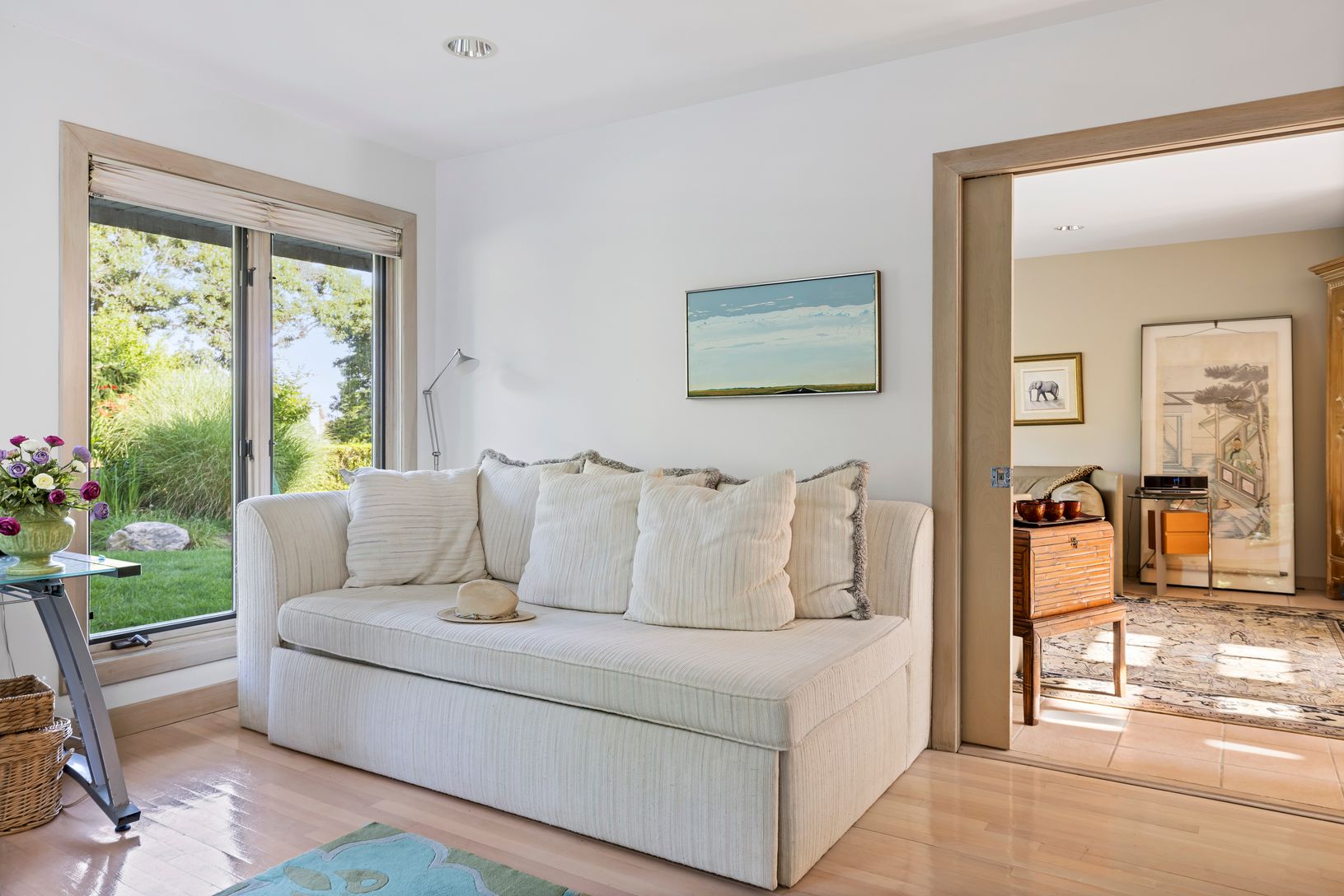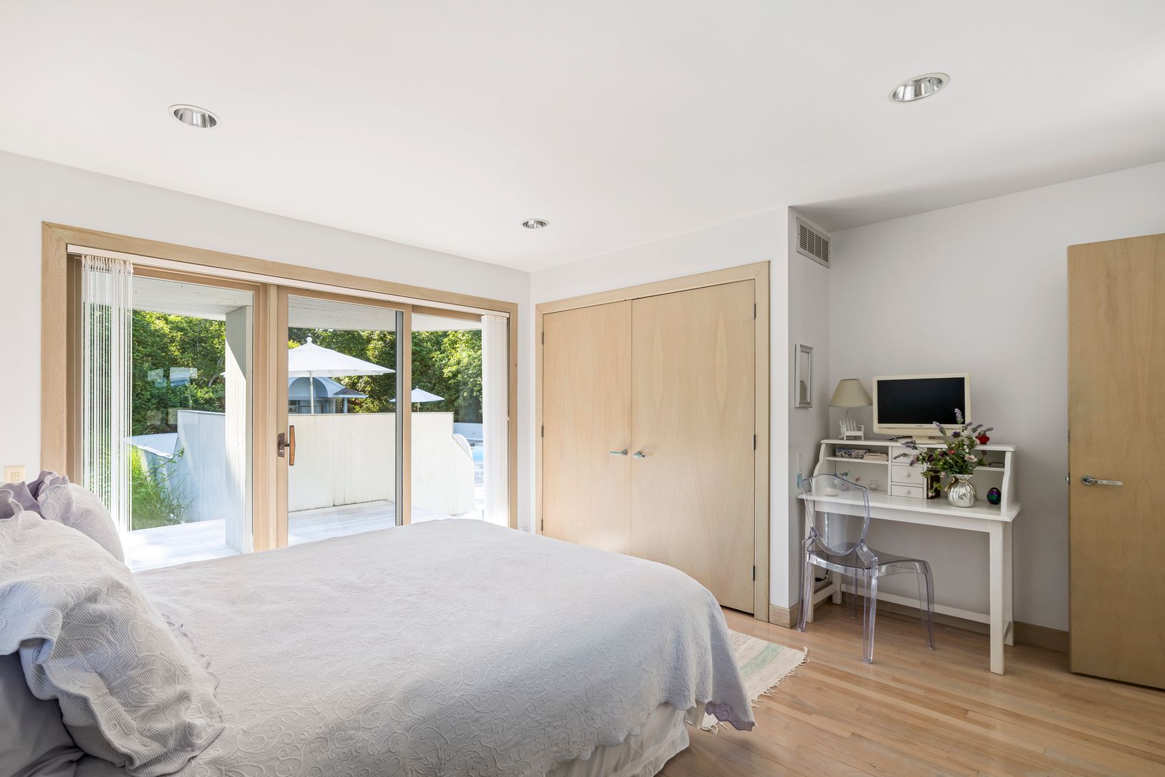 For the first time on the market, this classic contemporary Hither Hills home is available. This stunning home boasts 4 bedrooms and 4.5 bathrooms, offering a perfect blend of elegance and comfort. As you step inside, you'll be greeted by high ceilings complemented by the warmth of hardwood floors throughout. Architectural elements include natural finishes, cedar siding, and windows throughout with ocean views from all around. The chef's kitch