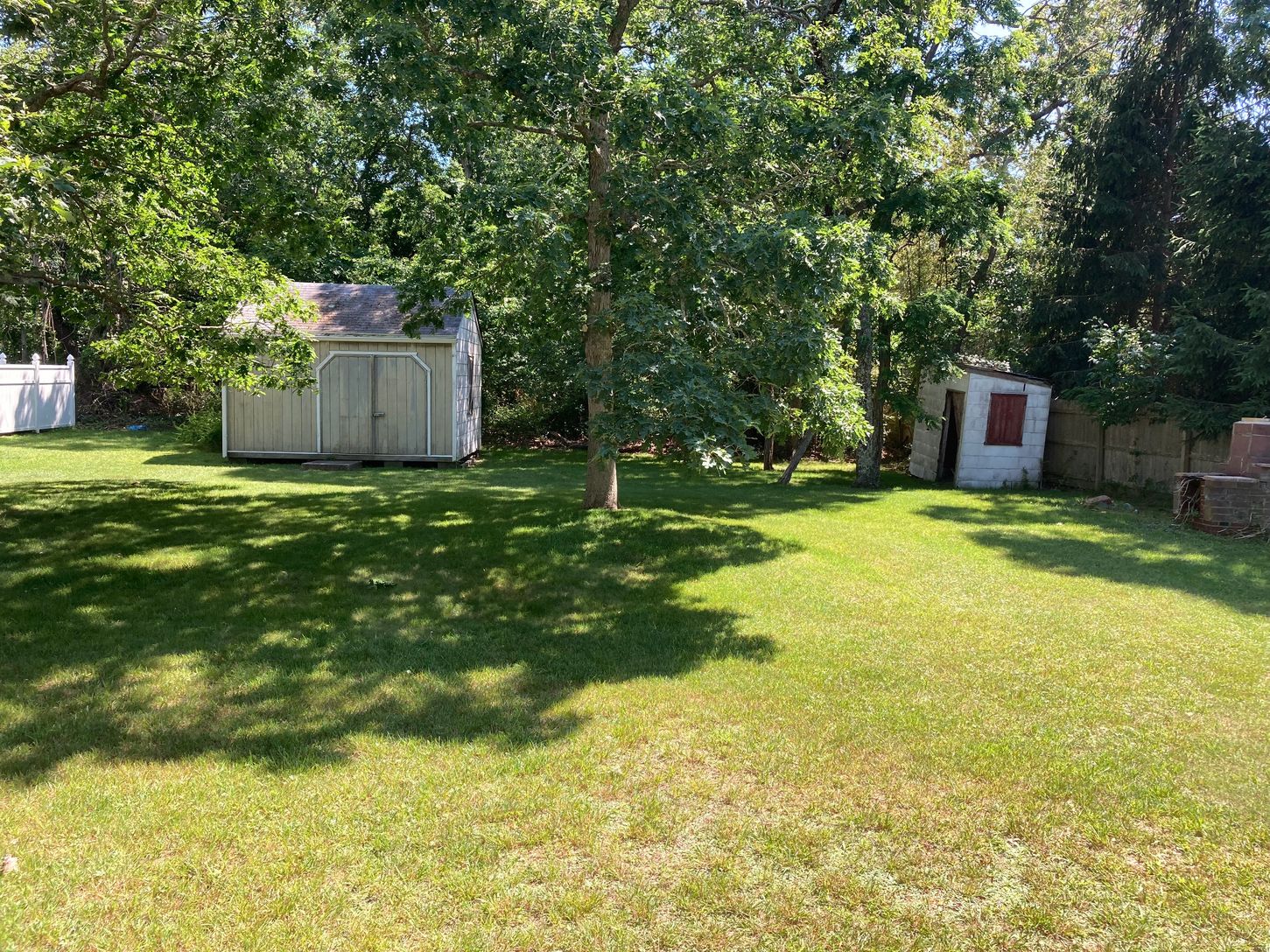 Great opportunity to own highly desirable Hampton Bays home. Cozy 2BR Ranch with open LR, DA, screened porch, large kitchen, 1 full bath on cul-de-sac near town, beaches & parks. Lots of privacy on shy half acre with outbuildings and mature trees. Updated roof, siding, windows, mechanicals, partial basement. Easy show!