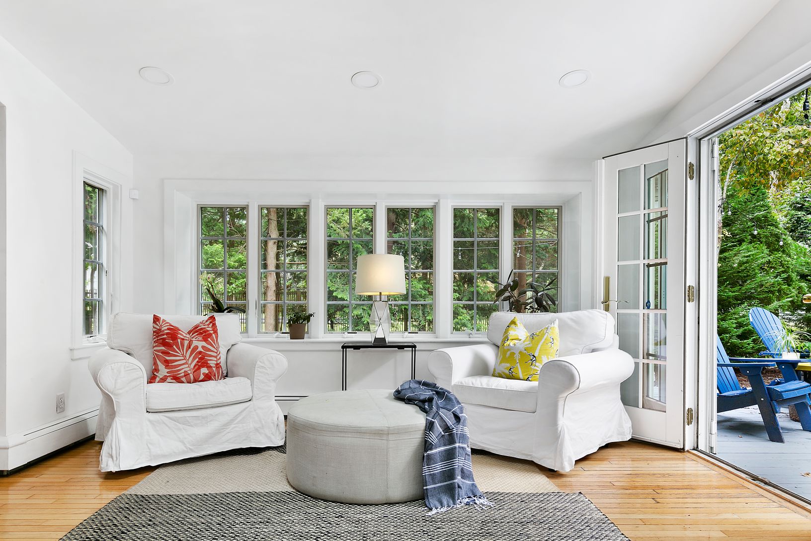Recently renovated throughout, 19 Harbor View Drive is a perfect retreat on a quiet street in East Hampton Springs. This renovated contemporary features and an open floor plan - kitchen with sky lights, dining room, sunken living room and sun room. There are three bedrooms with two renovated baths all on one level. The finished lower level provides a fourth bedroom third full bath, den, laundry room and office. Improvements in 2018 include