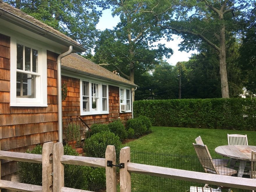 Located minutes from Sag Harbor's shops and restaurants on tree-lined Harrison Street off Madison, sits this beautifully landscaped and very private 3 bedroom / 1 bath shingled cottage oozing with charm. Situated on .34 acre with a new heated 16 X 40 saltwater gunite pool, this charming cottage is sundrenched throughout the day and wows with gorgeous sunsets. The lush green expansive property is unusually quiet and offers wonderful privacy wit