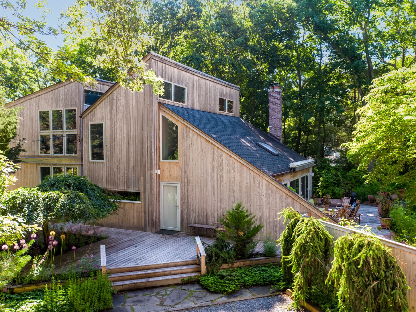 Unique setting with separate attached space that is now two individual studios. Home with four bedroom and three bathrooms and a separate attached space that would make a great home office. Lovely heated pool with private perennial gardens and stone pathways. Large surrounding deck, central air-conditioning and short stroll to beach.
