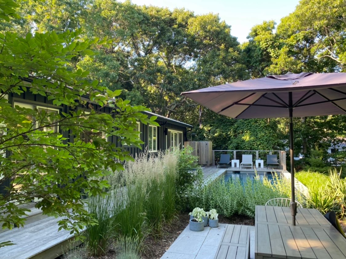19 Highwood, East Hampton, NY is a California-inspired stylish beach house with a heated salwater gunite pool in the Barnes Landing beach community (Springs/Amagansett North). This 1,400 sf home has 3 bedrooms, 2 baths, very high ceilings and is flooded with tons of light. Home is within minutes of the gorgeous Barnes Hole Bay Beach; 5 to 7 minute drive to all Amagansett ocean beaches; 5 minute drive to Amagansett Village and Jitney; and a 3 m