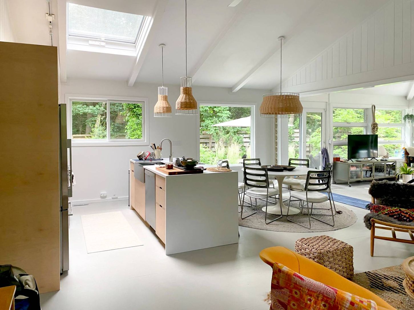 Great vibes abound in this chic beach cottage by the bay. Vaulted ceilings, an open layout and walls of windows welcome the abundant natural light. Well appointed and beautifully decorated inside and out, each space is thoughtfully designed and a joy to spend time. Outside we find luscious landscaping, room to dine and entertain, and a heated gunite pool. Just a few blocks from a residents only bay beach, blocks away from the art-centric magic