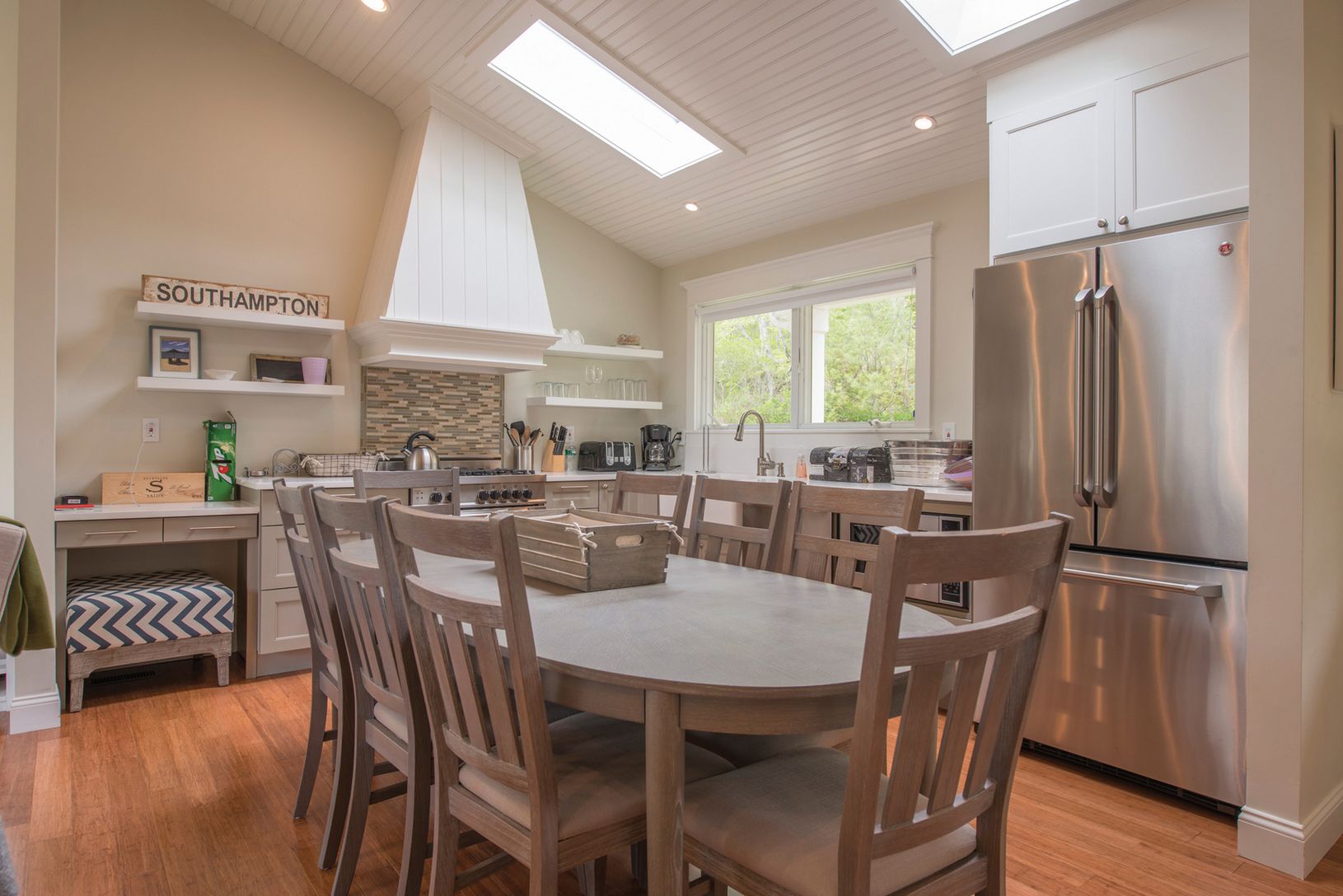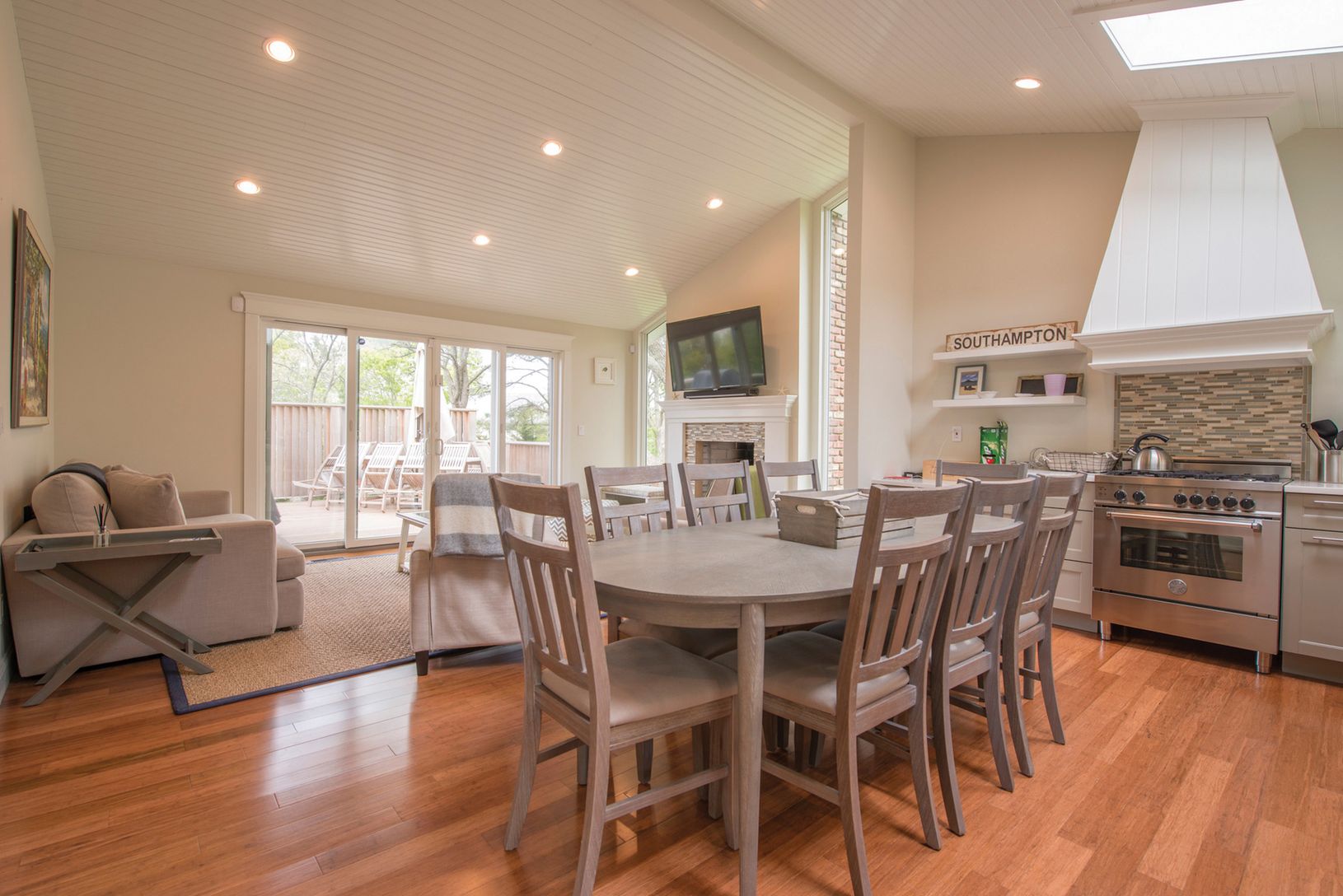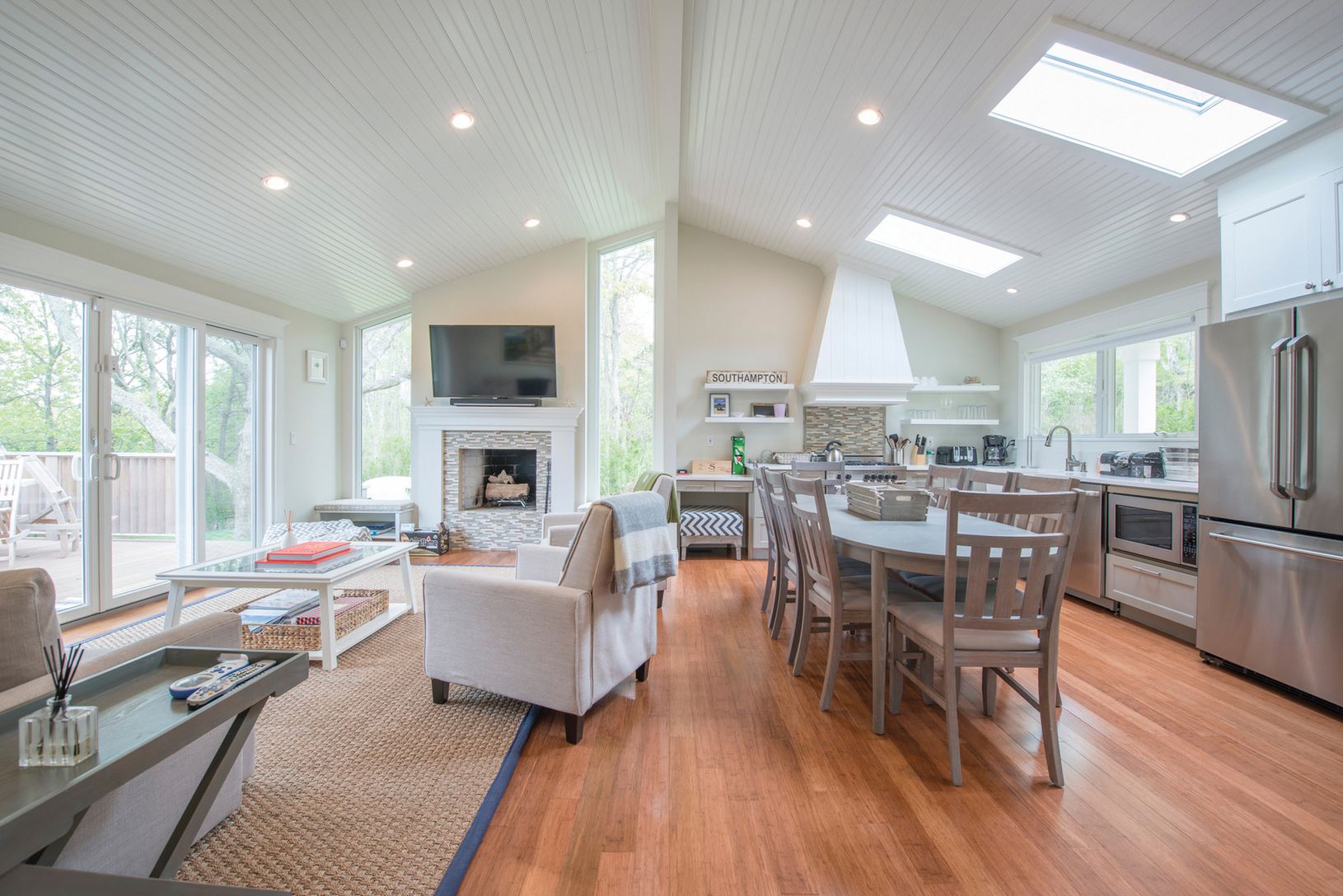 This beautifully appointed three bedroom, two and one-half bathroom home has recently been renovated head to toe including an oversize heated gunite pool complete with huge hot tub and extensive bluestone patio. Conveniently located just west of Southampton Village, for a quicker commute to NYC. High end amenities include bamboo flooring, Caesarstone kitchen countertops, wainscoted cathedral ceiling in living/kitchen/dining room, Bertazzoni
