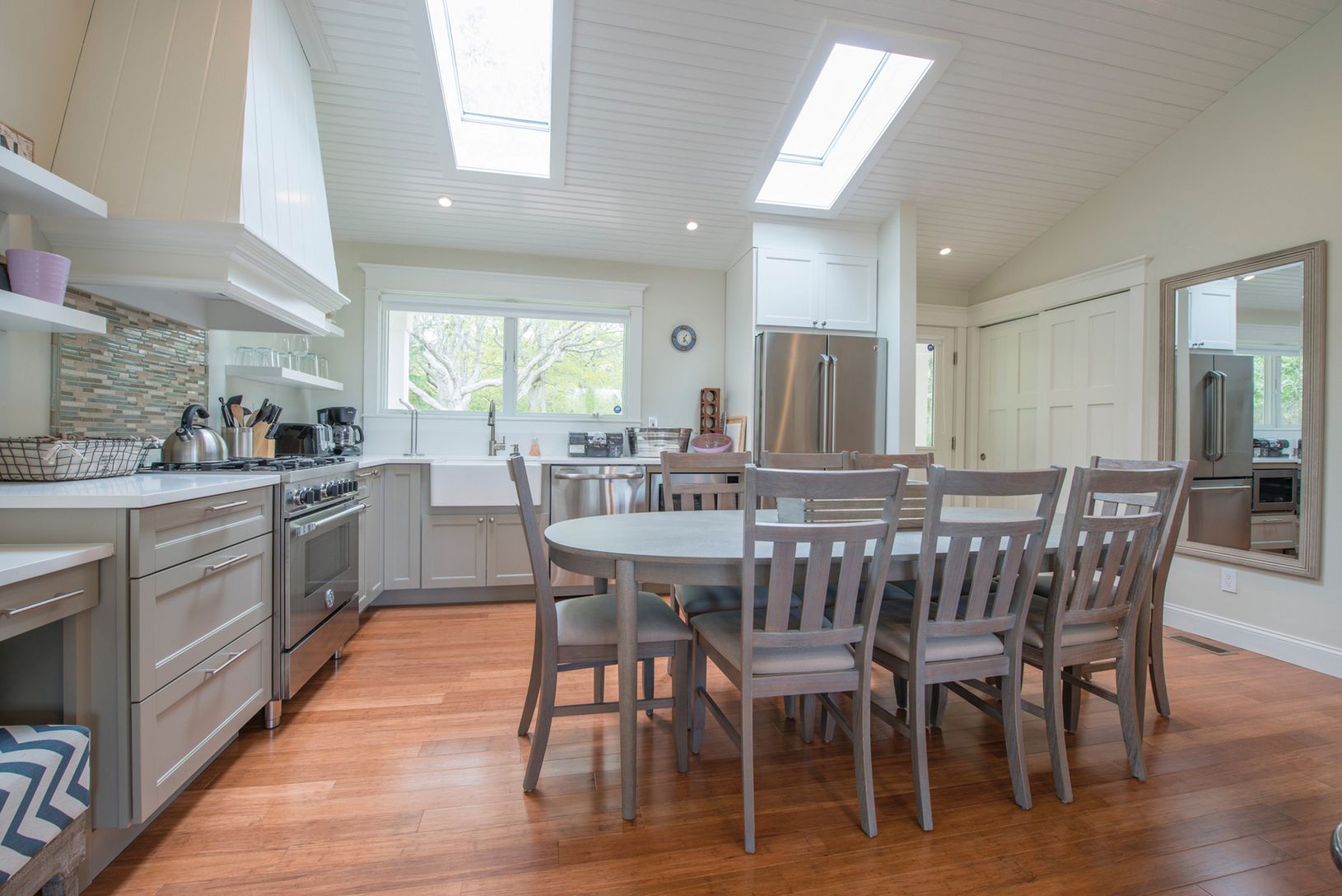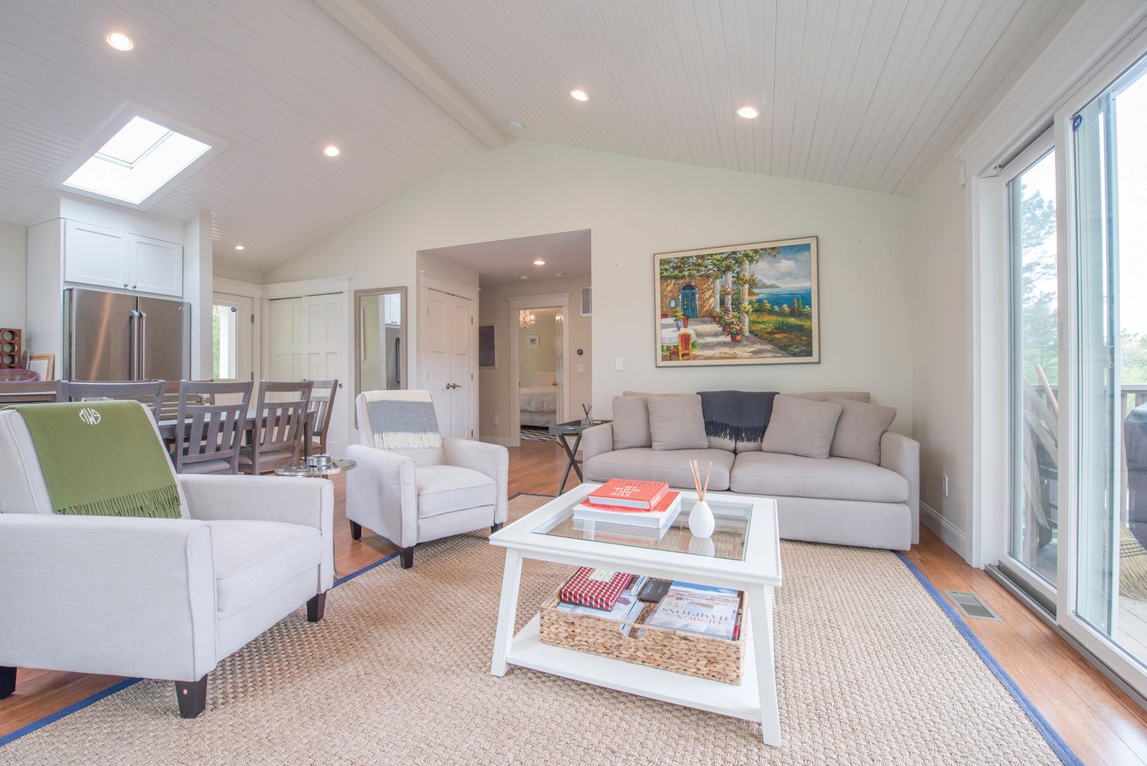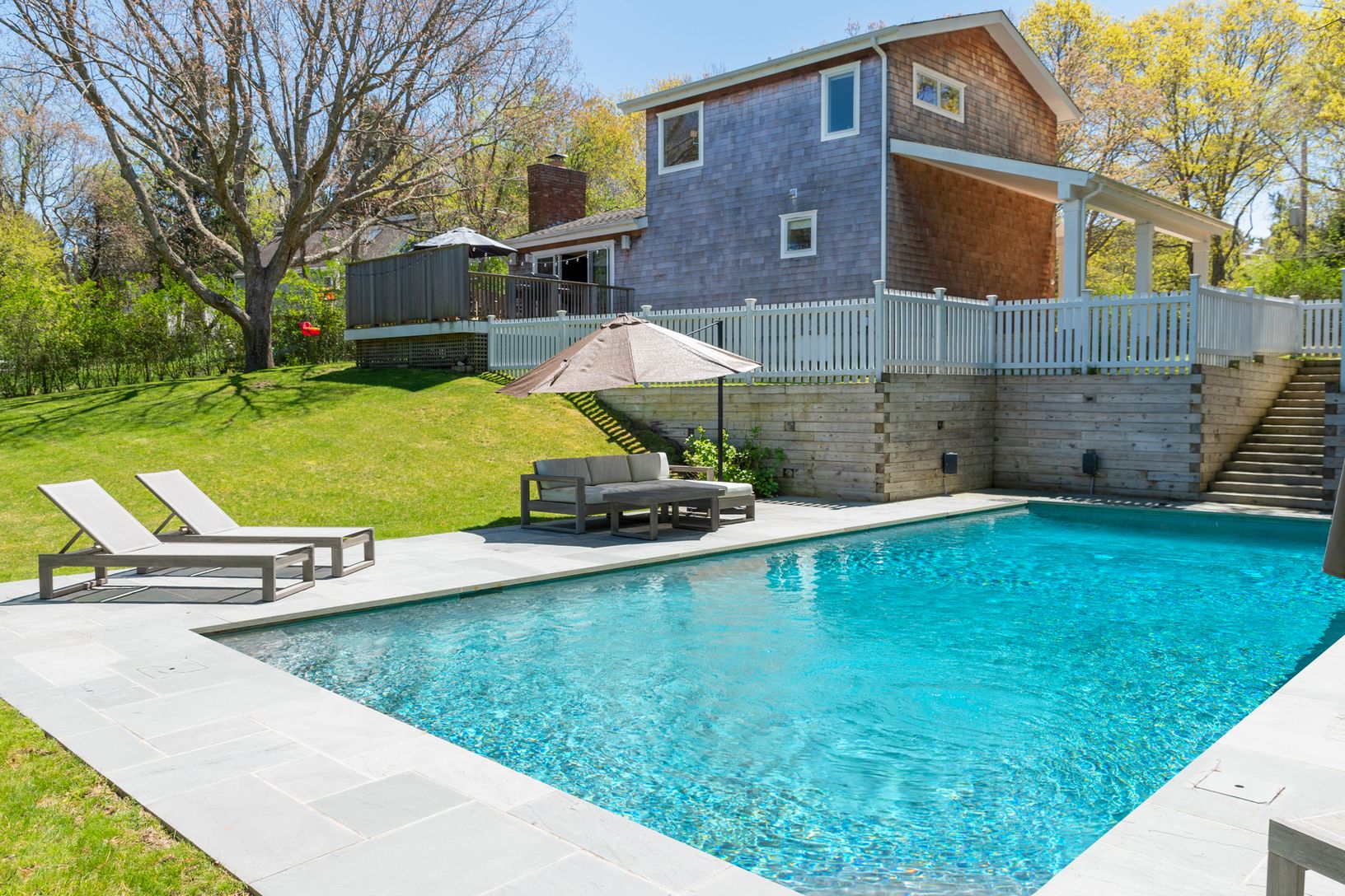 This beautifully appointed three bedroom, two and one-half bathroom home has recently been renovated head to toe including an oversize heated gunite pool complete with huge hot tub and extensive bluestone patio. Conveniently located just west of Southampton Village, for a quicker commute to NYC. High end amenities include bamboo flooring, Caesarstone kitchen countertops, wainscoted cathedral ceiling in living/kitchen/dining room, Bertazzoni