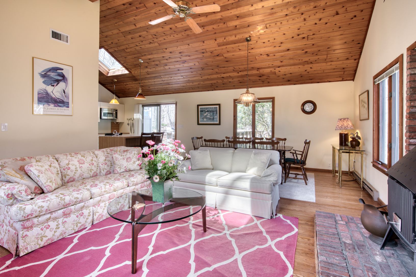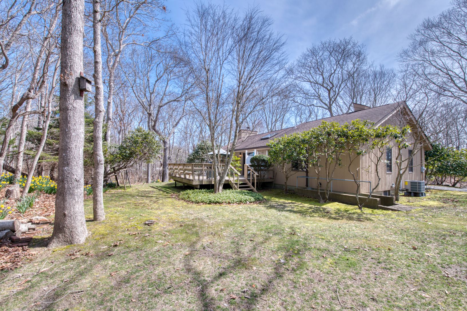19 Holly Street is situated on a shy wooded acre in Hither Woods. The open living/dining/kitchen area features cathedral ceiling with skylights, wood burning stove, hardwood floors and slider out to spacious deck and outdoor shower. Other features include a main bedroom with en suite bath, plus two guest bedrooms and another full bath. The full basement with laundry could be finished for additional entertaining space. House also has an elect