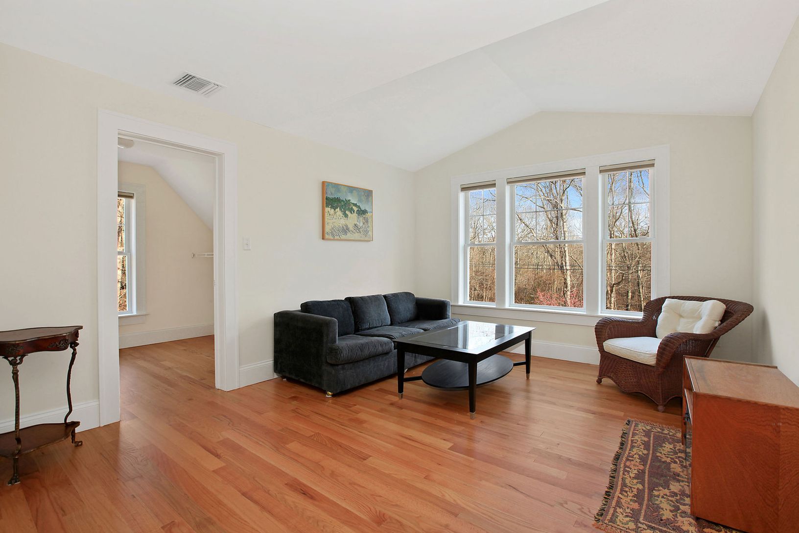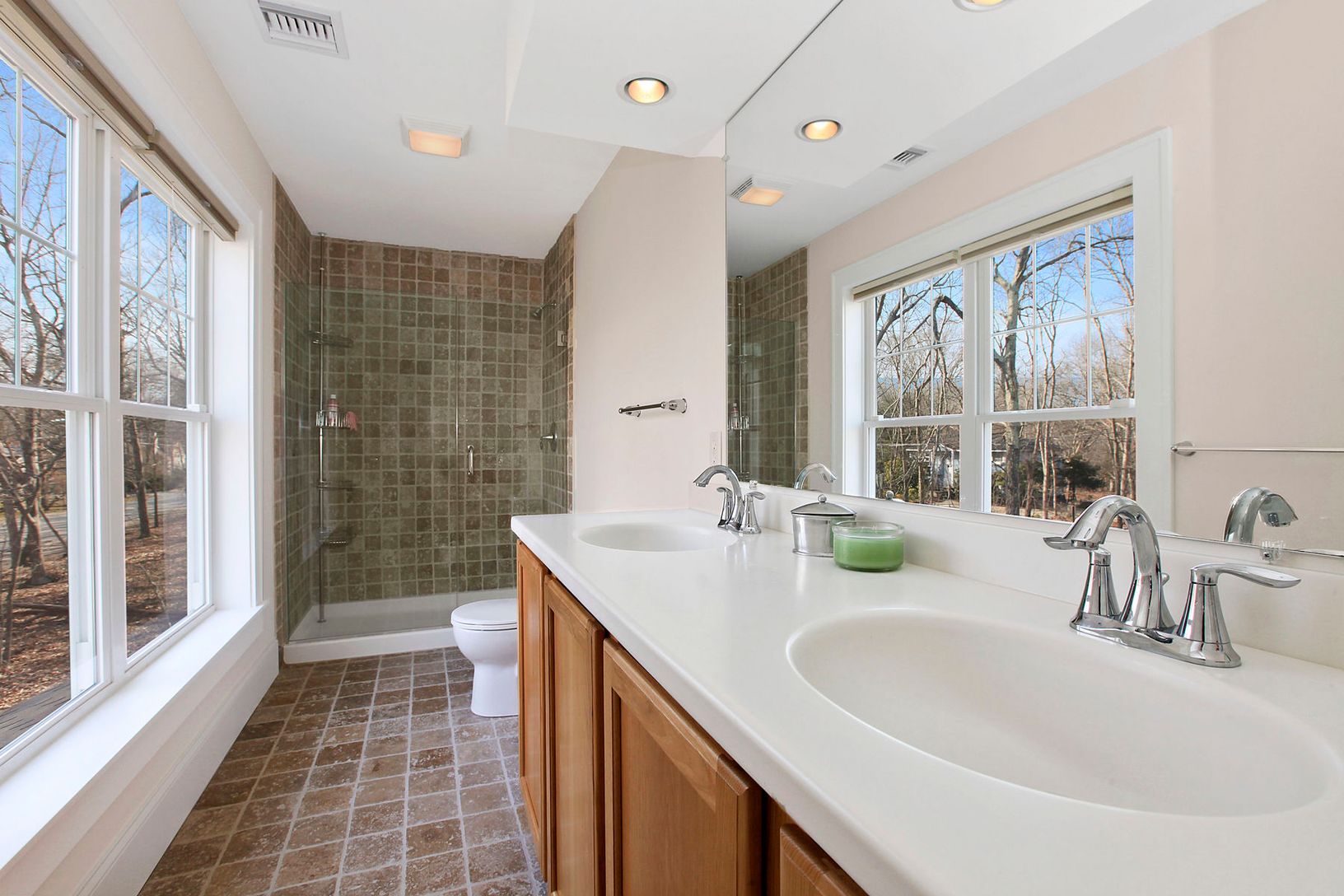 This custom 4 bedroom 4 1/2 bathroom home features beautiful living room with fireplace, a sun-room facing the woods, home office and spacious gourmet kitchen.