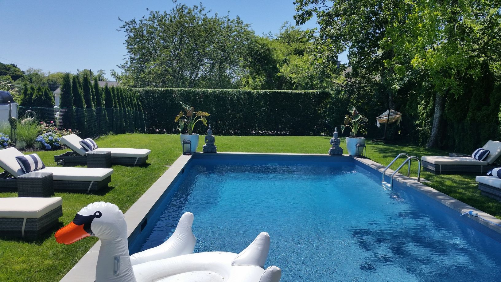 Located just minutes to Southampton Ocean Beaches and Village Center this 2000+ square foot home south of the highway has new baths and appliances and many amenities, including a new heated pool. Comfortable living room, well-proportioned eat-in kitchen with new stainless steel appliances, dining room and a powder room. On the second floor are the en suite master bedroom and two additional bedrooms with a shared bath, all newly renovated. Ther