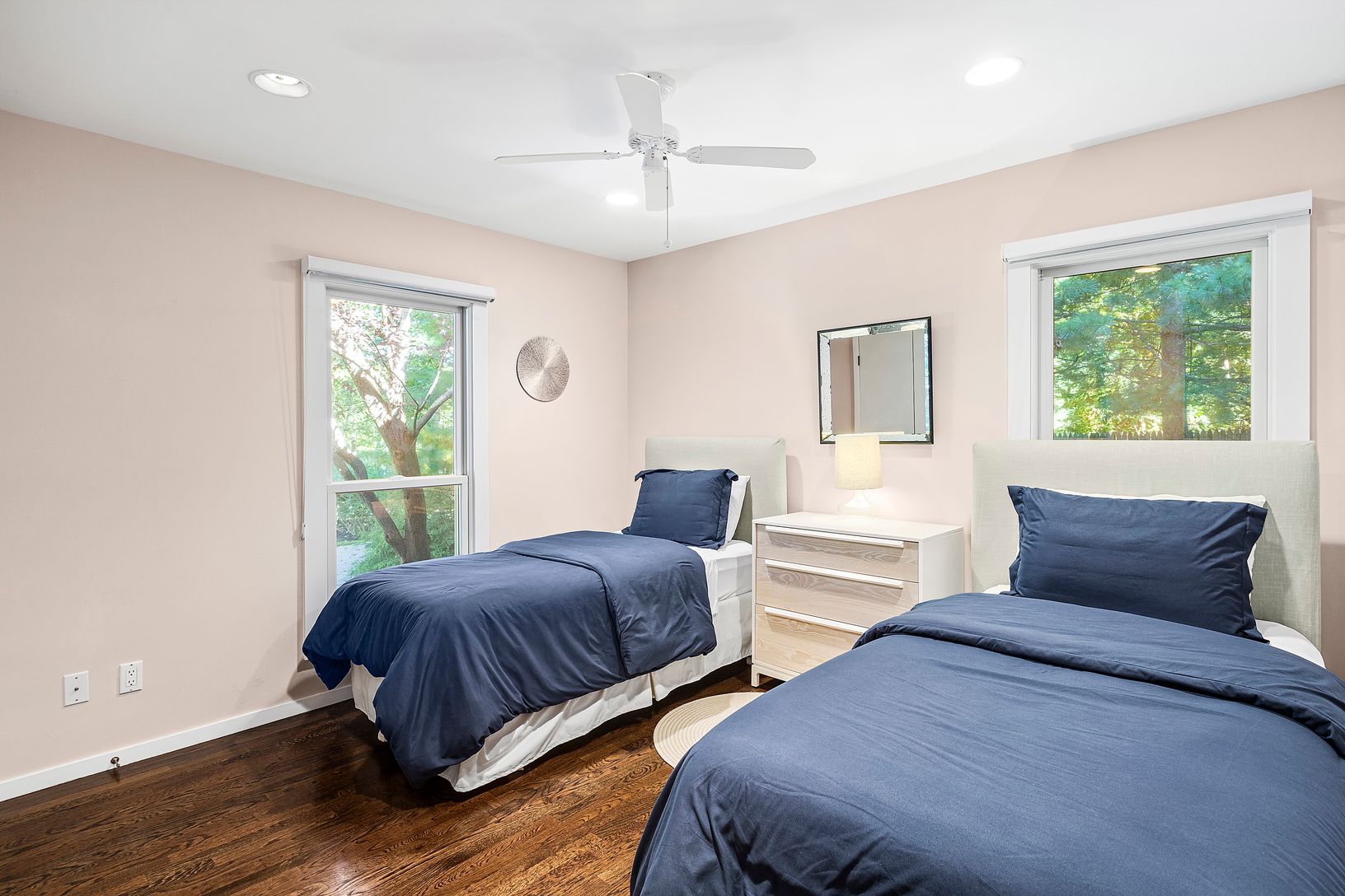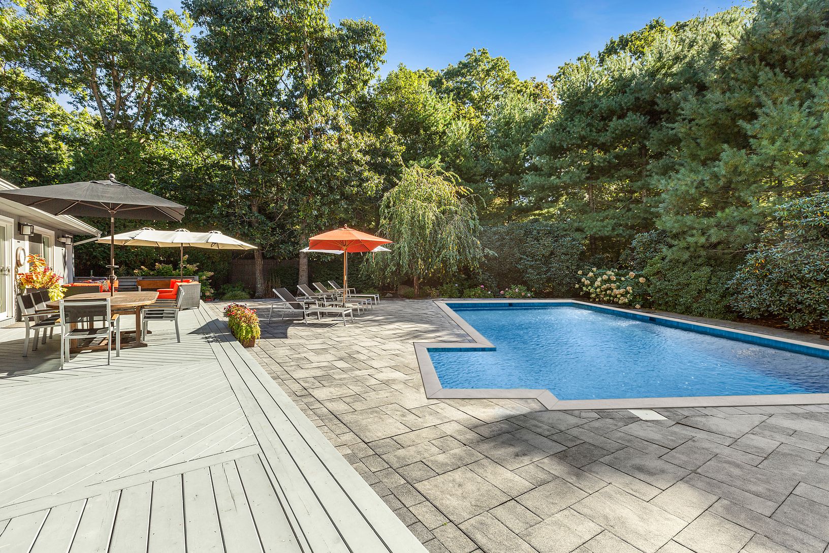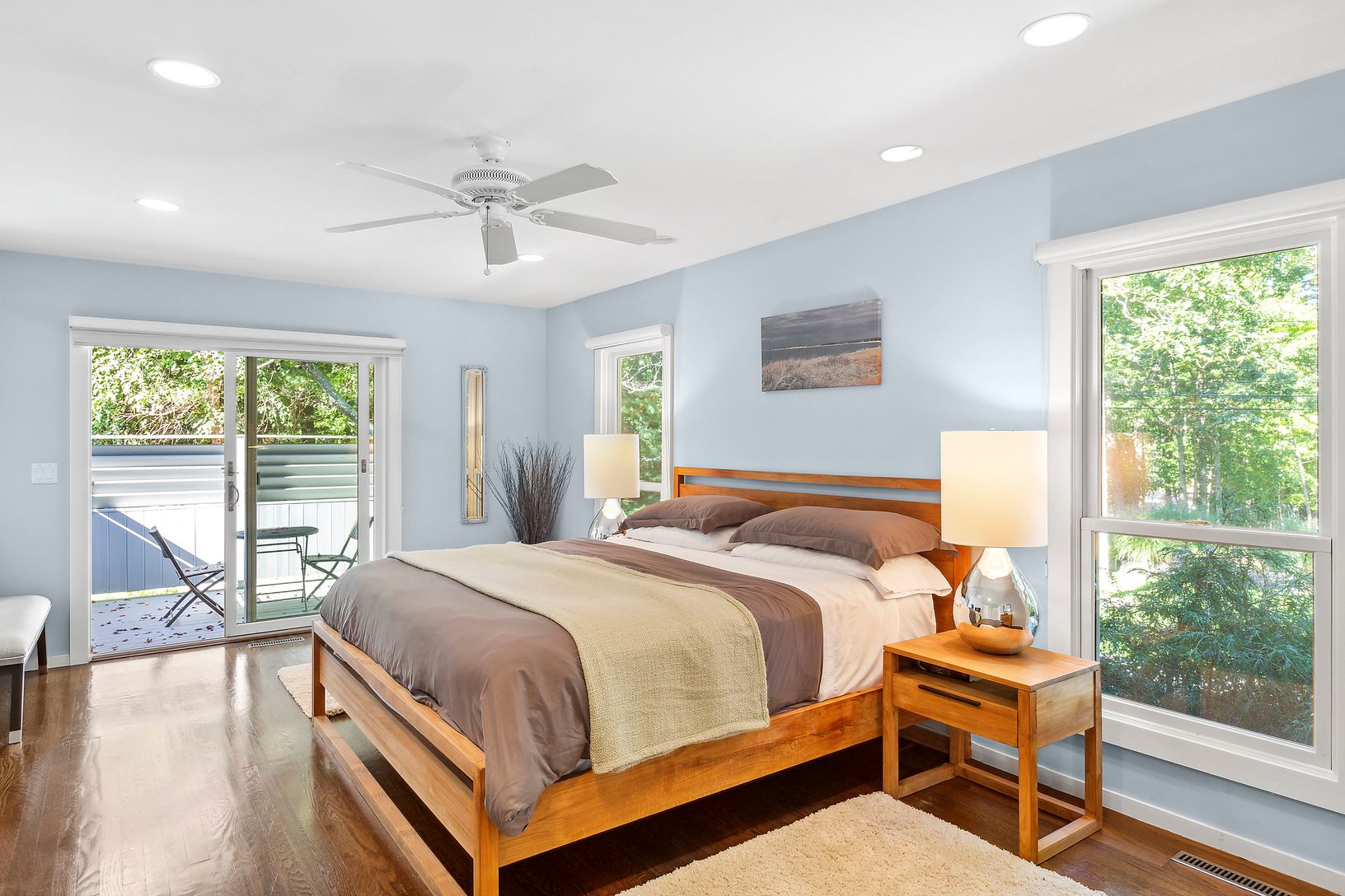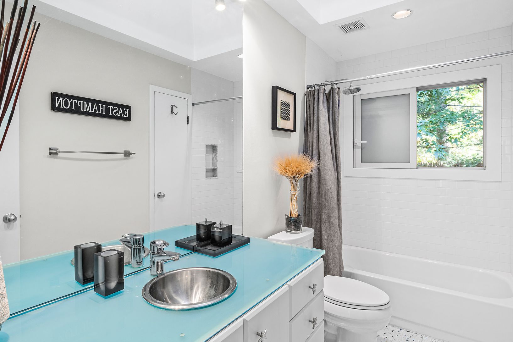 Nestled within the coveted Settlers Landing community, this impeccably renovated ranch-style residence offers three bedrooms and three baths on just under an acre of prime real estate. The spacious and open layout of the home features a meticulously redesigned kitchen, a welcoming living room with a cozy fireplace, and a luxurious en-suite primary bedroom on the main floor. As you make your way down the hall, two additional guest bedrooms shar