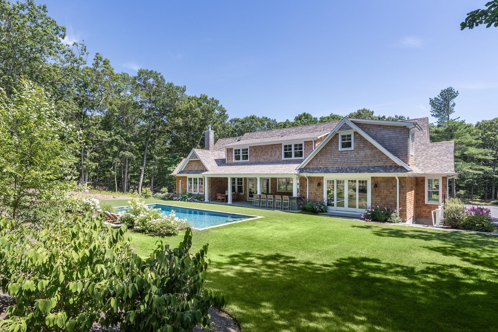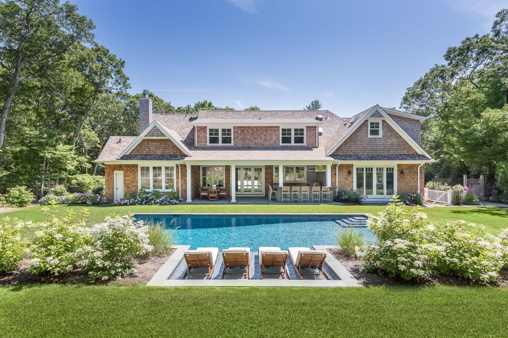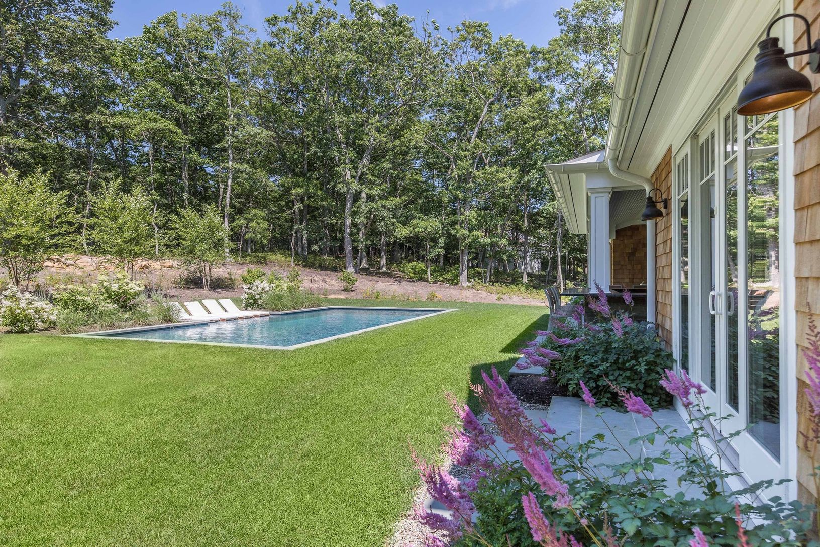 Steps to one of East Hampton's most pristine bay beaches sits this architecturally designed new construction recently reduced for immediate sale. Spread out over 4,000 sq. ft. this 5-bedroom home sits lightly on 1.50 acres of sprawling land in the coveted Landfall community. A double-height paneled entry ushers you into the open living floorplan that centers around the gourmet kitchen with marble counters and top of the line appliances. The