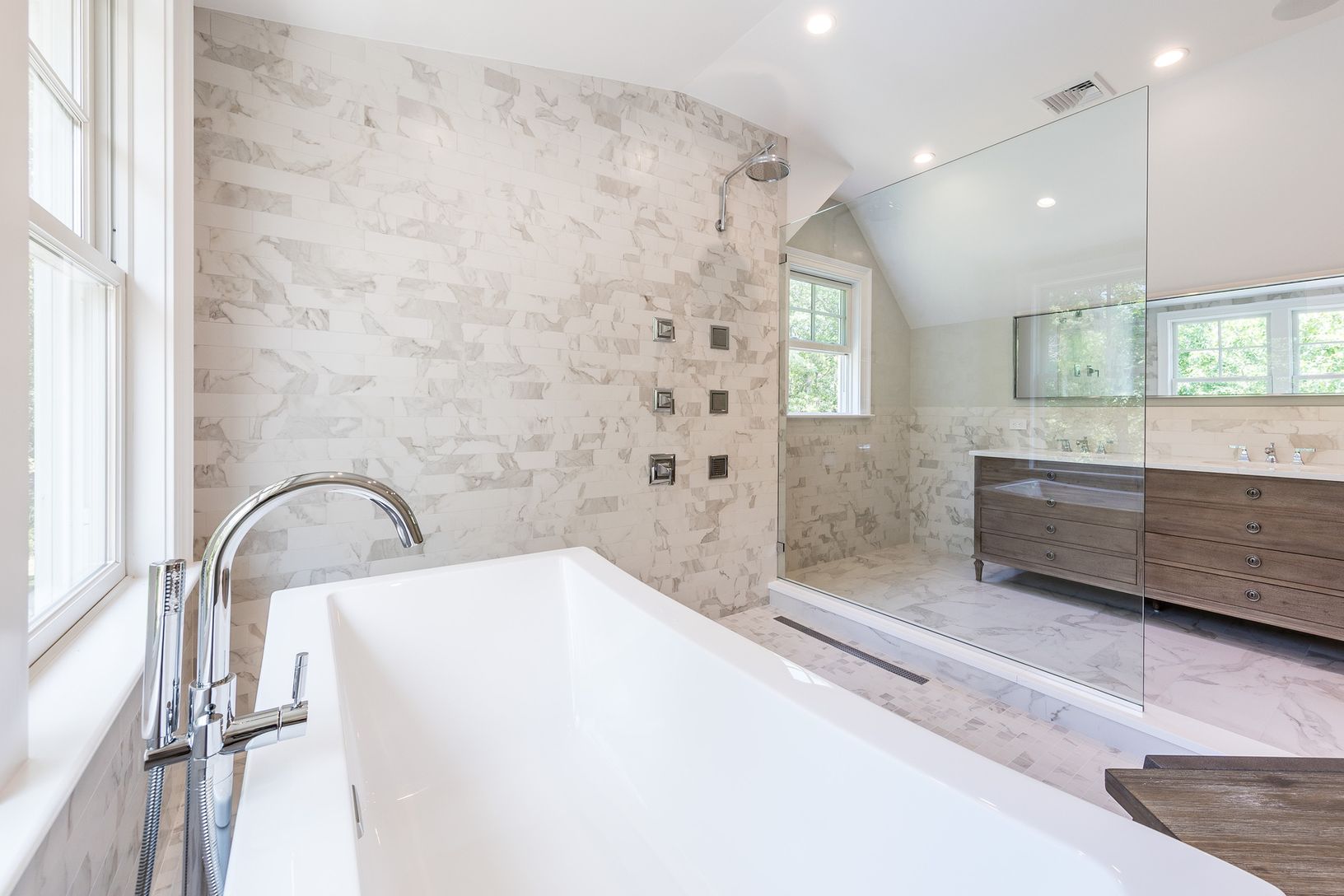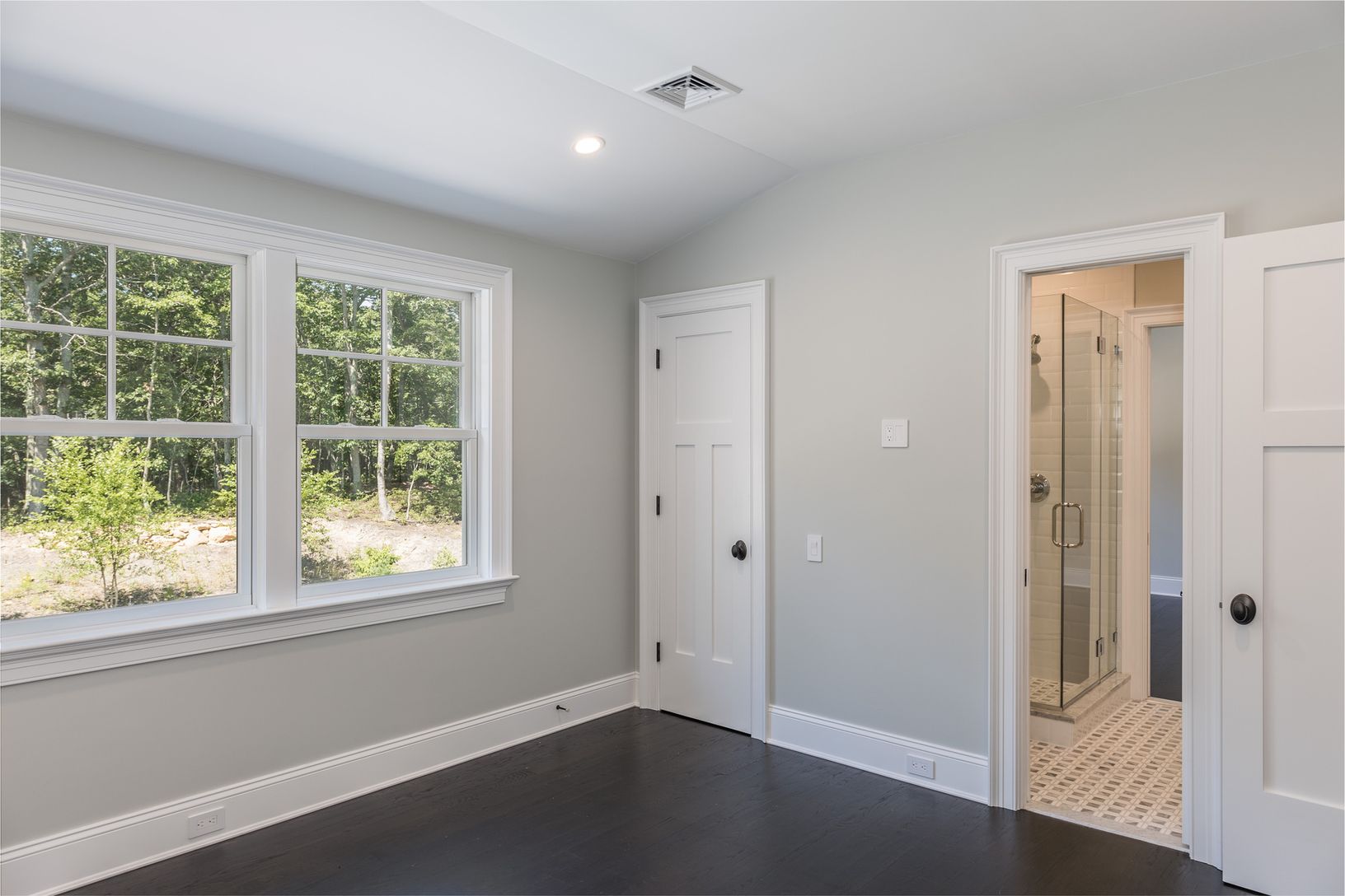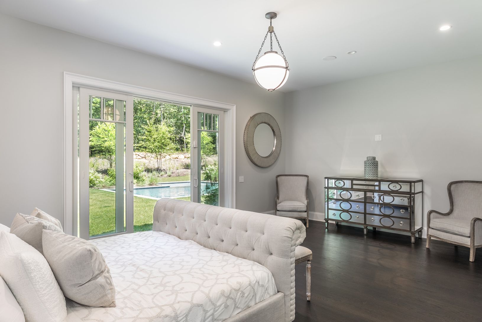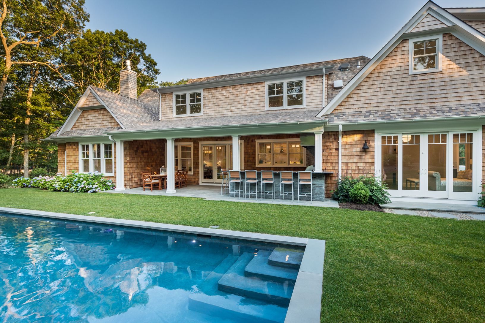 Steps to one of East Hampton's most pristine bay beaches sits this architecturally designed new construction recently reduced for immediate sale. Spread out over 4,000 sq. ft. this 5-bedroom home sits lightly on 1.50 acres of sprawling land in the coveted Landfall community. A double-height paneled entry ushers you into the open living floorplan that centers around the gourmet kitchen with marble counters and top of the line appliances. The