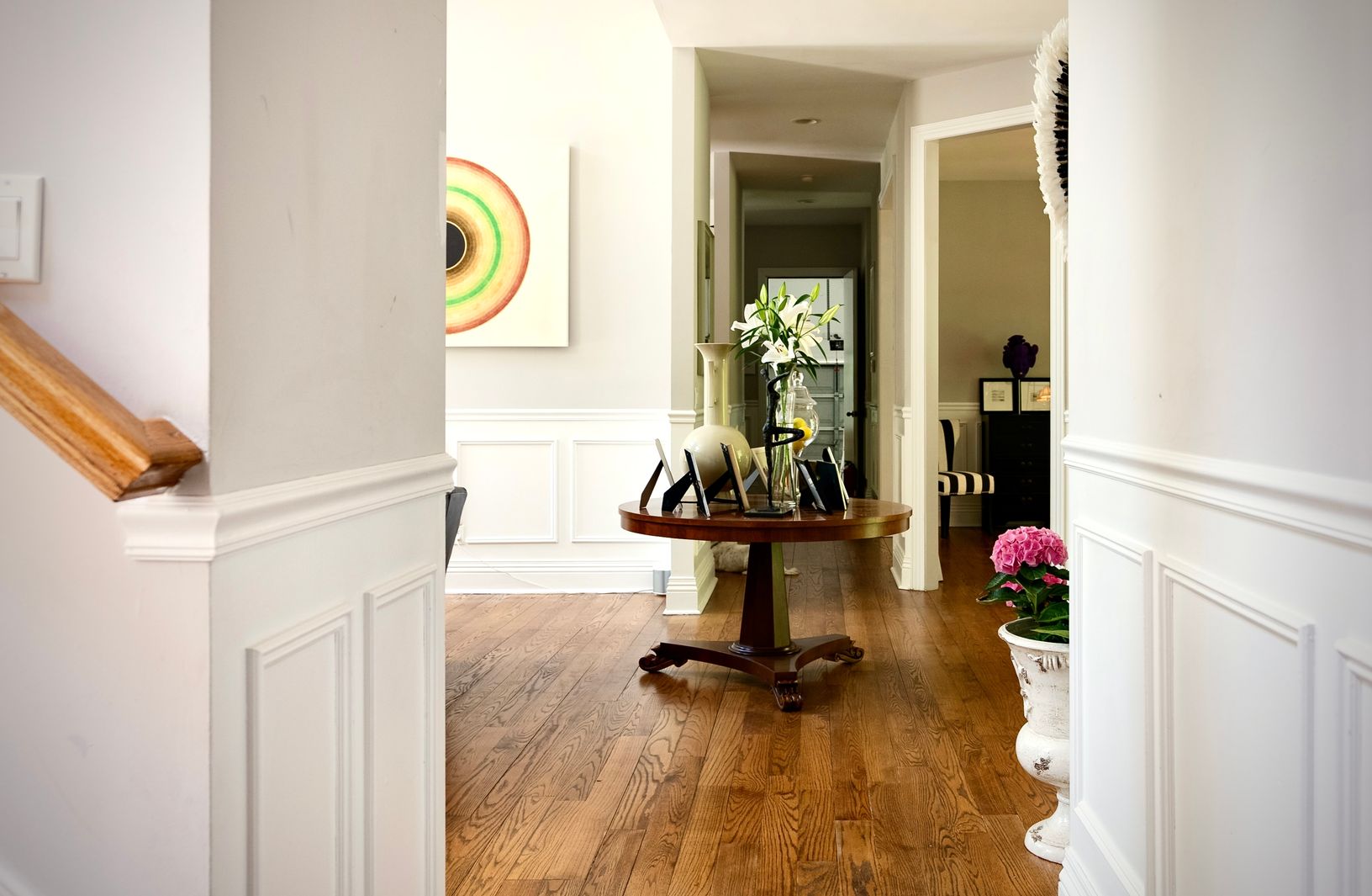 Floors: Hardwood, Tile