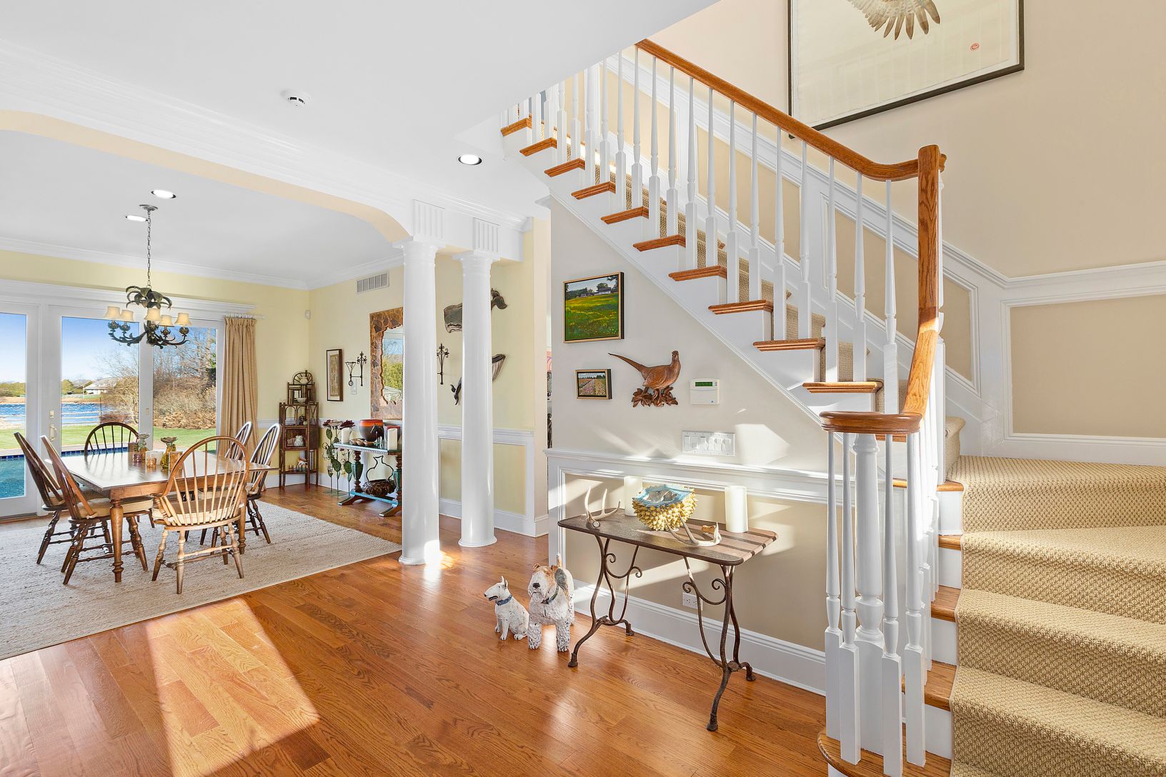 Located South of the Highway in Southampton Village with a Gunite Pool and Tennis Court is a rare find and yet, 19 Pheasant Close South provides all of that and more. This 1.5 acre pond front property was designed to accommodate beautiful views from almost every room plus a waterfront pool and a true north/south tennis court. Your guests arrive to the sunny and south facing façade with amazing light, established landscaping and covered porche