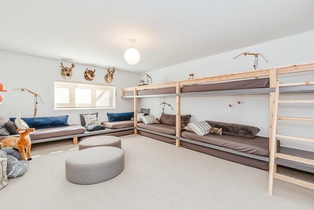This newly built home boasts 4 bedrooms and 4 bathrooms. On the first floor you will find a chef's kitchen with a breakfast bar and dining area. Also on this floor are 3 queen size bedrooms (2 with a shared bathroom), and a a half bath as well as the beautifully appointed master suite. The lower level has high ceilings and contains a game room, a bathroom and additional bedroom with 2 bunk beds and 5 twin/trundles. The immaculate exterior feat
