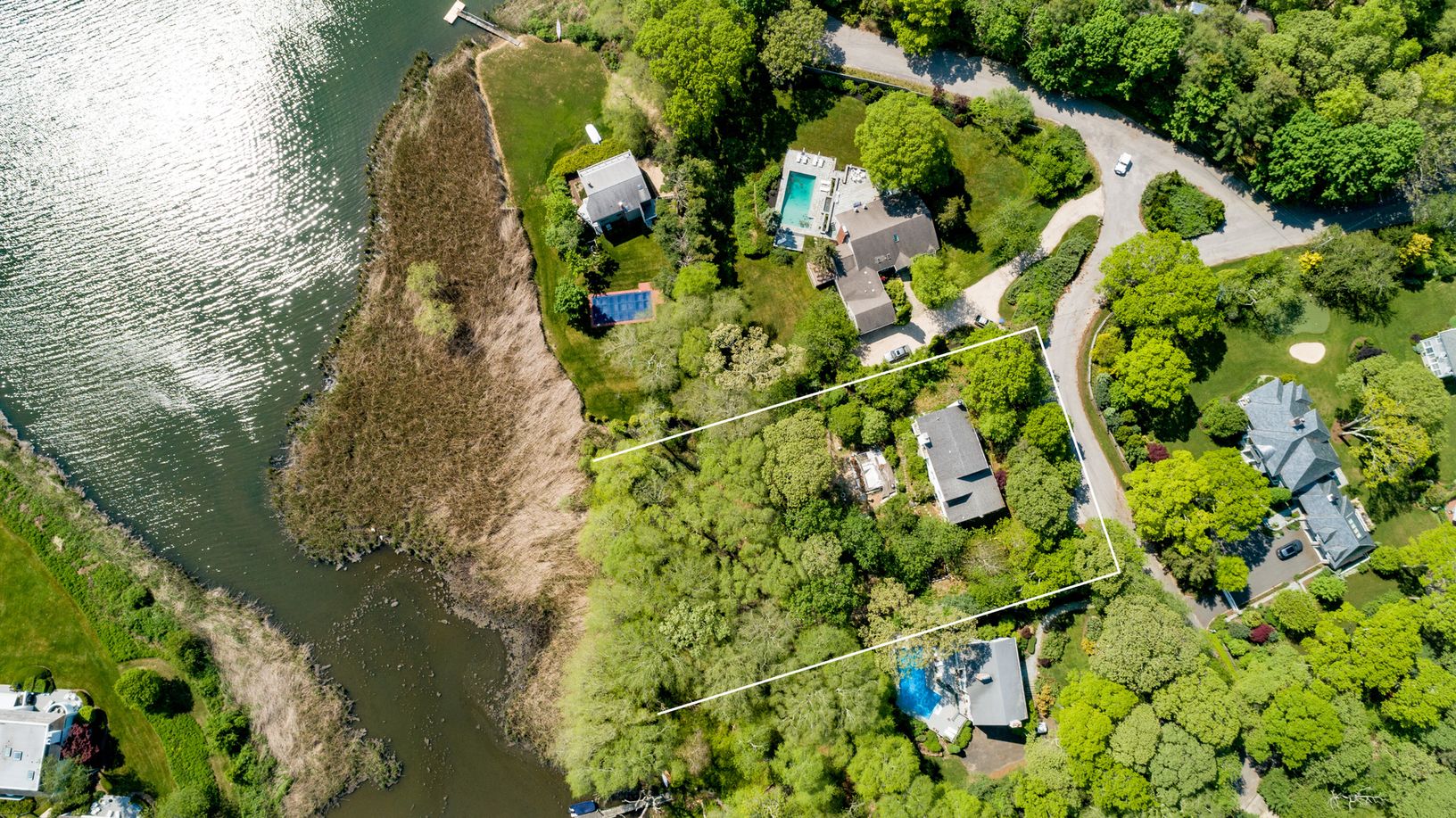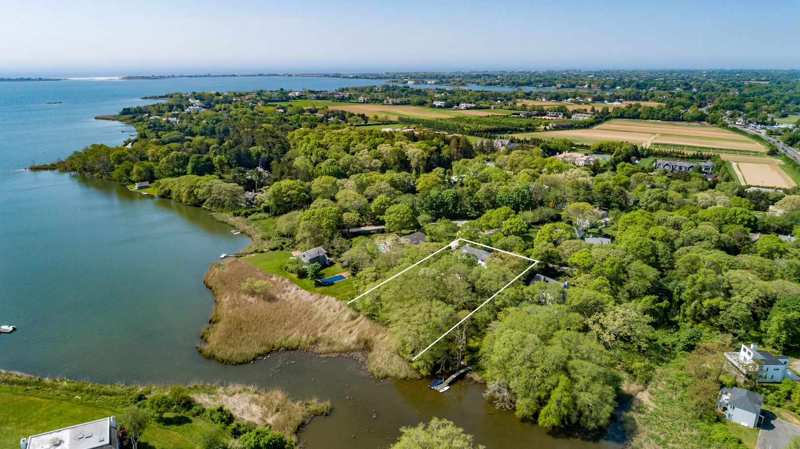 1.27 Acre Water Mill South Bayfront teardown land opportunity with approvals in place for 6,200 SF John Laffey designed traditional residence with landscape plan designed by architect Tim Rumpf with private dock. Luxe features such as rooftop deck with expansive views and bayside pool. Price includes all plans and approvals.