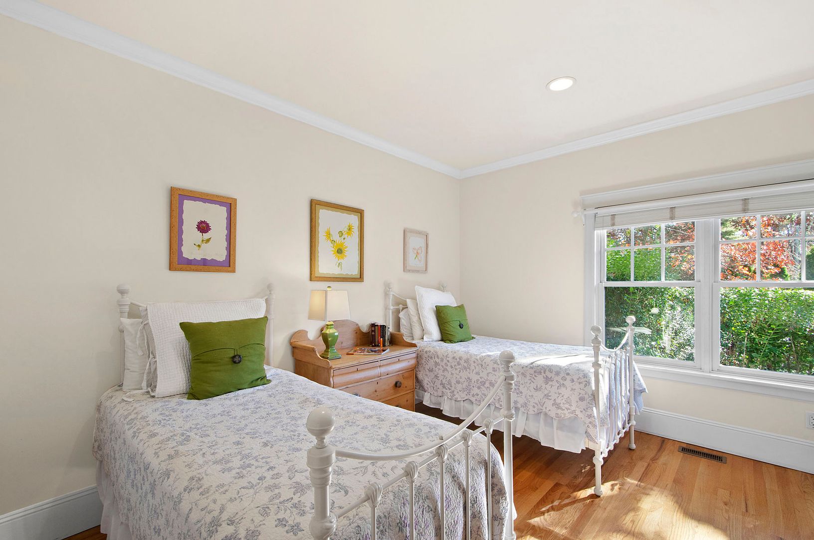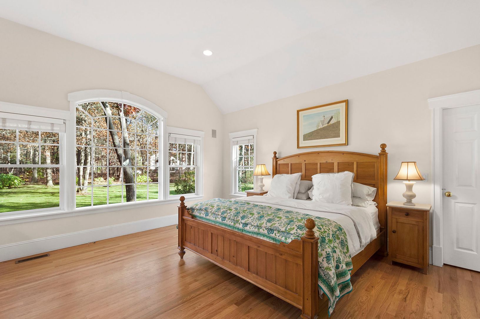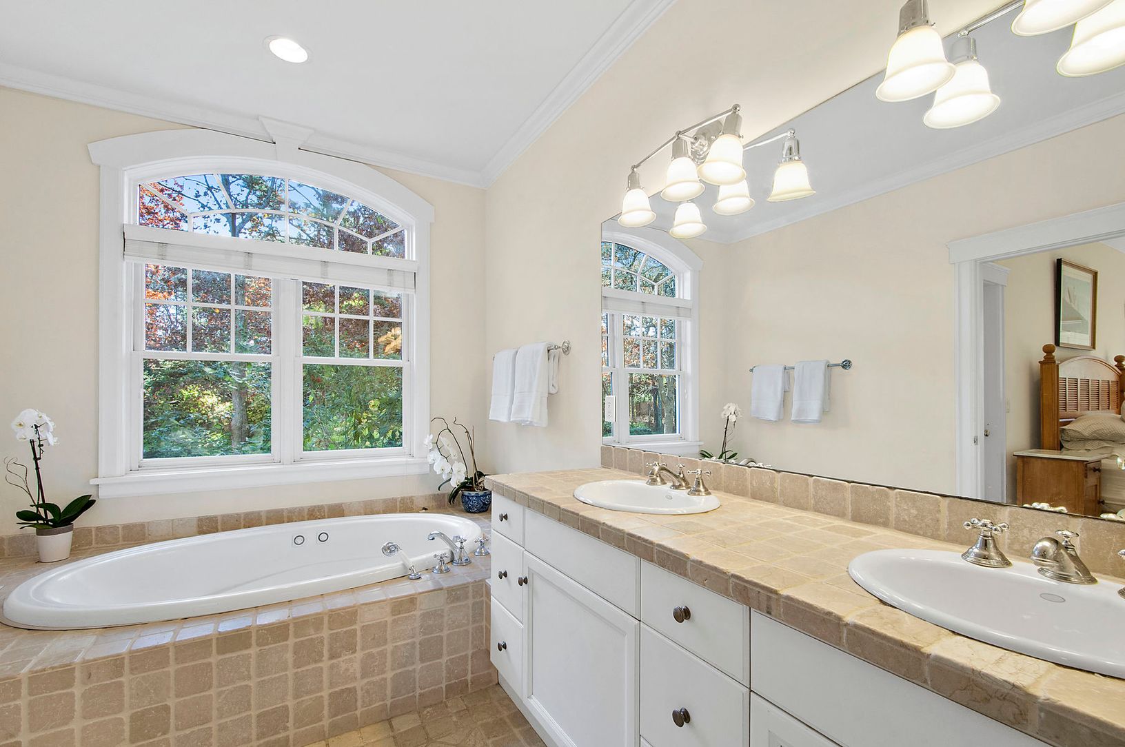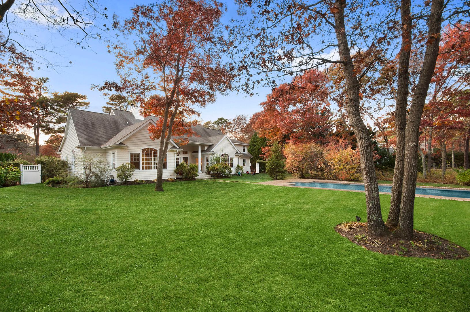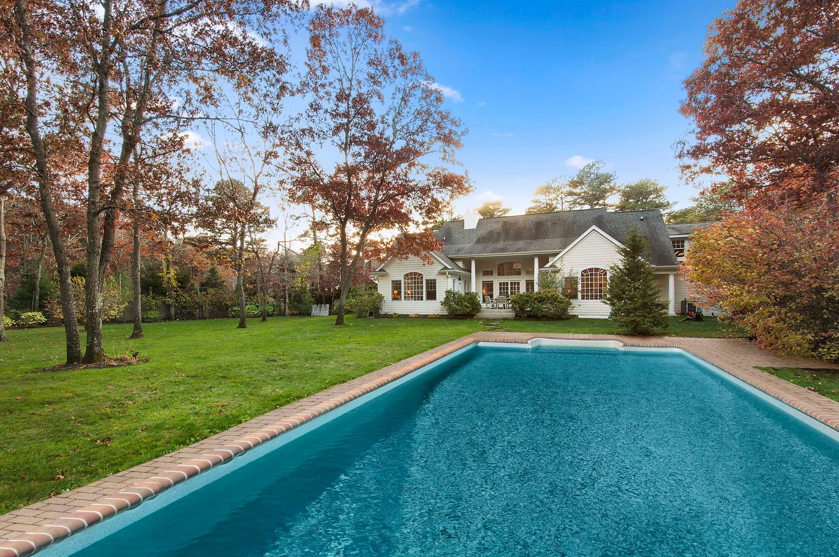 This light-filled home at the end of a quiet cul-de-sac features an open floor plan ideal for entertaining larger groups of informal get-together's with family and friends. Cathedral ceilings provide added spaciousness and light. The main living areas overlook an elegant saltwater heated pool surrounded by a wide lawn and colorful mature plantings. The kitchen, a cook's delight, has all new stainless steel appliances. The master bedroom suite