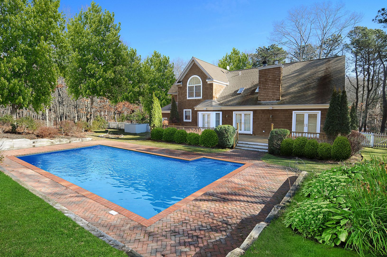 Fantastic Post Modern East Hampton Home, built in 2001 with 6 Beds / 4 Baths on quiet cul de sac street of stylish homes. Located only one mile to village. This 3600 sq ft like new home has a layout that is great for entertaining as well as family living. Professional grade kitchen with granite countertops and stainless steel appliances. Kitchen open into two story great room with vaulted ceilings and fireplace. First floor master suite with J