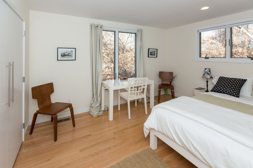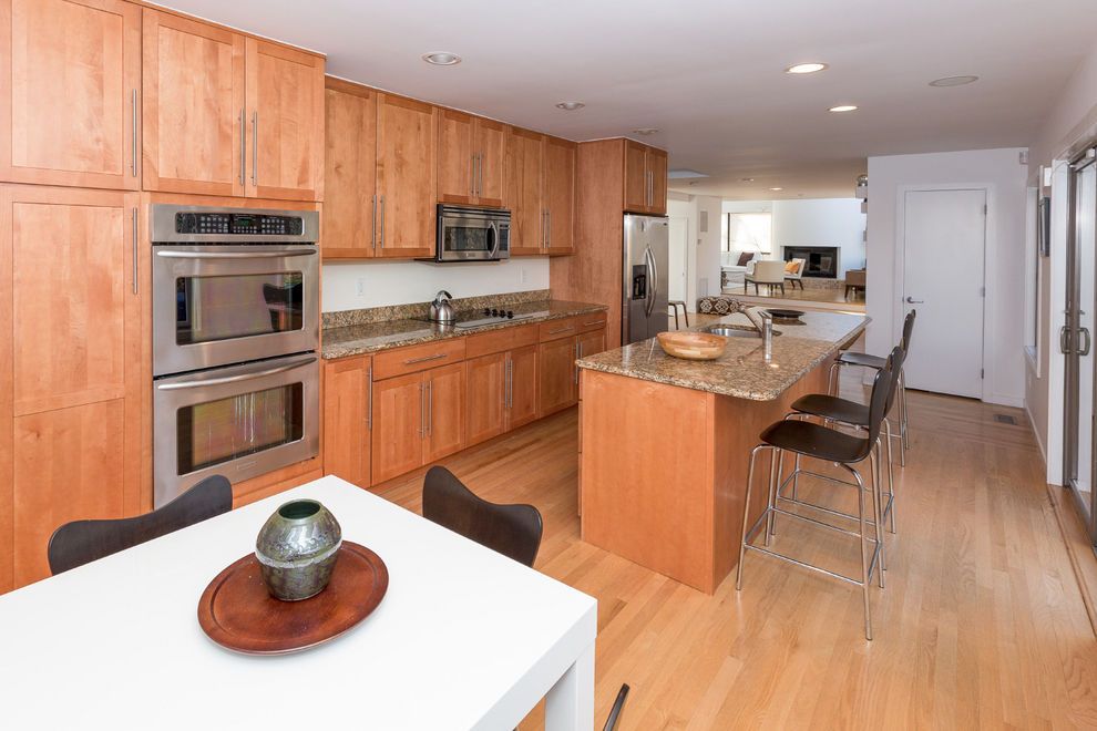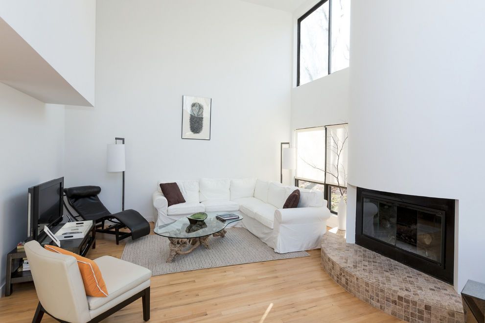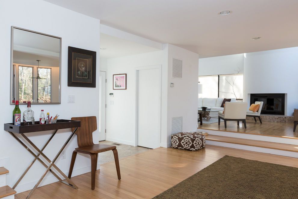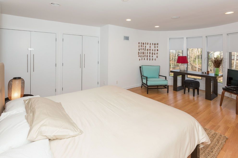 You will find this well designed contemporary only 1.4 miles from the village of East Hampton in Hansom Hills. The main floor has a generous foyer.Living room with double height ceiling and wood burning fireplace. There are sliding glass doors off the living room and gourmet kitchen for easy outdoor living. There is a formal dining room with modern lighting. Also, an guest bedroom with a private bath and a powder room. The second floor h
