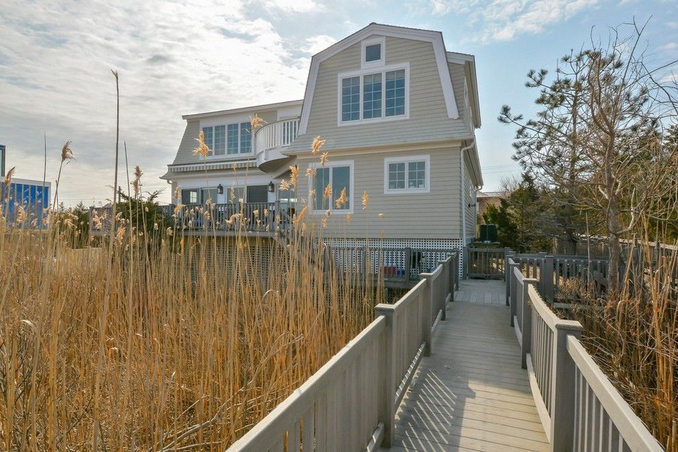 This two-story, 2,300 square foot bayfront Nantucket-style home is located in a prime Dune Road location between the bridges. The spacious main level features a large, open and free-flowing great room living with a fireplace, custom kitchen with granite counters, a laundry room, a guest bedroom and a full bath. The second floor as a large master bedroom suite with bayviews, bathroom and a walk in closet. There are also two additional bedrooms