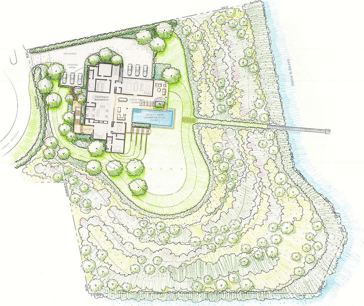 A Jay Bialsky built modern waterfront masterpiece is about to commence construction on coveted Fowler Lane in Southampton. The architectural design by Blaze Makoid and landscaping by LaGuardia Design will unfold into one of the most premier modern homes in the area. 11,000 SF +/- of living space seamlessly intertwine on two prominent levels, not including the abundant outdoor-terracing and entertaining spaces. Walls of glass, warm woods and im