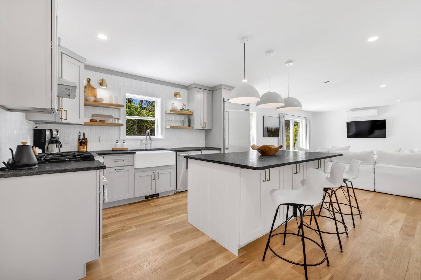 Fully renovated, turnkey home with easy access to Shinnecock Bay and Southampton Village. Sited on 1.10 acres with privacy affording mature planted trees, discover your Hamptons oasis with this traditional 2-story home with 3 bedrooms, 3 baths, and 2,190 +/- sq. ft. of living space. Recently renovated, the home has been outfitted with stylish interior finishes, hardwood flooring, and premium appliances. Enter to a double-height entry foyer lea