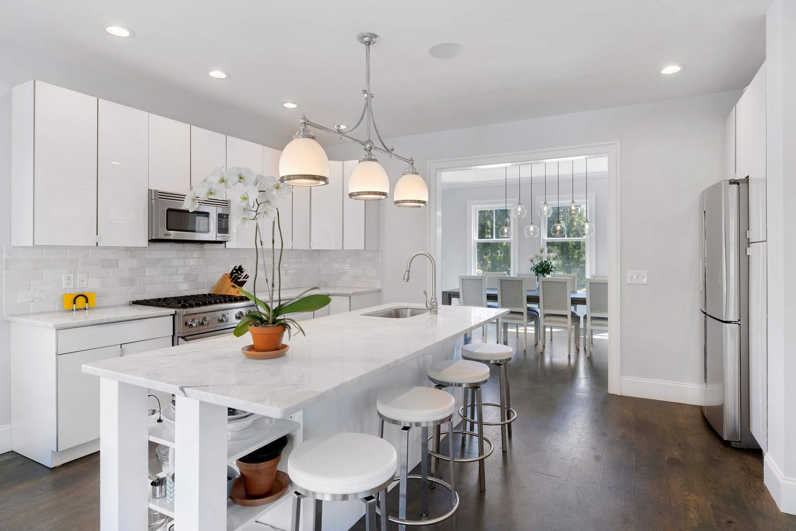 A gracious entry hall welcomes everyone into this 3,800 sq ft, 7 bedroom, 5.5 bath traditional. The living room with fireplace is joined by a great eat-in kitchen, formal dining room and sitting room that leads out to a pergola-protected deck. Upstairs the master suite with walk-in closet and sumptuous master bathroom is joined by 4 additional bedroom suites serviced by 2 full baths + an office with a great view. The finished lower level adds