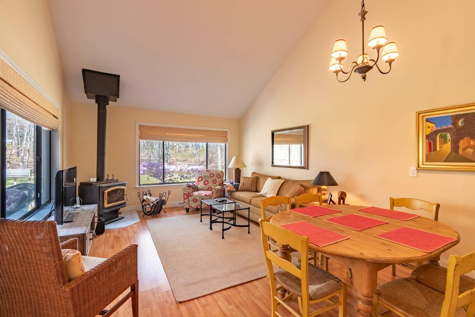 This light filled, pet friendly, three bedroom, two bath condo in desirable Treescape, nestled within 60 private wooded acres one minute into East Hampton's Northwest Woods, one mile to East Hampton Village, five minutes to the Bay and ten minutes to the Ocean. This well-maintained condominium offers the perfect space to enjoy your time in the Hamptons without the hassles of property maintenance. The first floor offers open plan living areas w