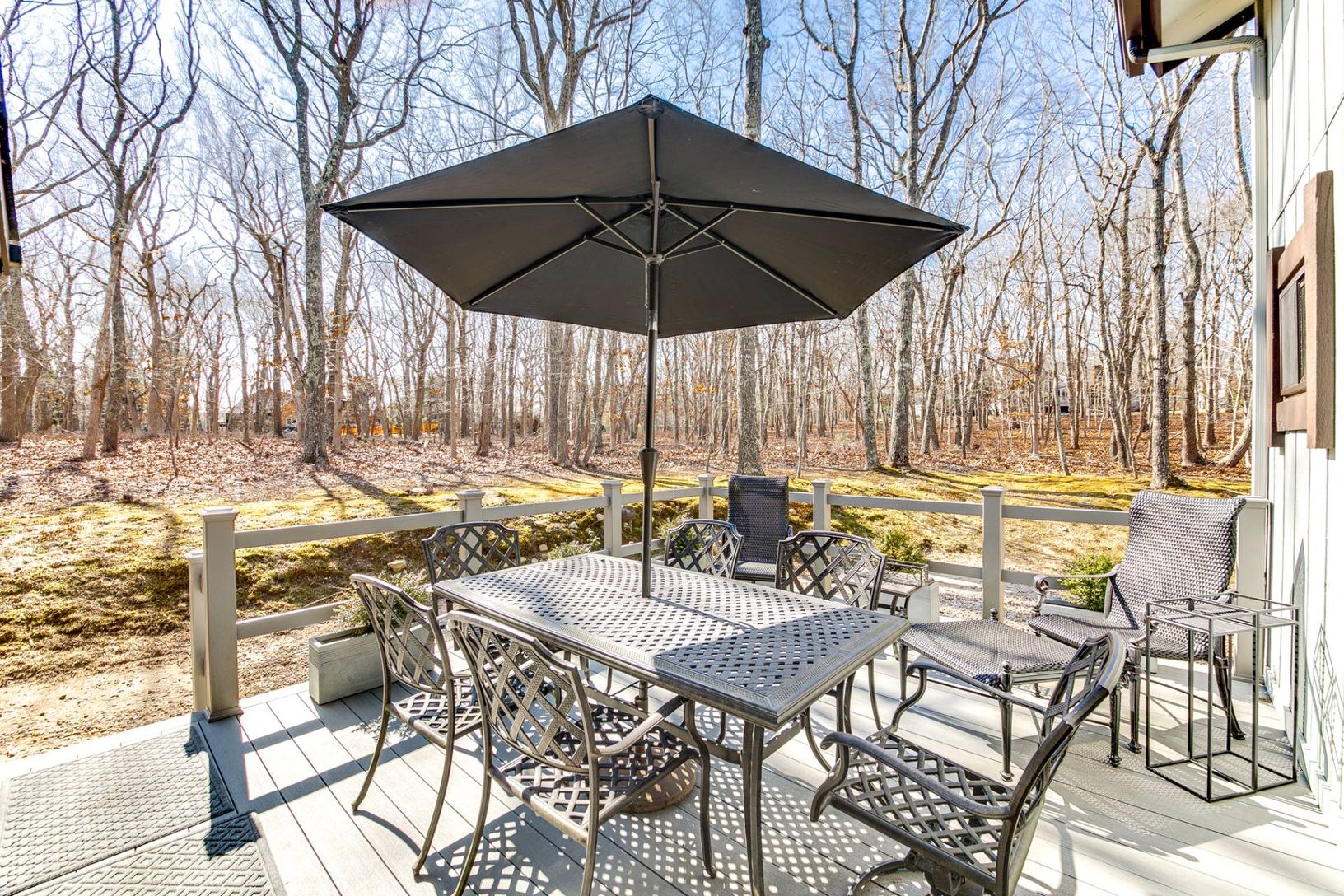 Find easy Hamptons living in the ideal single bed and bath condo with a community pool and tennis. This light-filled 1 bedroom, 1 bath, single-level condo in desirable Treescape is nestled within 60 private wooded acres one minute into East Hampton's Northwest Harbor, one mile to East Hampton Village, five minutes to the Bay, and ten minutes to the Ocean. This well-maintained & fully renovated condominium offers the perfect space to enjoy