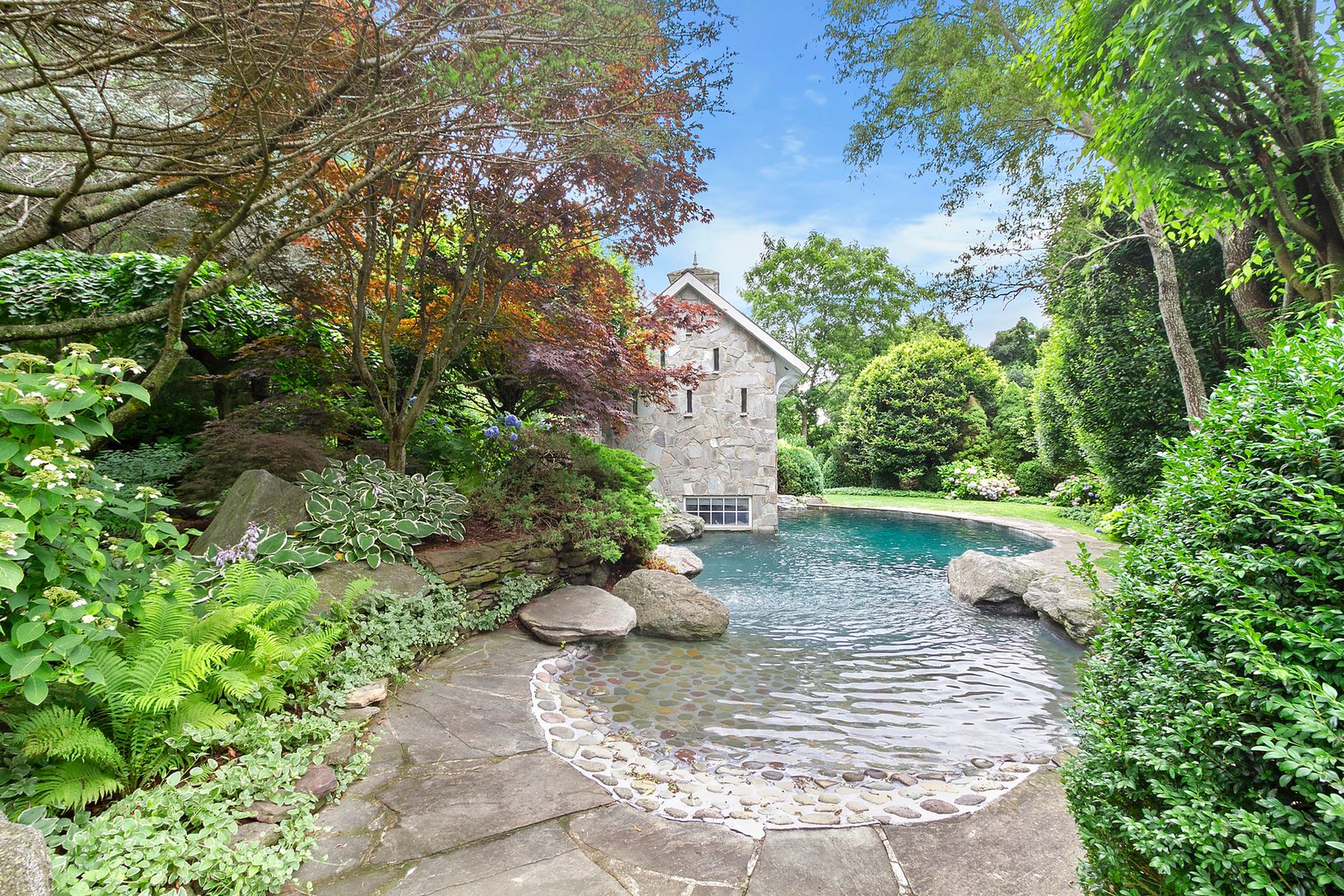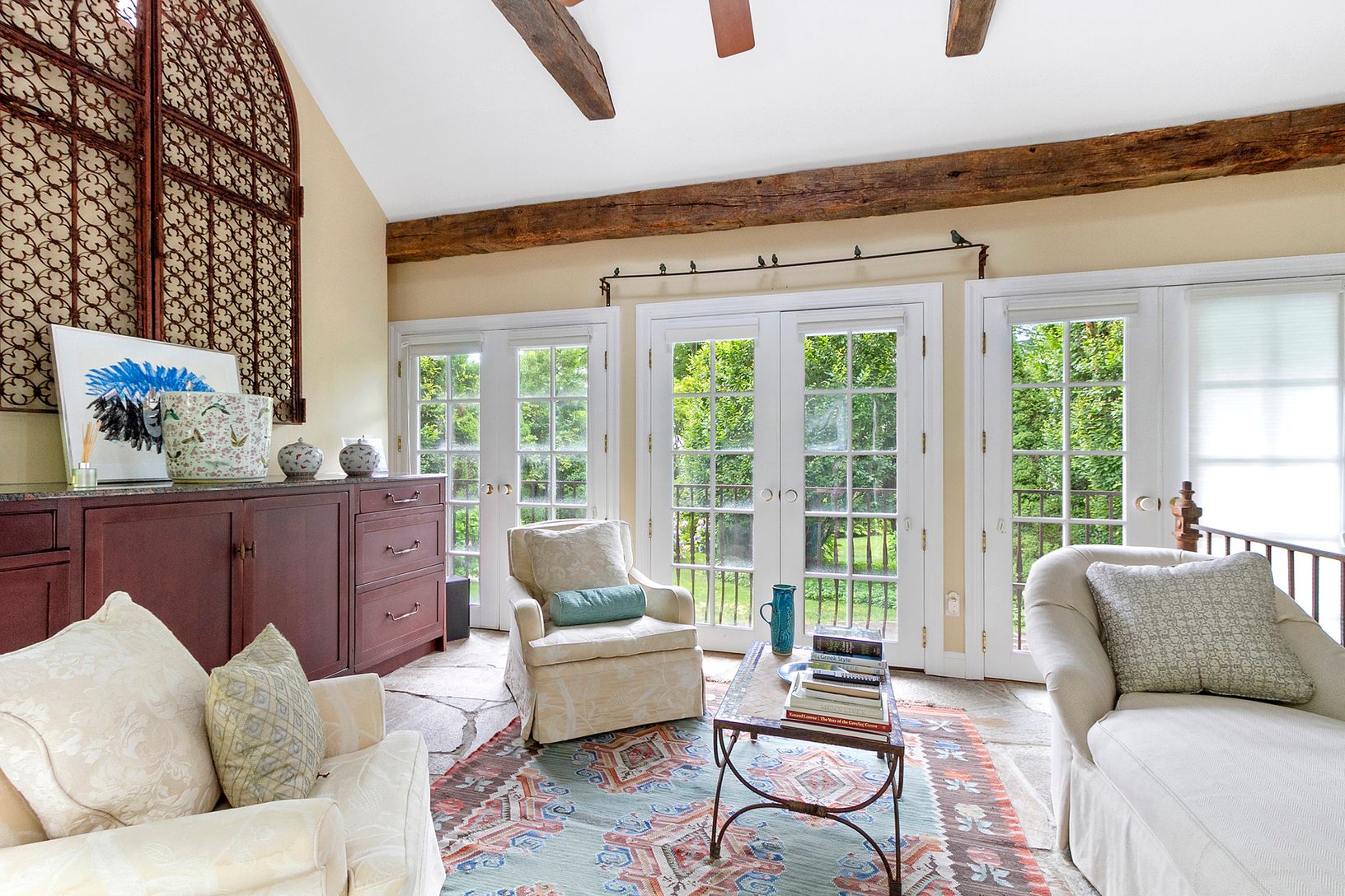 A reimagined farmhouse house set in the countryside of Bridgehampton with captivating gardens and hundreds of specimen trees/plantings can be your “home in the Hamptons” for years to enjoy. Located within Bridgehampton’s horse country, the gated home opens onto a Belgian blocked courtyard that frames the entry way: a sun-filled atrium connecting what were two original farmhouses. Public living areas include a living room with original brick fi