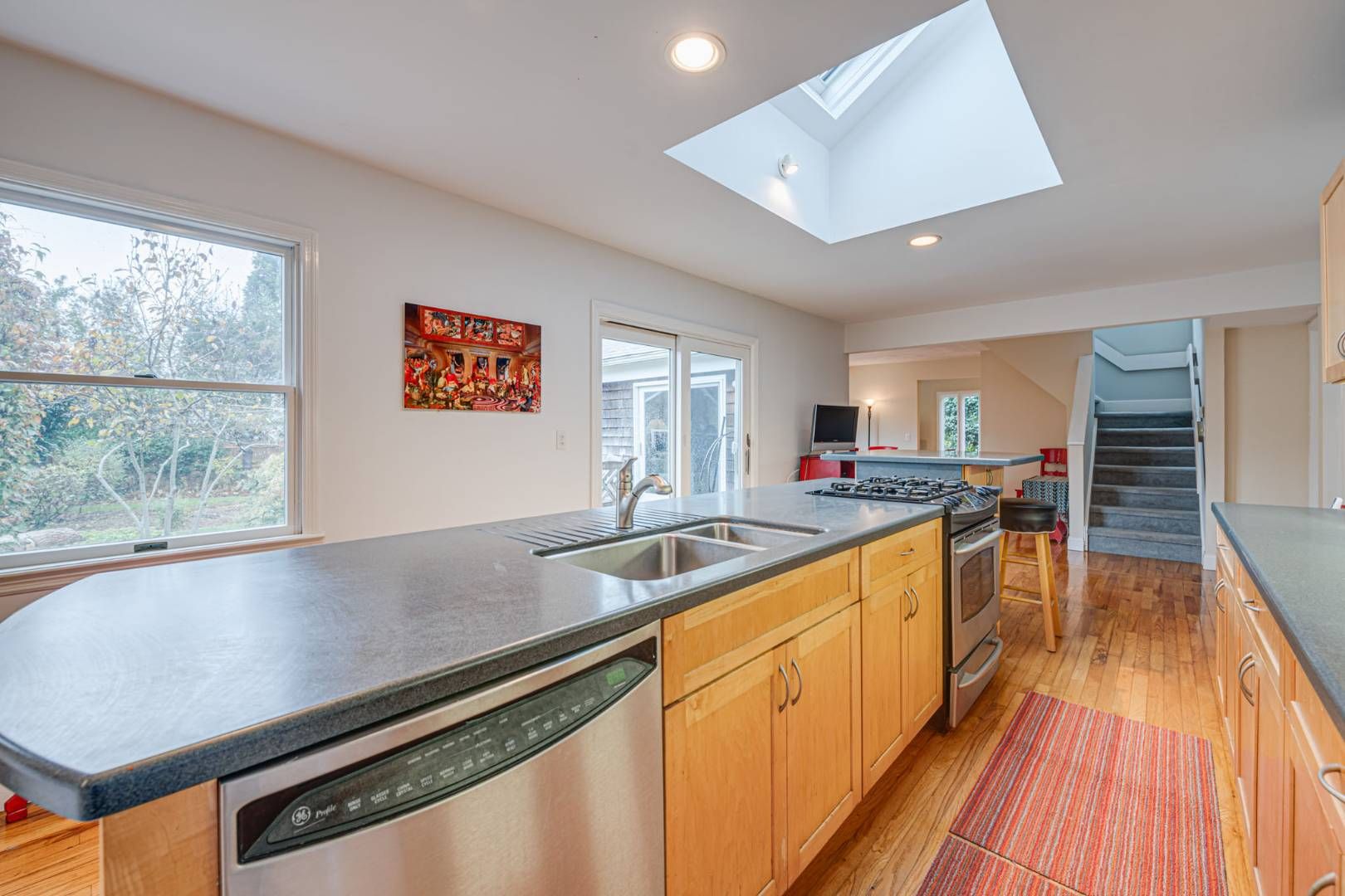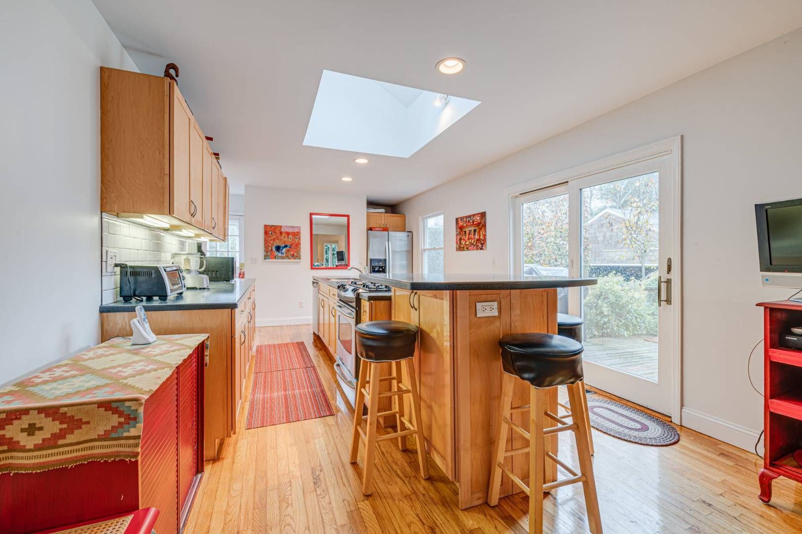 This charming 3 bedroom 3 bath Bridgehampton Village cottage is set on .35+/- acre with southern exposure, a detached 2 car garage and room for a pool. The house has been well-maintained and is surrounded by beautifully tended gardens. The main floor offers a large open living room with a wood burning fireplace flowing into the dining area off of the chef kitchen with stone counter tops, counter seating and pantry closet. There are 2 guest bed