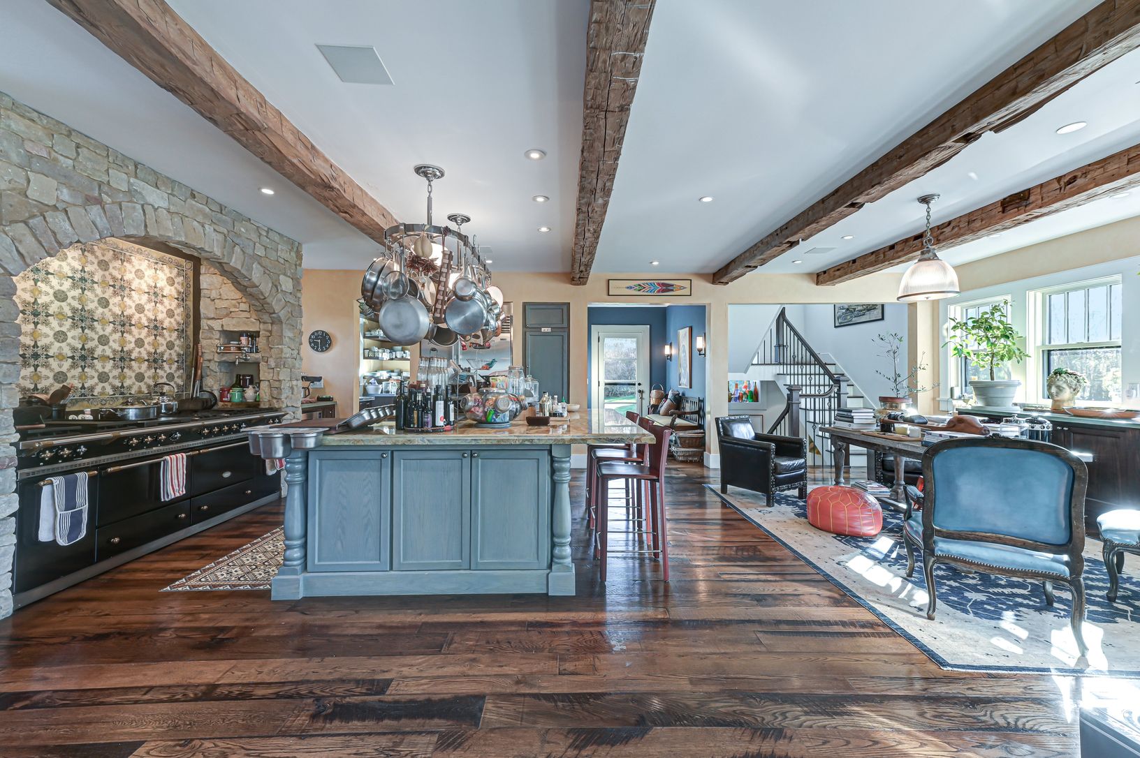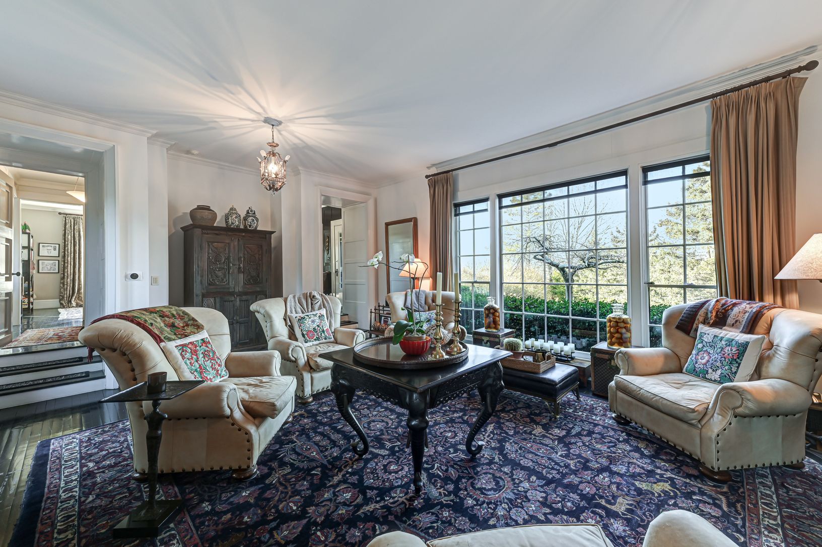 The address, proximity to the ocean, and double-gated entry make this home a showpiece. The exceptional perennial gardens, arbors, and outdoor patios situated around the ample grounds allow for exquisite indoor/outdoor enjoyment. This home has a classic worldly feel with an incredibly well-designed approach; a circular drive and an up-lit bluestone walkway leading to a beautiful entry. Multiple common rooms, an office, a powder room, and a fab