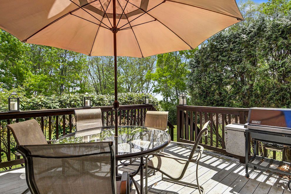 This turnkey, beautiful 4 bedroom, 3 bath condo is an amazing value rarely found in today's market. Located in East Hampton's highly sought after Treescape Community, this stylish, large unit is full of upgrades. The renovated kitchen includes stainless steel appliances and Corian countertops, with a large breakfast bar overlooking the dining and living rooms. The light-filled living room has a cathedral ceiling and fireplace, while the gra